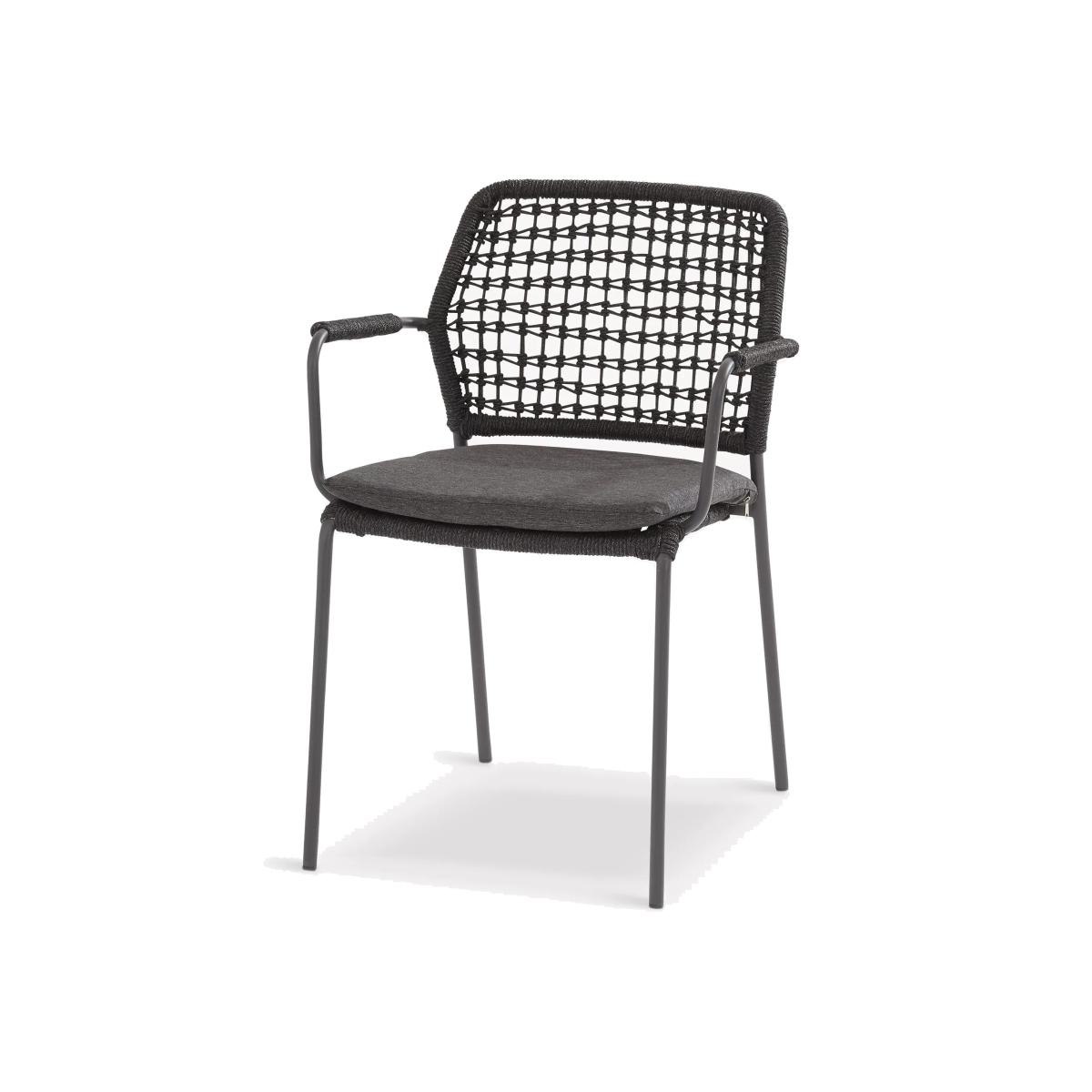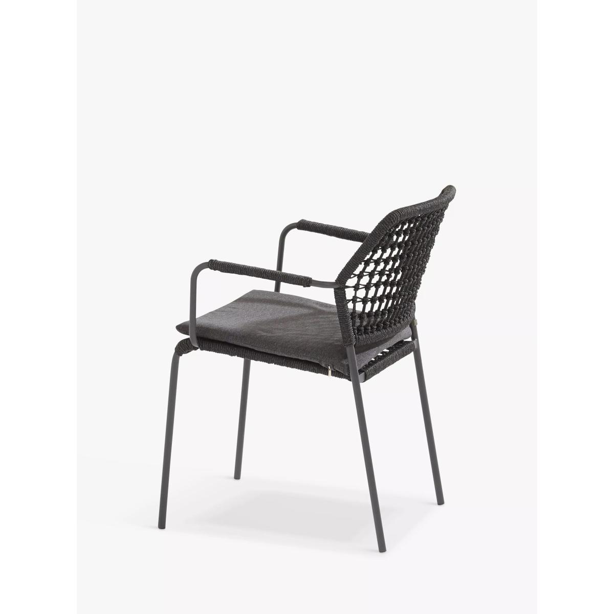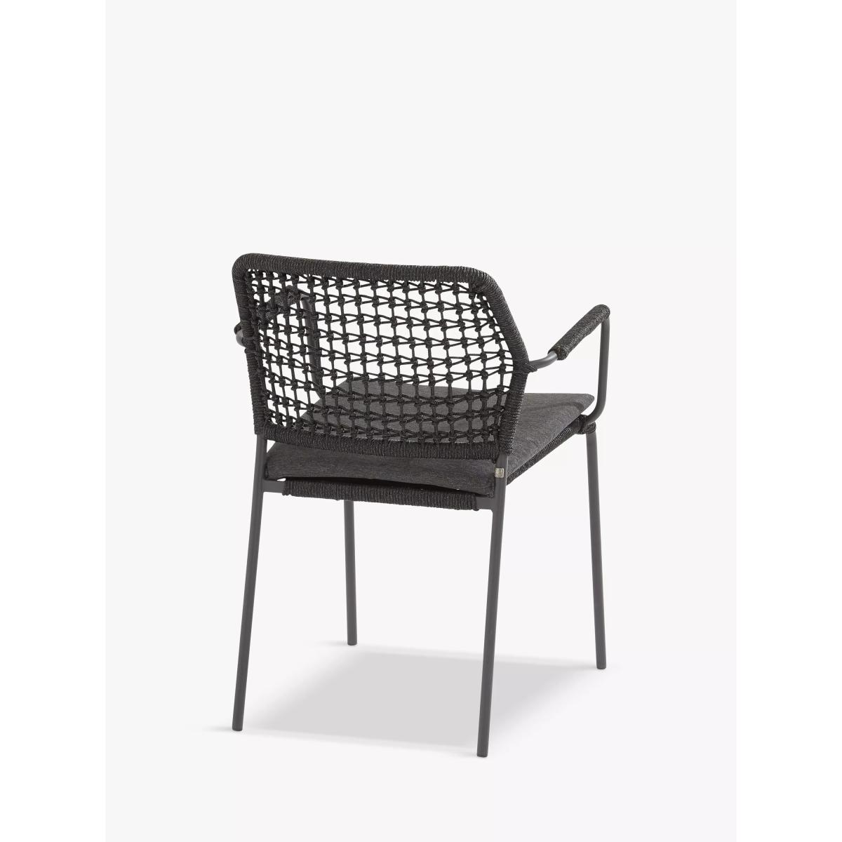 Contemporary set of six of Barista garden dining chairs from 4 Seasons Outdoor, stackable for compact storage. The rope-like design on the armchairs is handwoven with a high-quality, durable weave. All the rope materials have a polypropylene base or weave, ensuring the rope remains taut. The rope contains no hazardous materials and can be fully recycled at the end of its lifetime. The foam-filled seat cushions give you comfortable support and the covers are removable and machine-washable for easy cleaning. The sturdy chair frames are made of powder-coated stainless steel. Key features: Six Barista garden dining chairs Sturdy powder-coated stainless steel frames Rope-like durable weave on the chairs Seat cushions with machine washable covers Chairs stack together for compact storage Weather-resistant Fully assembled for immediate use Garden furniture care: To keep your outdoor furniture in the best condition, store it in a cool, dry, well-ventilated spot indoors over the winter. If it’s staying outside, use an outdoor furniture cover whenever the weather is wet or unseasonal. Make sure furniture is clean and dry before storing it away, and keep cushions in a clean and dry place when not in use.