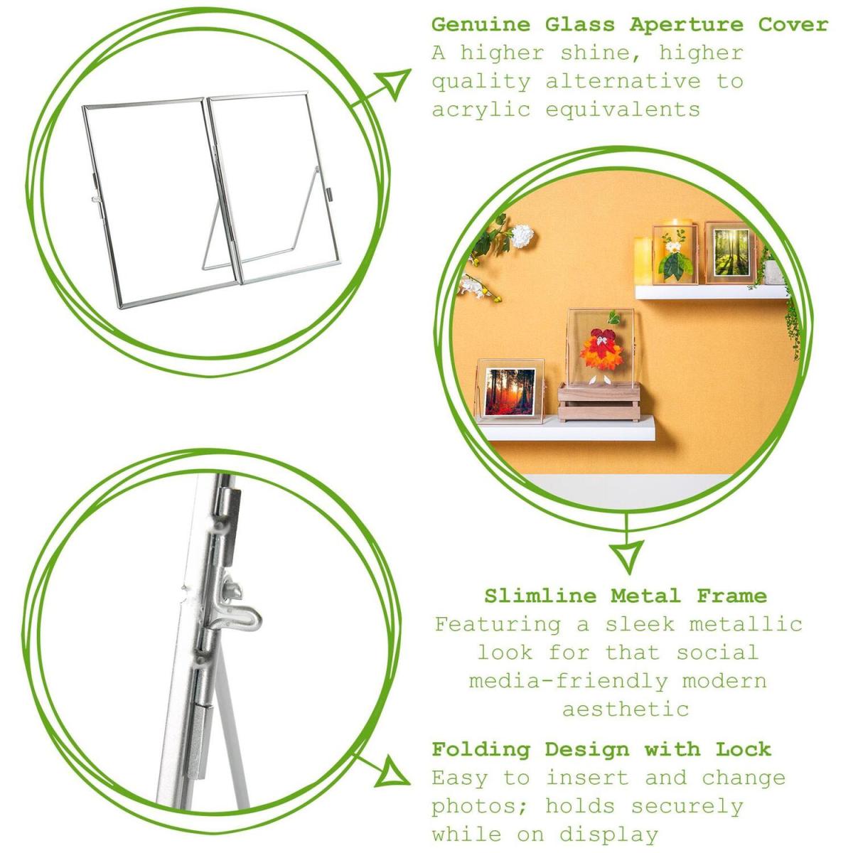 Add a little dash of luxury to your tabletops, shelves and mantlepieces with this Metallic Floating Photo Frame from Nicola Spring. Add a little dash of luxury to your tabletops, shelves and mantlepieces with this Rose Gold Metallic Floating Photo Frame from Nicola Spring. The ultra-clear glass aperture cover provides the perfect showcase for all your most precious memories, pictures and prints. The folding design makes placement as simple as can be, while the locking latch keeps everything securely in place. The striking 'floating' display style brings an extra layer of creative potential - why not try embracing your inner Pinterest and get crafty with some pressed flowers With a range of sizes and colours available, the Nicola Spring Metallic Floating Picture Frame collection has everything you need to deliver everyday happiness into your home.