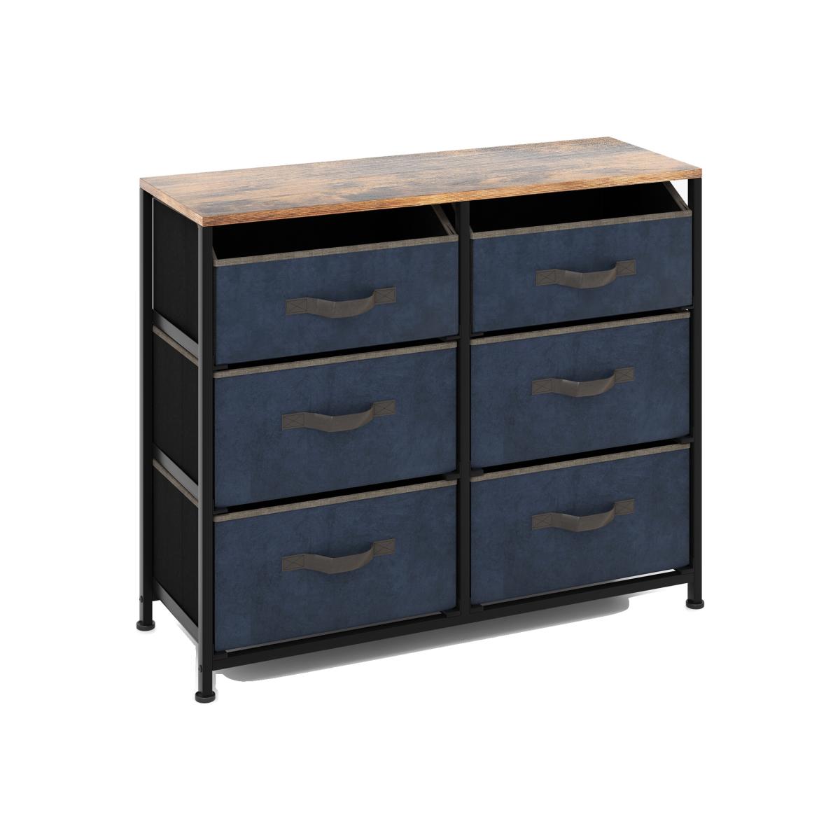 Arrange your clothing neatly with our 6-drawer dresser cabinet! The 6 deep and large drawers that are removable and foldable permit you to stow your clothing here. With the 2-tier open top shelves, you can have access to those often-used items. We all know that safety comes first. Hence, 2 anti-toppling devices are included for the security of the whole family. Furthermore, the sturdy metal frame along with the adjustable anti-slip foot pads not only enhance stability but also protect the floor. The industrial outlook fits various home styles well. And whether in the living room or bedroom, this dresser storage organizer behaves well.