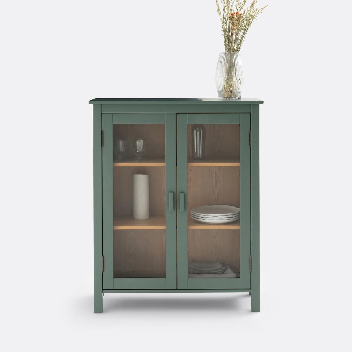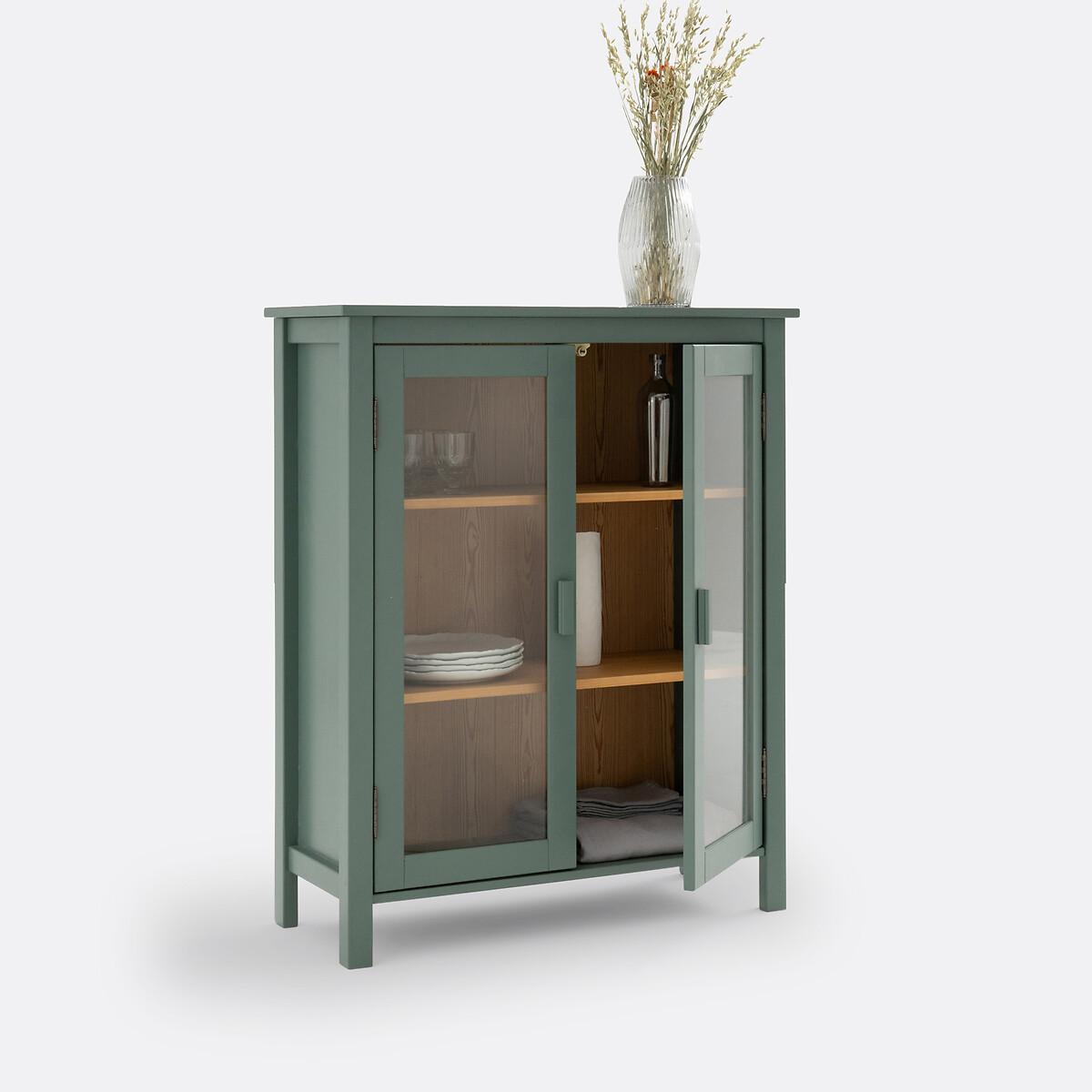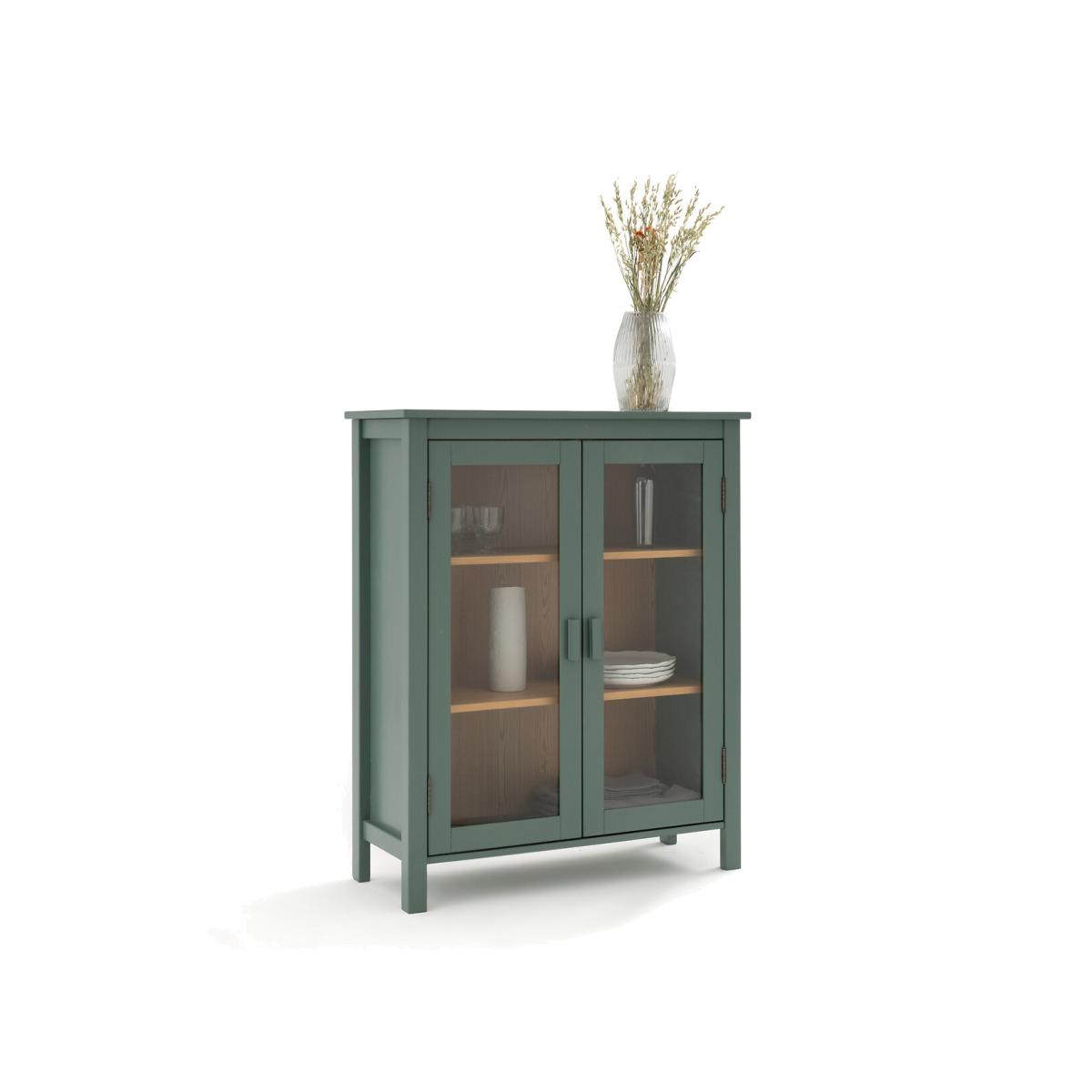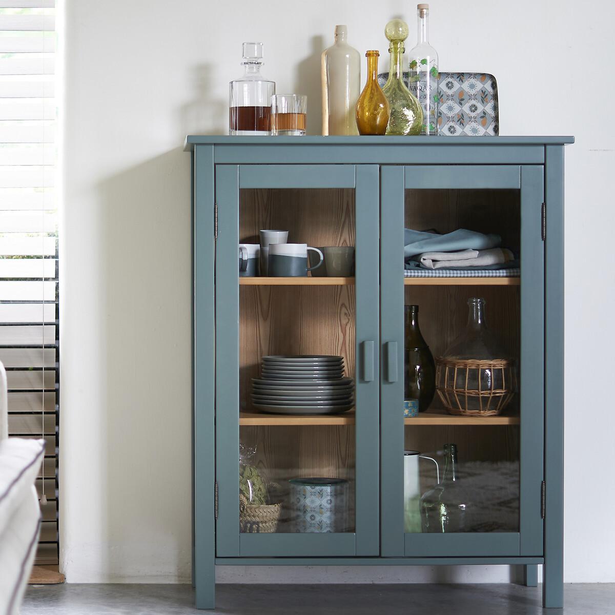 Ideal for storing spices, dishes, trinkets or books... The Alvina cabinet looks as great in the kitchen as it does in the living room. Designed by La Redoute Interiors. Product Details • Solid pine structure and MDF panels, painted, acrylic varnish finish • Tempered glass doors • MDF shelves in lightly brushed oak-stained pine veneer, acrylic varnish • Oak decor MDF back • 2 shelves : 1 fixed and 1 adjustable and removable • 3 compartmentsDimensions. Total: • Length: 90cm • Height: 110cm • Depth: 37cm. Usable size of compartments : • Compartments : L77 x H27/31/30.5 x D29cm Delivery:Assembly required. Available for home delivery. Note! Please check that all access points are large enough to accommodate your delivery (doors, stairs, lifts). • WOOD FROM MORE SUSTAINABLY MANAGED FORESTS AND CONTROLLED SOURCES. FSC® Mix wood contains at least 70% FSC® certified and/or recycled wood, the remainder being FSC® controlled wood. Dimensions and weight of parcel1 parcel • L119 x H49 x D26cm. 33.64kg
