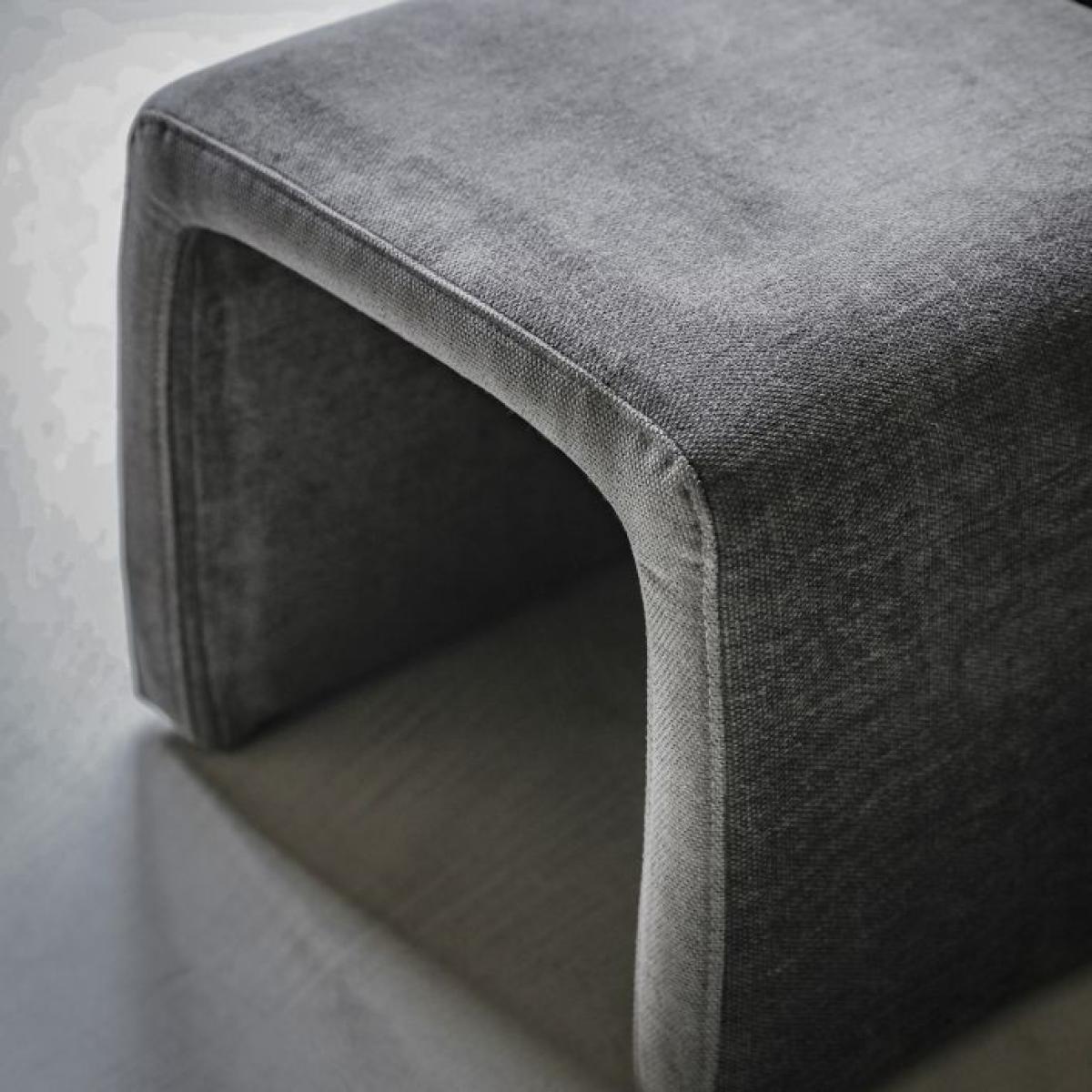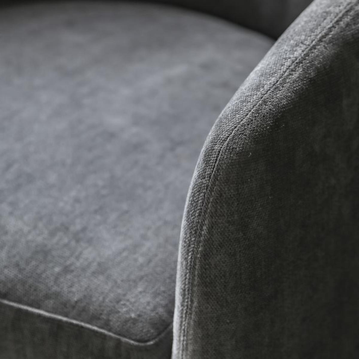 Inspired by retro design this armchair is a stand out addition to any room. Upholstered in grey the smooth curved back narrows down to a curved back base with double stepped feature at the front, the vintage influence is clear, making it the perfect fit for both modern and eclectic inspired interiors. Also available in other colour options.