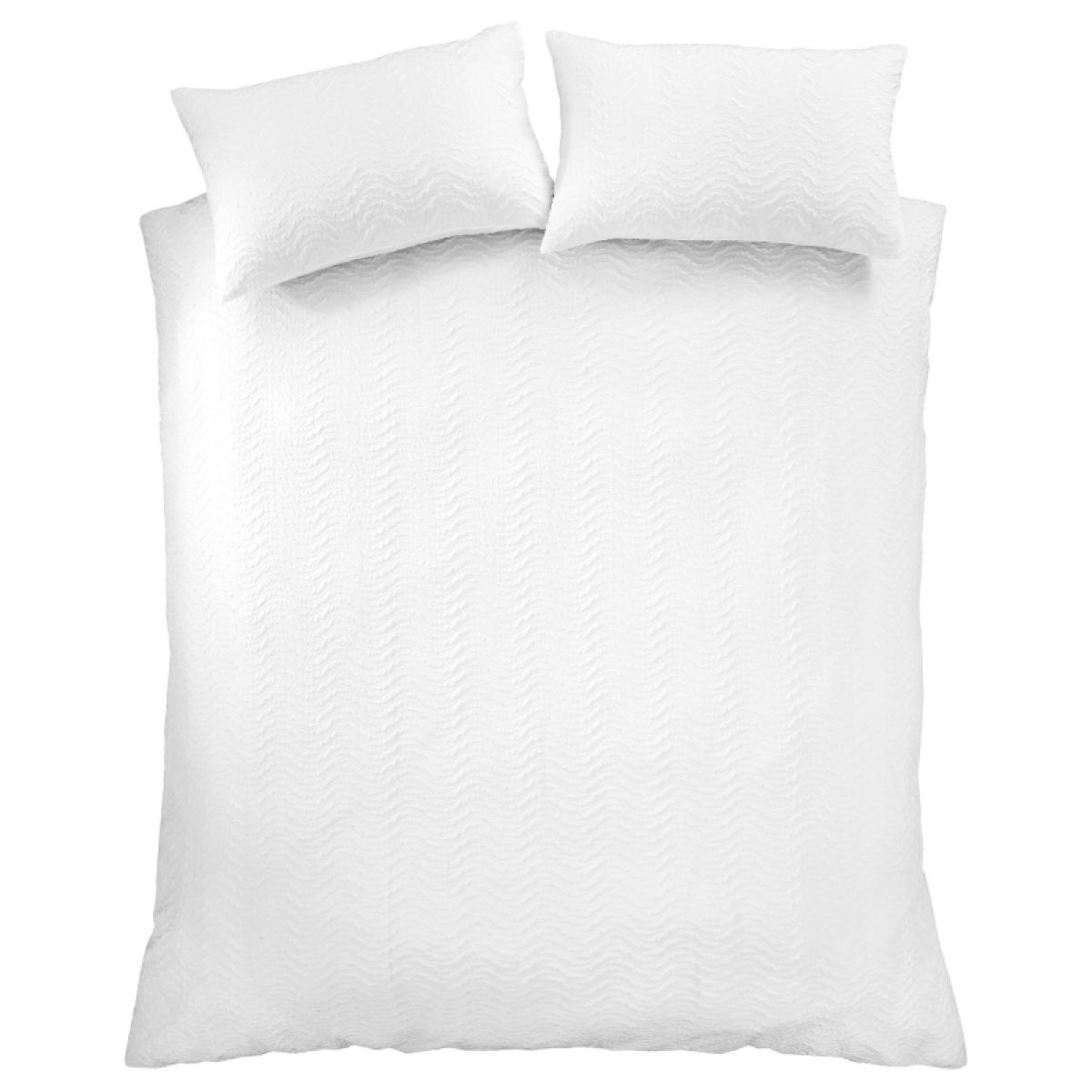 Create a tranquil sanctuary in your bedroom with the Catherine Lansfield Heatset Wave Duvet Set in White. The elegant heat set design, inspired by the soothing motion of ocean waves, brings a calming and stylish element to your space. Crafted from easy-care microfibre, this duvet set is quick-drying and perfect for a hassle-free, year-round bedding solution. Soft and Comfortable: Easy iron and feels gentle on the skin for a relaxed sleep. Tufted Detailing: Creates a textured surface that adds depth and visual interest. Envelope Closure: Providing a secure and snug fit for your pillow. Button Fastening: To keep your duvet securely in place. 100% Polyester Includes Single Duvet Includes Single Pillowcase Double, King and Superking Size Duvet Includes Pair of Pillowcases Care Instructions Wash Before Use. Machine Wash at 40 Degrees. Tumble Dry Safe. Please note All screens vary in colour reproduction and whilst every effort has been made to display the colour as accurately as possible it is for guidance only.