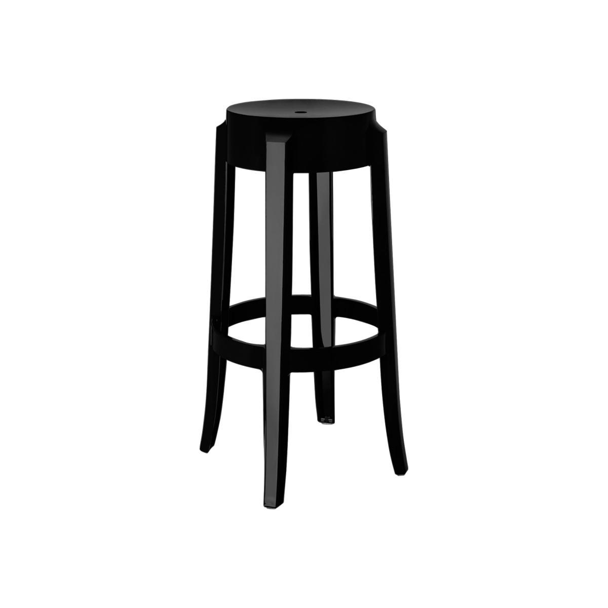 Return to the preludes of the '' Starckien'' design when the designer drew lengthened and round lines. Charles Ghost is an icon of the classical stool, it recalls the form of the seats of the XIXeme century: the line of the feet is round and lightly huddled. This stool completely transparent and colored has a strong aesthetic impact. It is constituted of a transparent monobloc in polycarbonate. It adapts himself to all the environments: prived or collective. It marries himself with all furniture type. It exists in 3 different heights (46 cm, 65 cm, 75 cm) and is declined in several coloris (transparent, black smoked, green, yellow, orange, pink and blue sky) and opaque colors (red, black and white).