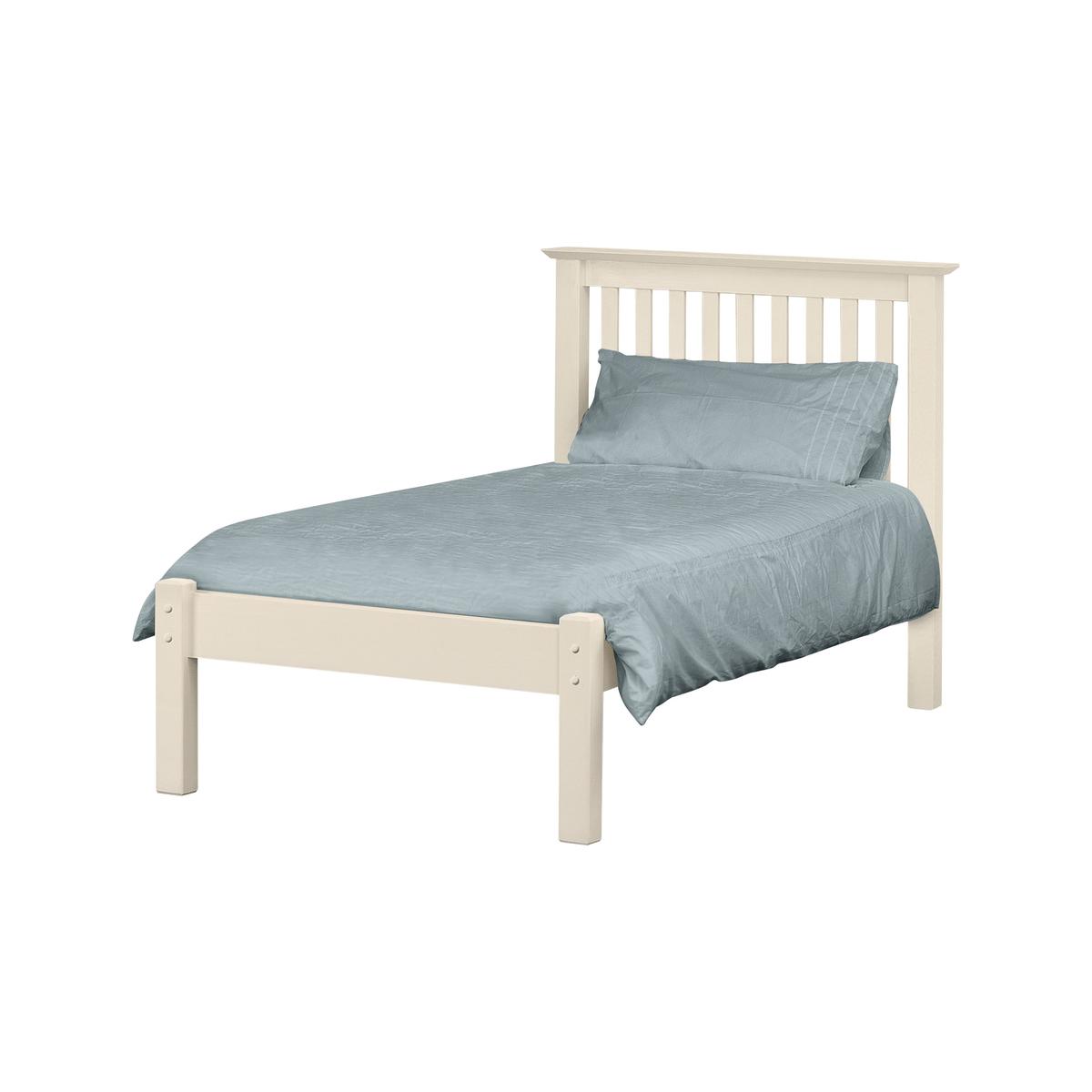 This gorgeous painted bedroom furniture collection suits adults and children alike. It’s versatile, including useful sleepover options and clever integrated storage. Each piece is designed in the simple Shaker style, with overhanging tops, tapered legs and panelled doors. Constructed from solid pine and MDF, with a stone white painted finish, lacquered to ensure that every piece is as hardwearing as it is attractive. This is a self-assembly item. Headboard and footboard each come as one single piece. Beautifully simple, Shaker-style painted furniture. Bedstead has high, slatted headboard and low footboard. Stylish overhanging top and solid, square legs. Carefully made from MDF and solid pine. Painted in stone white with a hardwearing lacquer finish. Bedroom furniture designed for adults and children alike. Mattress available separately.