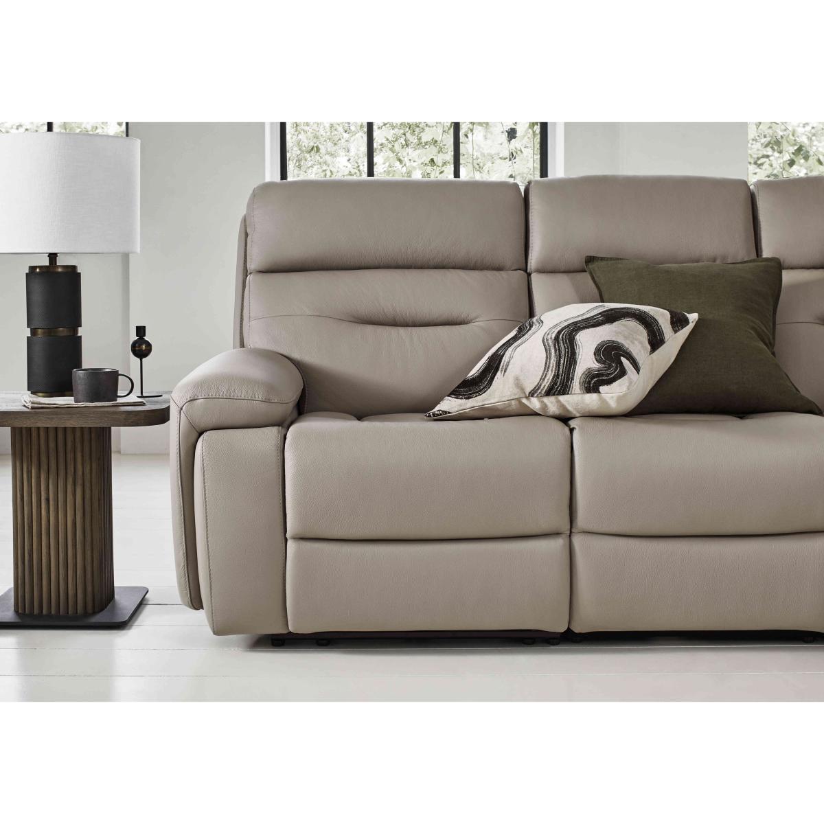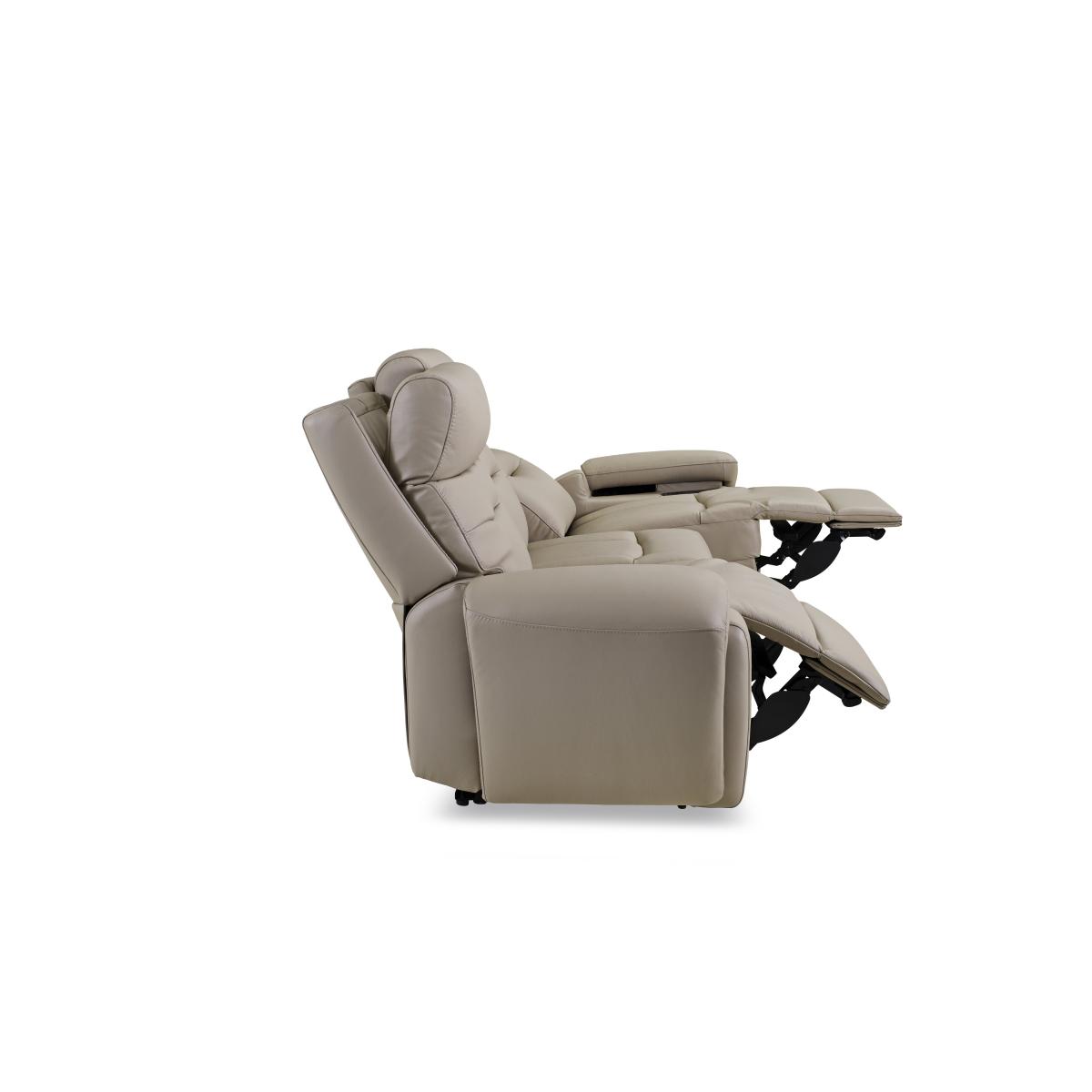Enjoy 4. D cinema-style entertainment and the ultimate in relaxation with our innovative Cinemax range. Connect to your TV or phone via Bluetooth for a truly immersive audio-visual experience. Enjoy powerful 5.1 surround sound provided by speakers cleverly embedded into back and arm cushioning. Find your perfect comfort position with power recliners and power headrests. And soothe aching joints with built-in massage units. The discreet, multi-function touch-button control panels also offer wireless charging, USB charging and cup holders. And with very generous curves, luxurious cushioning and beautifully tailored upholstery in 100% leather and fabric, the Cinemax collection is every bit as stylish as it is relaxing. Handmade and only at Furniture Village. Here’s the ultimate luxury sofa experience. This beautiful three-seater leather power reclining sofa connects to Bluetooth and sound via handy control panels hidden in its arms. Why you'll love it The sofa of the future is here. Connects to your TV for a truly immersive 4. D cinematic experience. Enjoy surround sound with speakers embedded into cushioning. Intelligent design – the media control panels are handily located in the sofa’s arms. Each panel has Bluetooth and sound controls plus wireless charging and a cup holder. With massage function, power recliners and power headrests for the ultimate in relaxation. Generous body-hugging curves and luxurious pocket spring cushioning. Wide range of upholstery choices including our leather-look water-resistant fabric. Top-quality construction – wooden frame and sprung seats and backs. Exclusive to Furniture Village. This 3-seater leather power recliner sofa with media arms is part of our Cinemax sofa range. What you need to know Medium comfort level. Seat suspension: zig-zag spring. Seat cushioning: pocket spring and high-resilience foam. Seat cushions are fixed. Back suspension: zig-zag spring. Back cushioning: fibre. Back cushions are fixed. Arm cushioning: foam. Feet are removable. Please allow time for the recliner mechanism to ease. Minor gaps are necessary to ensure ease of motion and may be exaggerated depending on floor type. Leather has unique marks and characteristics with variance in colour and texture. Leather softens with use. Smoothing the tops of leather cushions prevents signs of visual comfort. Fixed seat and back cushions require smoothing and straightening regularly. To smooth and straighten fixed cushions, punch the back cushion’s top two corners and the seat cushion’s outer two corners, and pinch outwards. Please read our upholstery care guide for more advice.