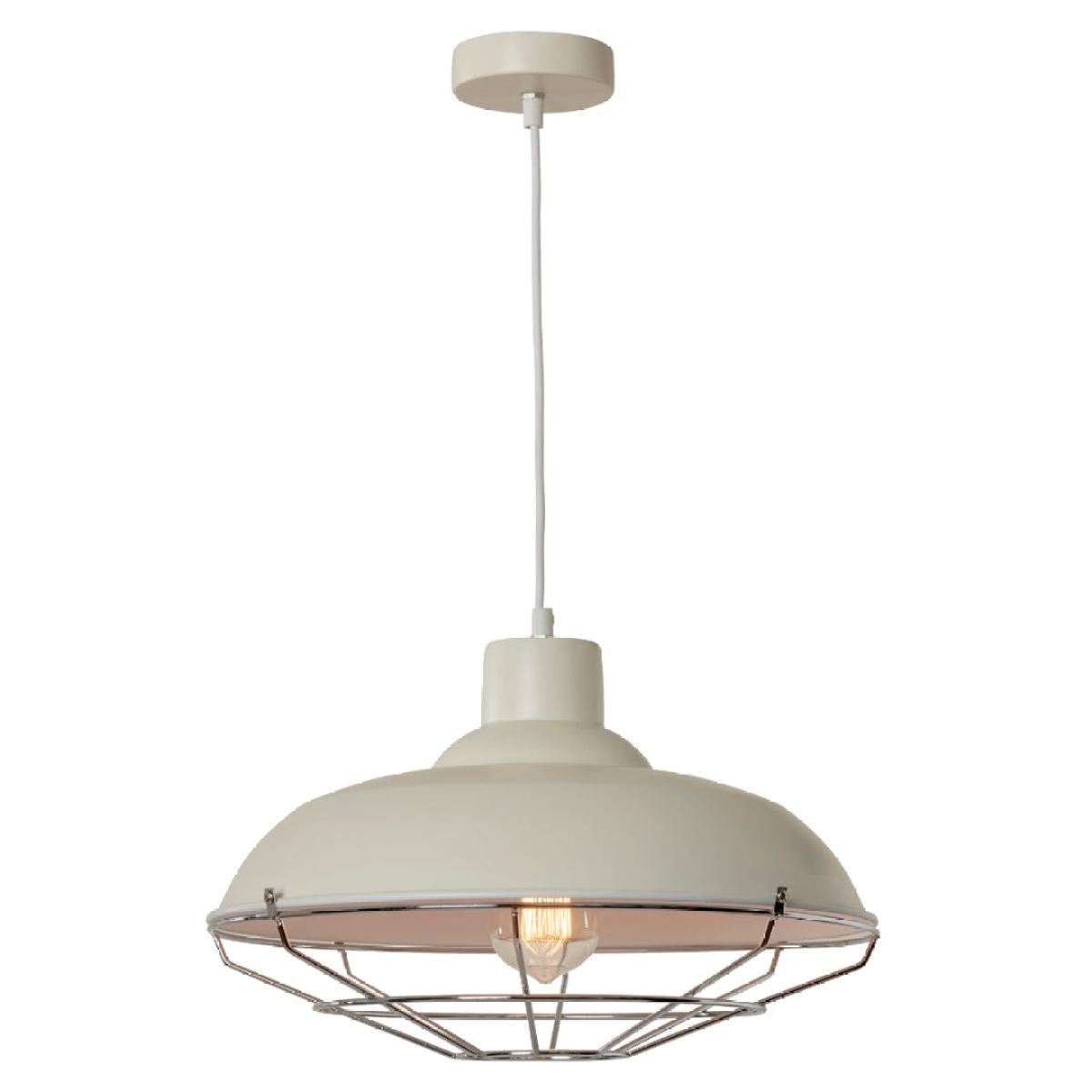 Cobden 1-light pendant ceiling light, featuring a glossy cream finish and a chrome half cage. The Cobden pendant ceiling light is a Nordic-inspired industrial design that brings a perfect balance of sleek modernity and vintage charm to any space. Featuring a glossy cream finish, this pendant exudes understated elegance while maintaining an urban edge. A standout feature is its chrome half cage, which not only adds a contrasting metallic warmth but also allows light to escape in a way that creates a subtle, atmospheric glow. The wide, curved shade directs light downwards, making it ideal for kitchen islands, dining areas or loft-style interiors where focused illumination is needed. Suspended from a coordinating ceiling rose and cable, the Cobden pendant is a versatile choice for those seeking a stylish, industrial-inspired statement piece with a refined and contemporary feel. Cobden 1-light pendant ceiling light, featuring a glossy cream finish and a chrome half cage. The Cobden pendant ceiling light is a Nordic-inspired industrial design that brings a perfect balance of sleek modernity and vintage charm to any space. Featuring a glossy cream finish, this pendant exudes understated elegance while maintaining an urban edge. A standout feature is its chrome half cage, which not only adds a contrasting metallic warmth but also allows light to escape in a way that creates a subtle, atmospheric glow. The wide, curved shade directs light downwards, making it ideal for kitchen islands, dining areas or loft-style interiors where focused illumination is needed. Suspended from a coordinating ceiling rose and cable, the Cobden pendant is a versatile choice for those seeking a stylish, industrial-inspired statement piece with a refined and contemporary feel.