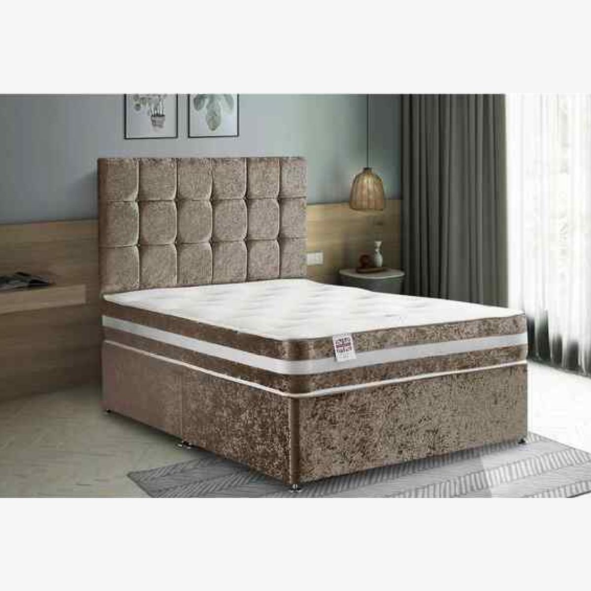 A contemporary style for any bedroom setting. This affordable yet quality divan bed comes with a 26 inch headboard, base and a memory spring mattress. This bed is available in 6 sizes and various fabrics and colours. There are storage options of having 2 drawers. The mattress is a 13.5 Open Coil Bonnell spring with a layer of responsive memory foam, hand tufted as it secures the classic mattress fillings and enhances the performance and life span. A medium to firm mattress with a depth of 10 inches this amazingly priced bed set represents great value for money.