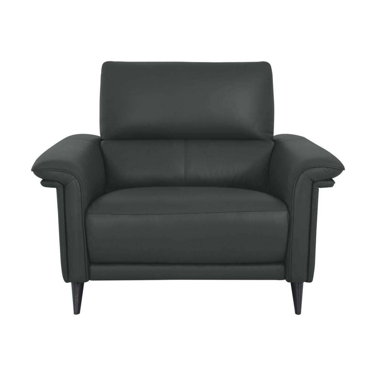 Here’s a sofa range that’s fabulous inside and out. The Domicil Huxley collection of sofas and chairs have superb sprung seats for exceptional comfort, support and something we call rebound, which means they’ll spring beautifully back into shape the minute you get up for a smooth, well-finished look. And with wall-away power recliners and telescopic headrests as standard, you can really fine-tune the way you relax. And the look? With a distinctive arm shape and tapered legs, this range has an updated retro feel that’s understated enough to blend seamlessly with all interior styles. In 100% premium leather and beautiful fabric. Handcrafted exclusively for Furniture Village by Domicil using environmentally-friendly materials and processes. There’s nothing quite like the feel of a real, 100% leather power recliner chair and this one really is the pick of the bunch thanks to its sprung seat and telescopic headrest. Why you'll love it Make this leather power recliner chair with telescopic headrest yours. Updated retro style with distinctive angled arms and tapered legs. A winning combo of power recliner comfort and superb lumbar support. Wall-away recliner takes up less space in a more compact living room. Comfy sprung seat quickly bounces back into shape and stays looking great. Unbelievably soft, 100% premium leather upholstery. In two leather grades and a huge range of colours. Also available with a battery-powered recliner and without any recliner. Handcrafted by Domicil and exclusive to Furniture Village. This leather power recliner chair with telescopic headrest is part of the Domicil Huxley collection. What you need to know Medium comfort level. Seat suspension: no-sag spring, inner coil. Seat cushioning: foam, inner coil. Back support: rubber webbing. Back cushioning: foam, fibre. Feet are removable. A telescopic headrest is not available on the non-recliner version of this armchair. Please allow time for new recliners to ease. Minor gaps are necessary to ensure ease of recliner motion and may be exaggerated depending on floor type. Leather has unique marks and characteristics with variation in colour and texture. Leather softens with use. Smoothing the tops of leather cushions prevents signs of visual comfort. Please read our upholstery care guide for more advice.