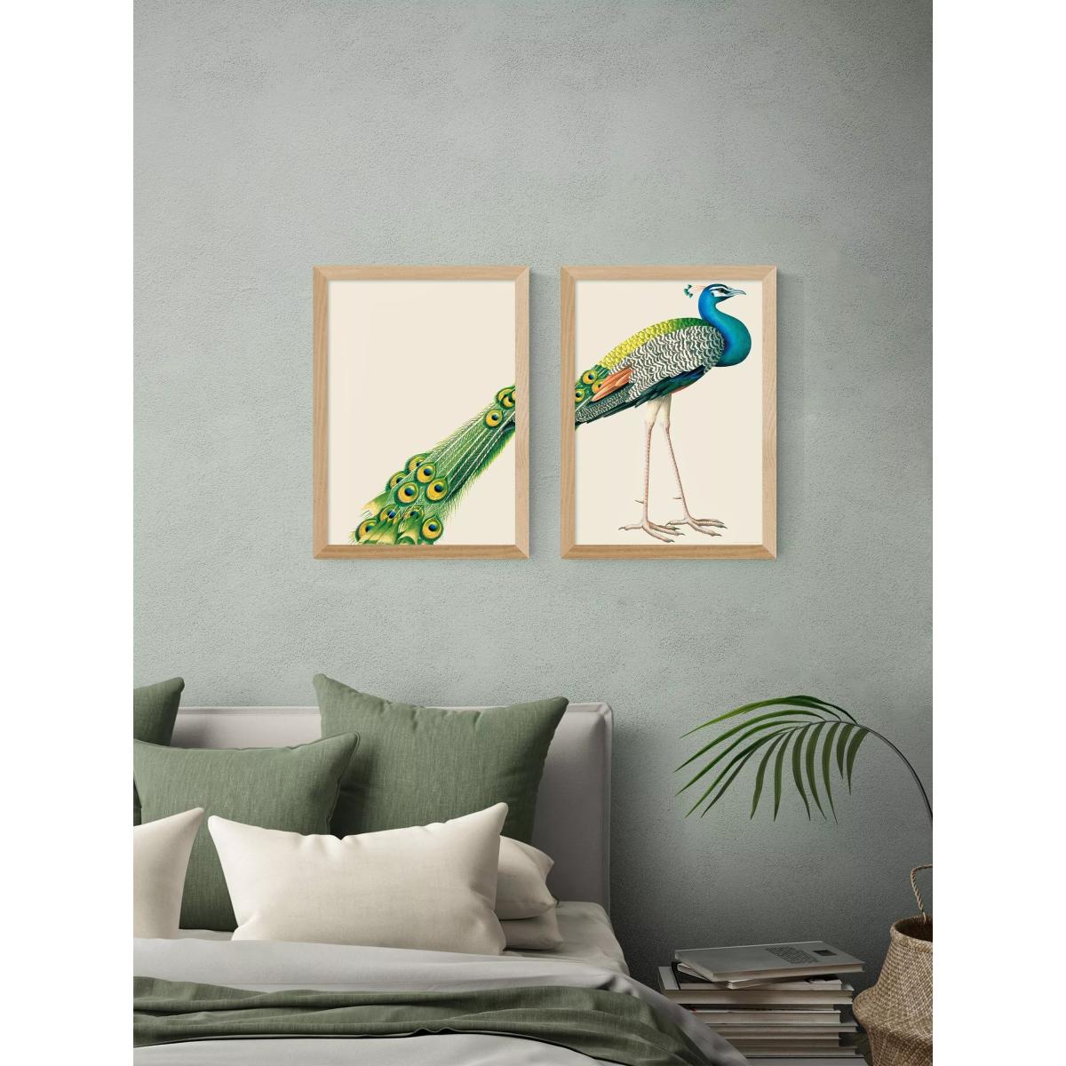 EAST END PRINTS have collaborated with the Natural History Museum to create a beautiful collection of illustrative collages and prints from the museum's archives. The bold colours of this vintage peacock print, dramatically split over two frames, make a true statement on any wall space. The giclée art printing process and 210gsm acid-free archival paper create an exhibition-quality art print with long-lasting colours that more closely resemble the artist's materials and tones. A digital form of the original work is stored and then printed using a commercial printer and pigment-based inks. The print is presented with an acrylic glaze that's optically the same as glass yet lighter in weight making it easier and safer to hang. Ready to hang on your wall, it's framed in obeche wood in a choice of finishes. Have you thought about wall hooks and fittings?