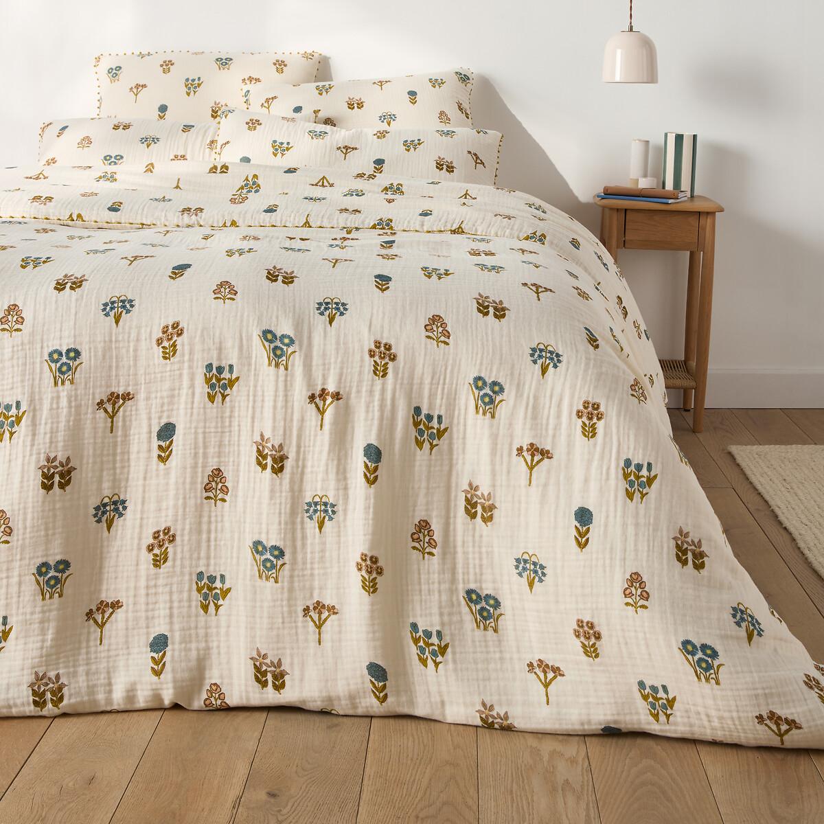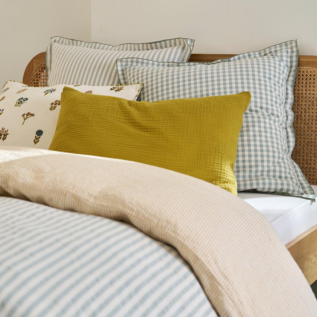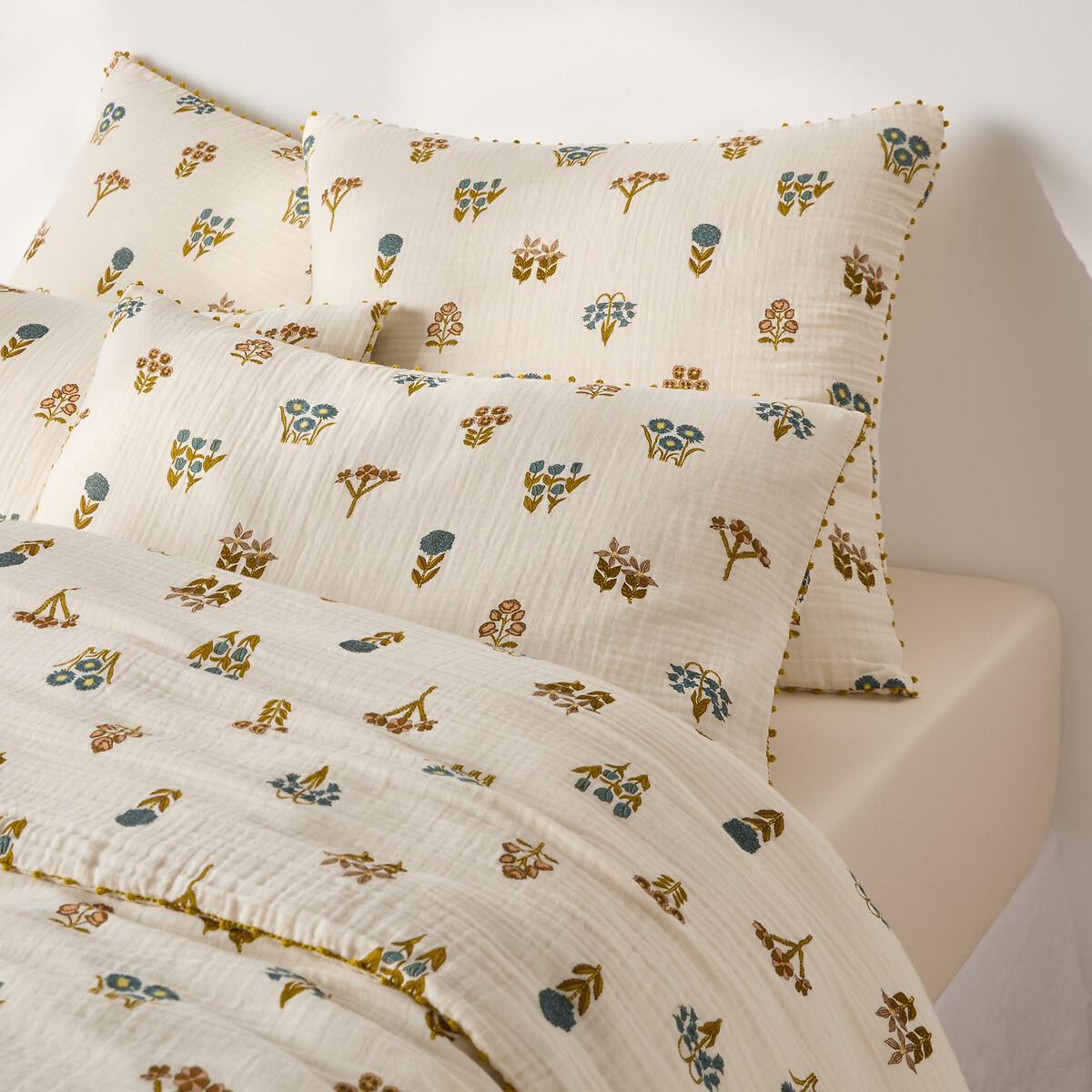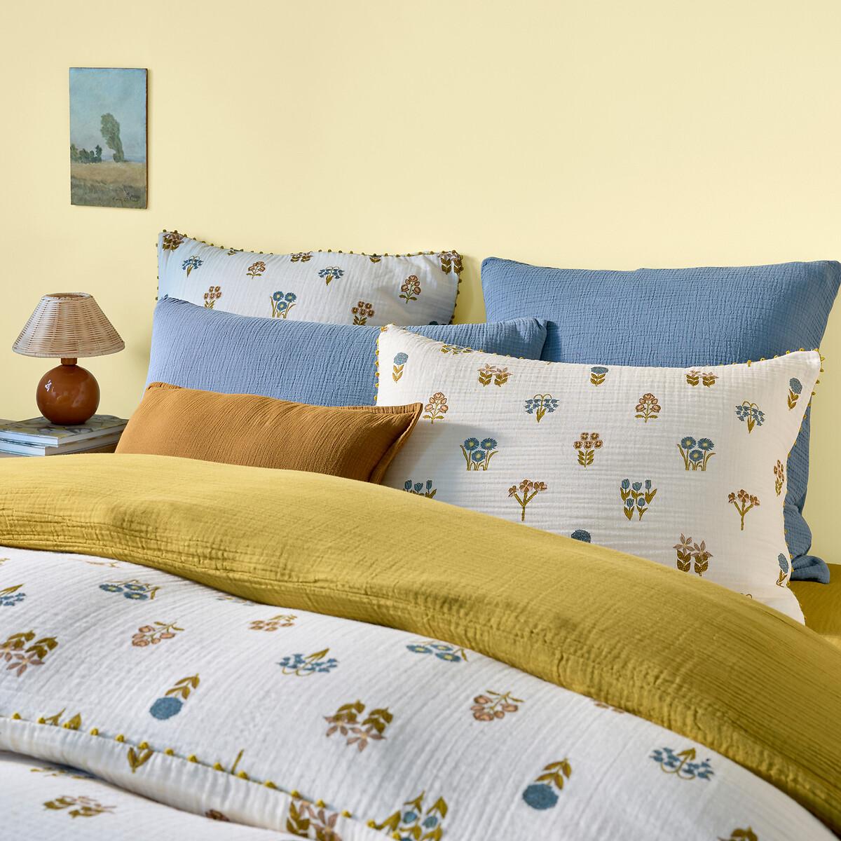 Ellin adopts a delicate look with dotted floral prints and refined crochet finishes. A romantic and country spirit that brings a soft and bucolic atmosphere to your interior. A signature design by La Redoute Interiors. Cotton muslin is light, supple and super soft. Naturally textured, they do not require ironing and become more beautiful over time. Product Details • 100% cotton, 135g/m2 • Cotton muslin • Floral print on both sides • Crochet finish. As the seasons change, add your own personal touch by mixing the Ellin range with our range of Kumla plain bedding. Care Advice • Machine washable at 60°C • By washing your laundry at 40°C instead of 60°C, you limit energy consumption • Product will regain its texture after tumble drying • The cotton muslin may show slight marks due to packaging creases. We recommend that you wash the product as soon as you receive it, and then tumble dry it to restore its look and the beautiful waffle effect. Dimensions • 50 x 70cm: Rectangular pillowcase • 63 x 63cm: Square pillowcase • OEKO-TEX® Standard 100. Standard 100 certification by OEKO-TEX® tests textile products for harmful substances via an independent, international label.