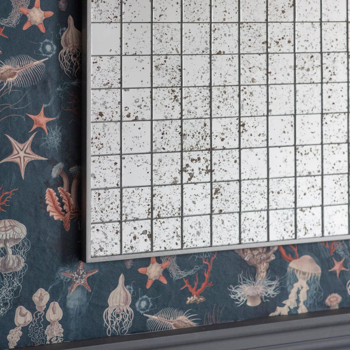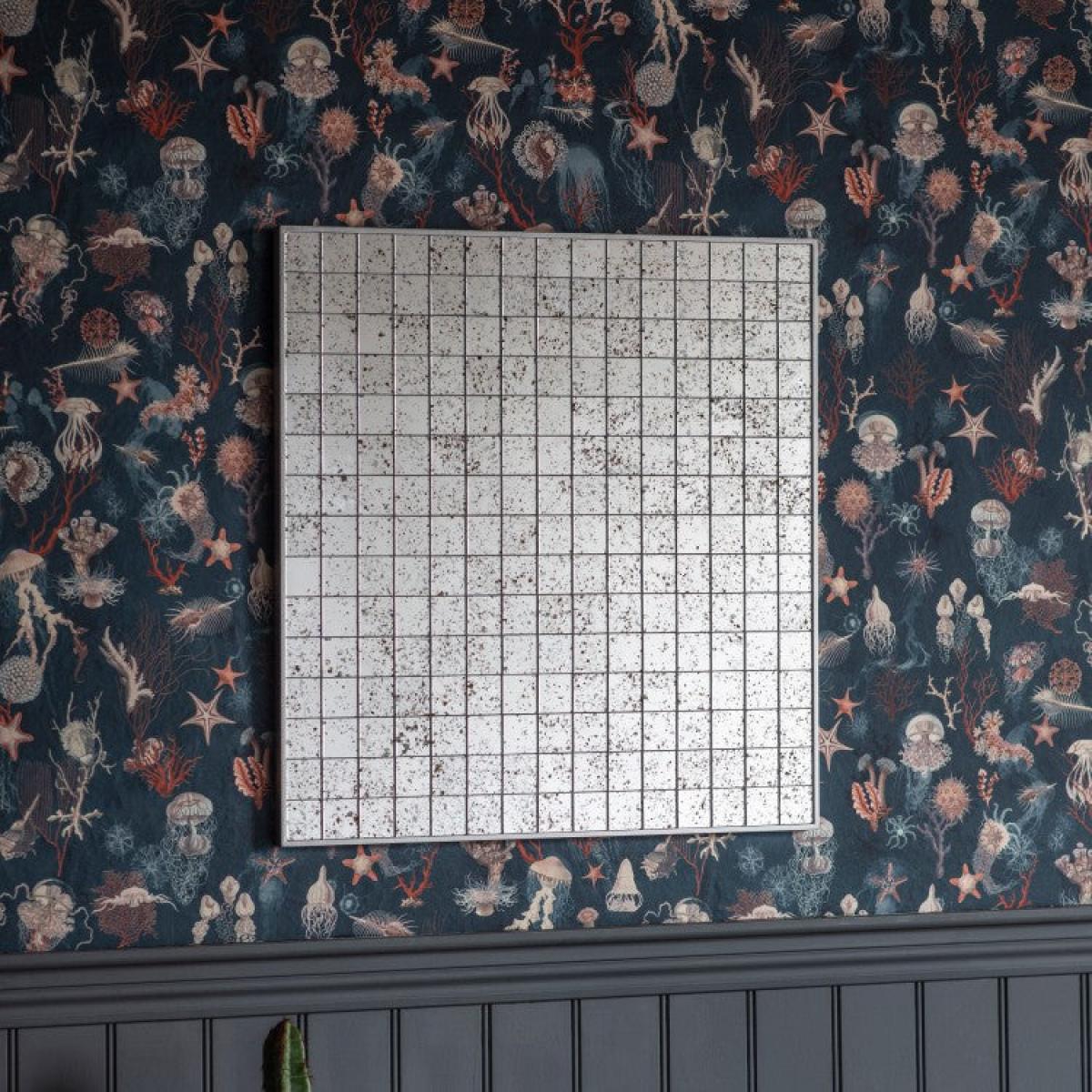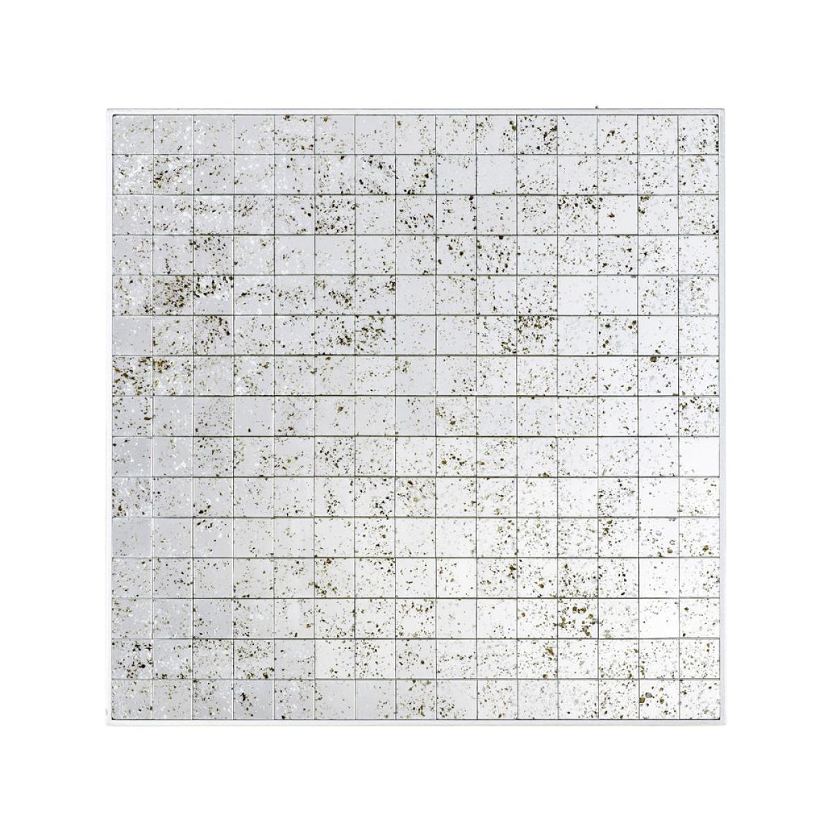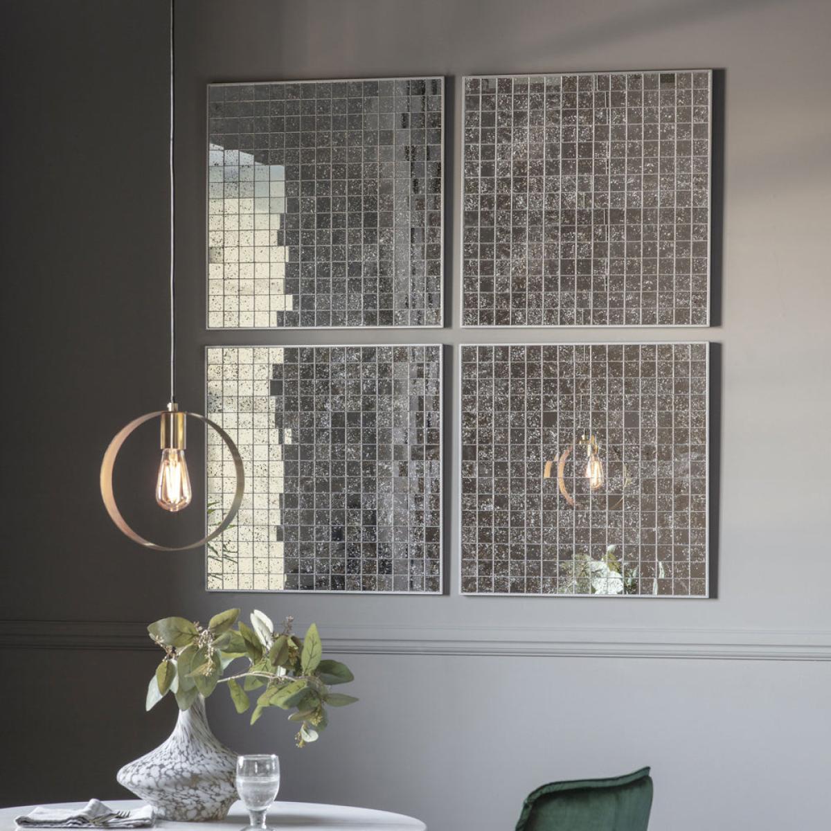 A mirror that adds impact with both its form and its rich patination, the Turnock mosaic mirror from interior design specialist Gallery Interiors is a forthright and striking piece that is perfect for a room with a bold design aesthetic. The myriad squares that make up this mosaic design reflect the light in a multifaceted agglomeration, bouncing it to all corners of your living space. The strong and crisp silver-toned frame adds definition to the mirror and further builds on the industrial-chic styling. Perfect for a room with a warehouse look, this mirror will work well with cabinets with enamelled metals and patinated accents. Dimensions: W: 61 x D: 1 x H: 61 cm