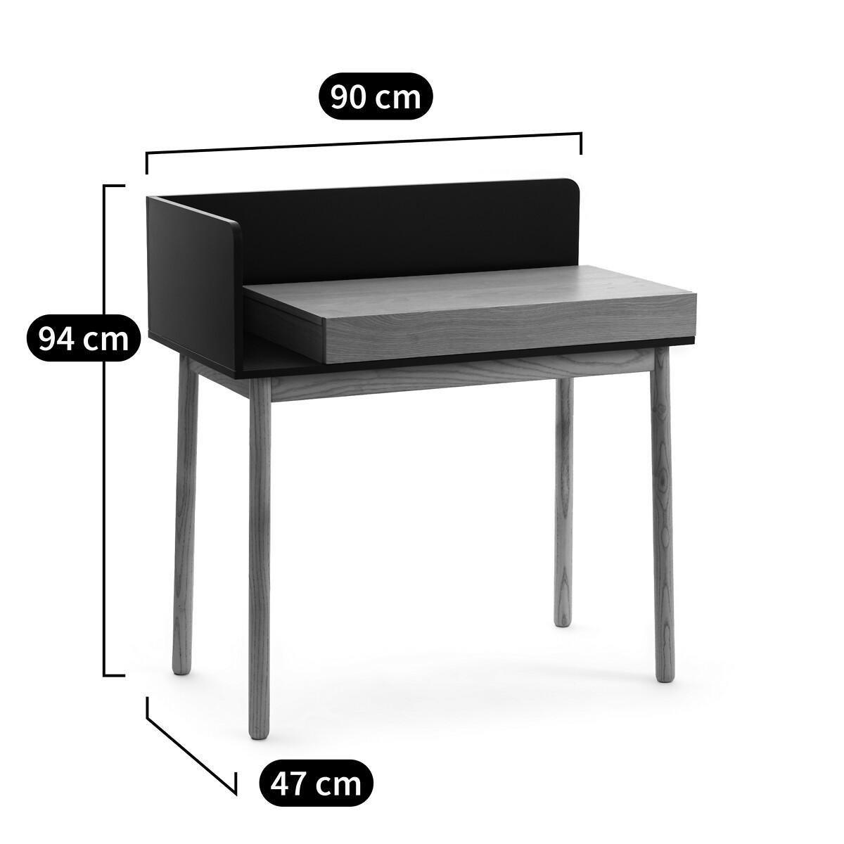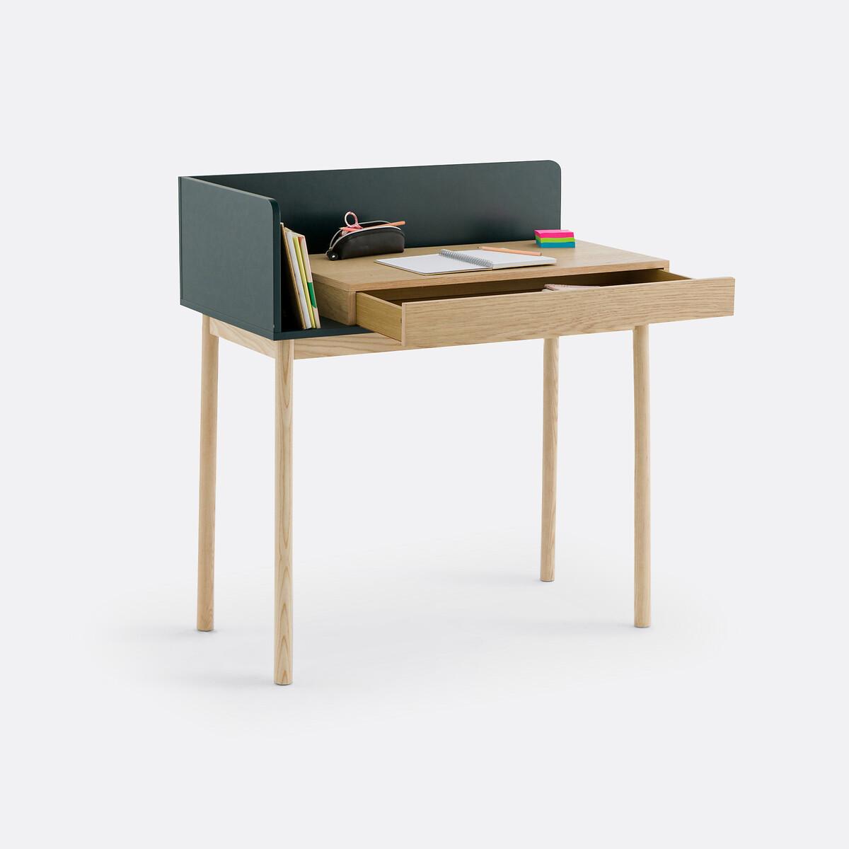 The well-crafted Graphy desk is part of our Les Ingénieux collection. Creations full of ideas to make life simpler and everyday life more beautiful. A structured graphic silhouette with a contemporary style: here is the well-worked Graphy desk. So you can have an office area even without dedicated space. Why you'll love this product • Its wall back allows you to create a small workspace, conducive to concentration • Its large drawer is very practical for storing all your small office equipment • Reversible, the wall can be positioned on the left or right depending on the location of the desk in your interior. Product Details • 1 drawer unit in oak veneered MDF • Surround in lacquered MDF • Solid ash legs • Acrylic finish • ReversibleDimensions. Total: • Length: 90cm • Height: 94cm • Depth: 47cm • Weight: 20kg. Usable dimensions: • Drawer: L70 x D38.7 x H5.3cmDelivery:. This product is sold for self-assembly. Note! Please check that all access points are large enough to accommodate your delivery (doors, stairs, lifts).Dimensions and weight of parcel1 parcel • L100 x H16 x D58cm. 22.8kg