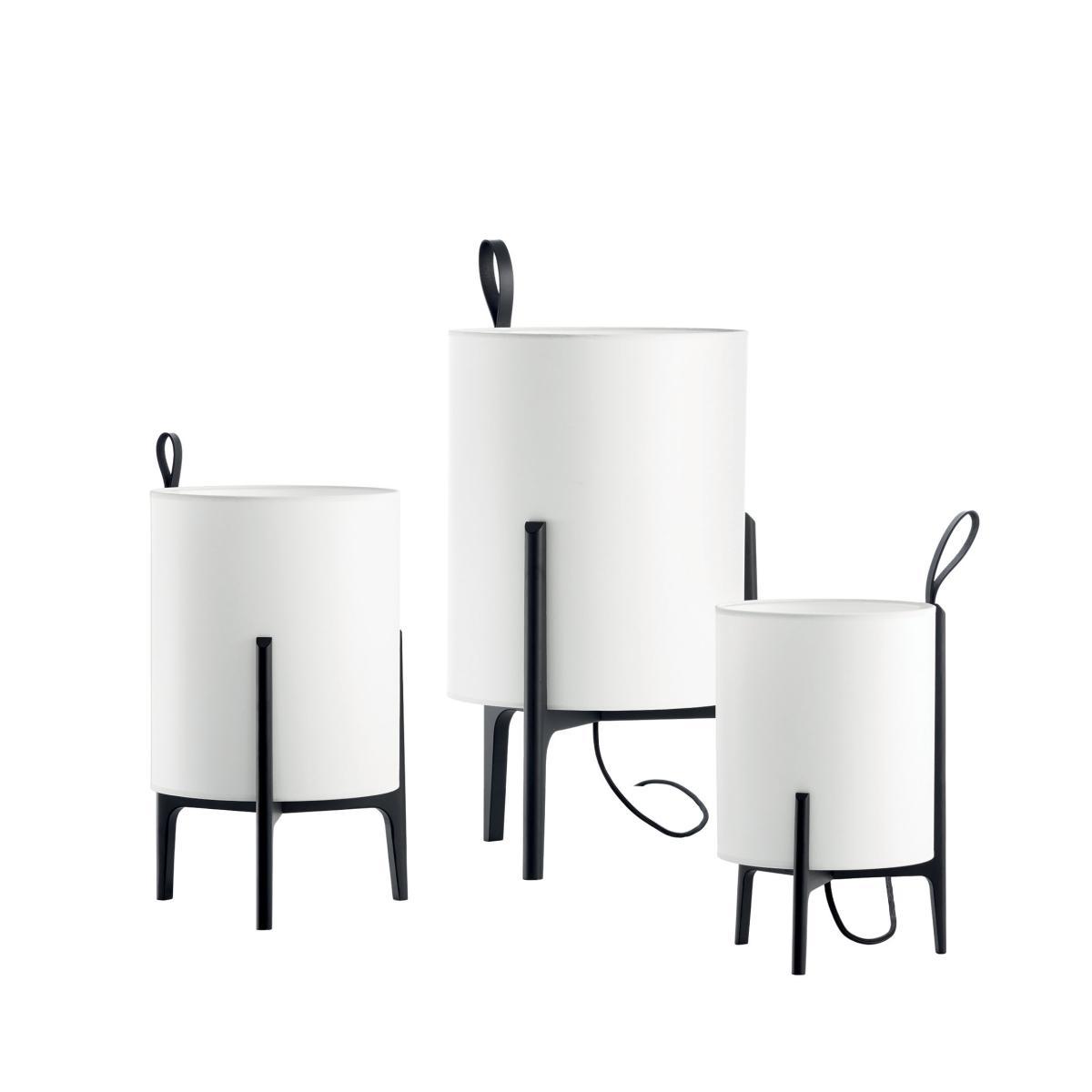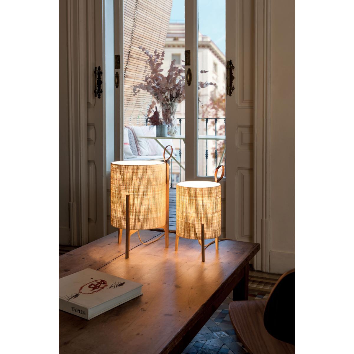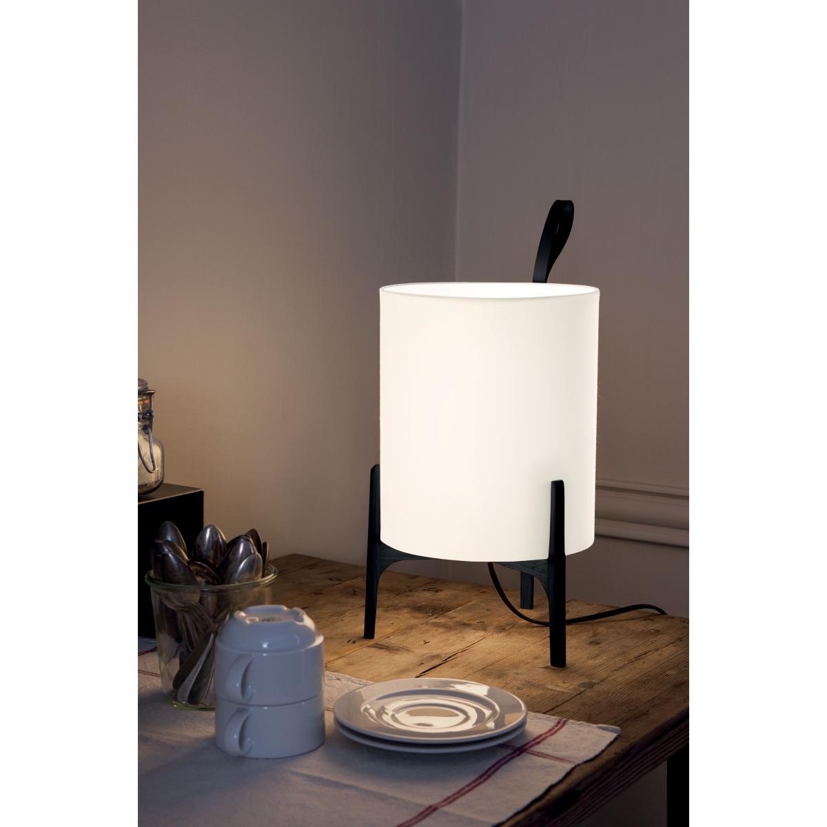 The Greta table lamp cleverly combines natural materials and modern design, in a very contemporary Zen style. We love the warm and cosy look of this light. The large cylindrical cotton lampshade is set into a black oak structure. The details are very neat: this lamp is decorated with an elegant black leather strap and a black fabric cable. The light is filtered by the lampshade for a warm and gentle finish. The Greta lamp gives off a delicate light and offers a peaceful atmosphere. Greta presents an inspired mix: minimalist forms contrast with traditional materials and techniques.