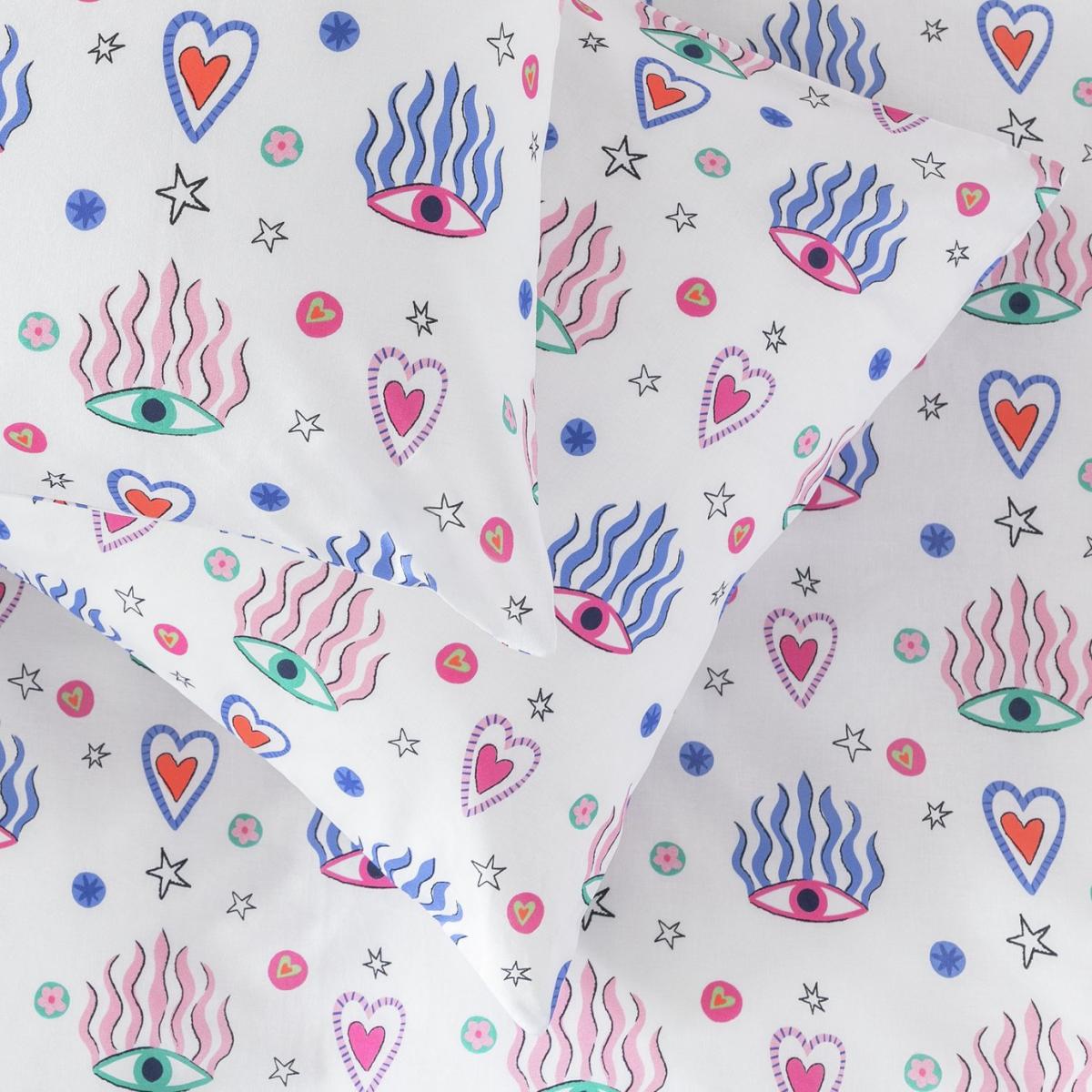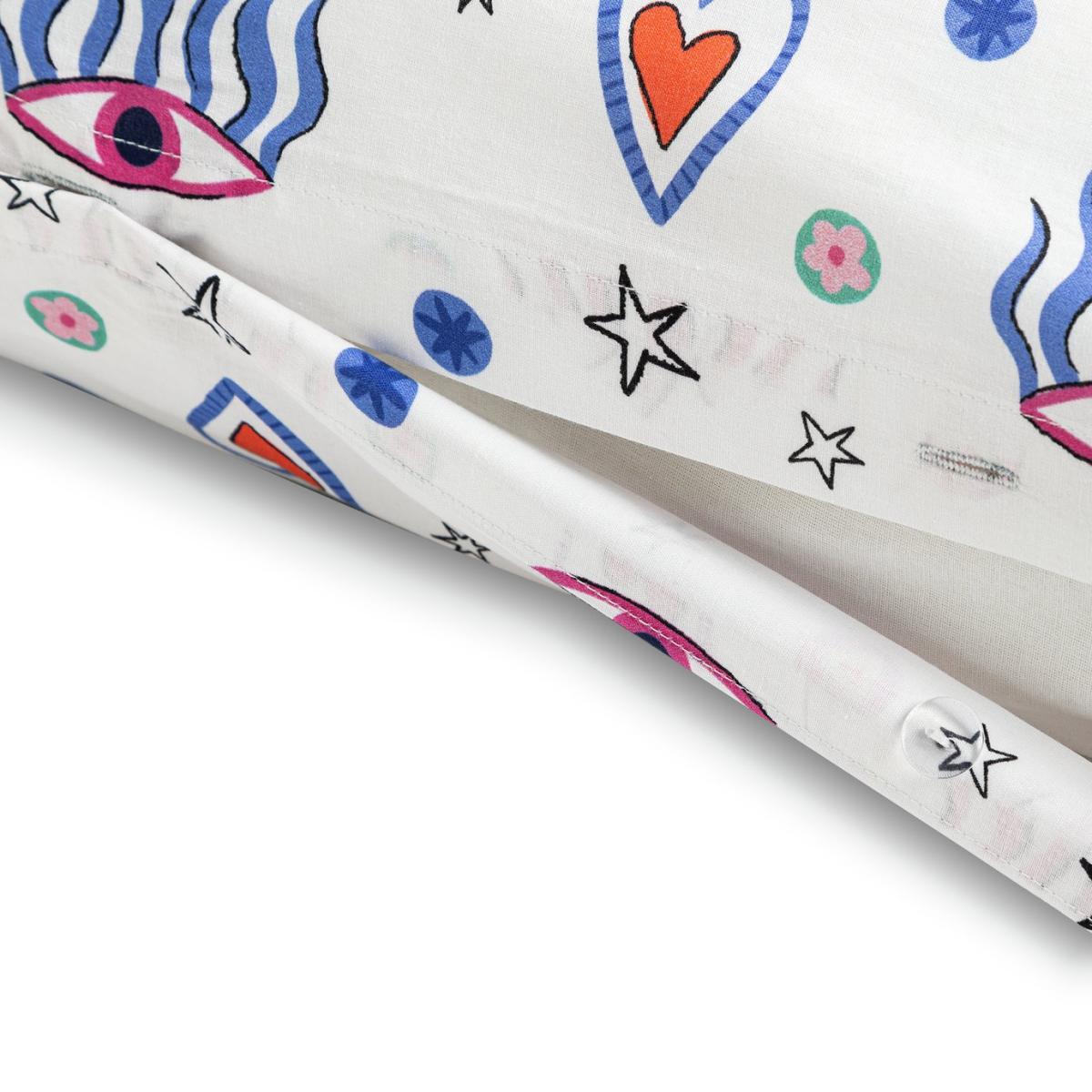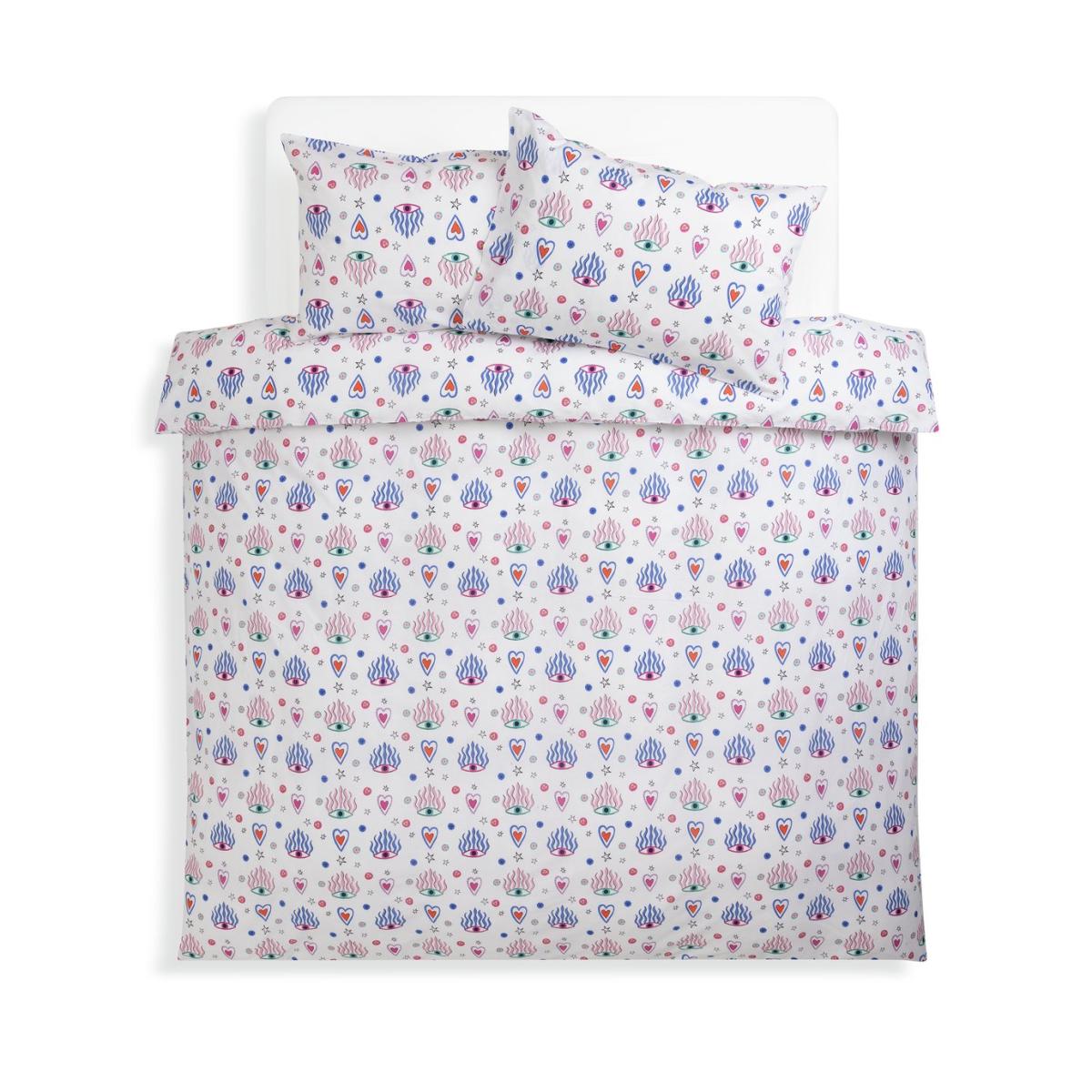You have a good eye for design. This quirky pure cotton bedding set wows with its fun pattern. Lots of colour, lots of charm, lots of character. Sweet dreams. This item carries the STANDARD 100 by OEKO-TEX logo, which means you can be certain that every component has been tested for harmful substances and is therefore harmless to human health. 100% cotton. 144 thread count. Set includes 1 duvet cover and 2 pillowcases. Bed size: double. Length 200cm, Width 200cm. Reversible. Buttons for fastening. Standard pillowcase (s). Pillow case length 75cm, Width 50cm. Reversible pillowcase (s). Wash before use. Suitable for tumble drying.