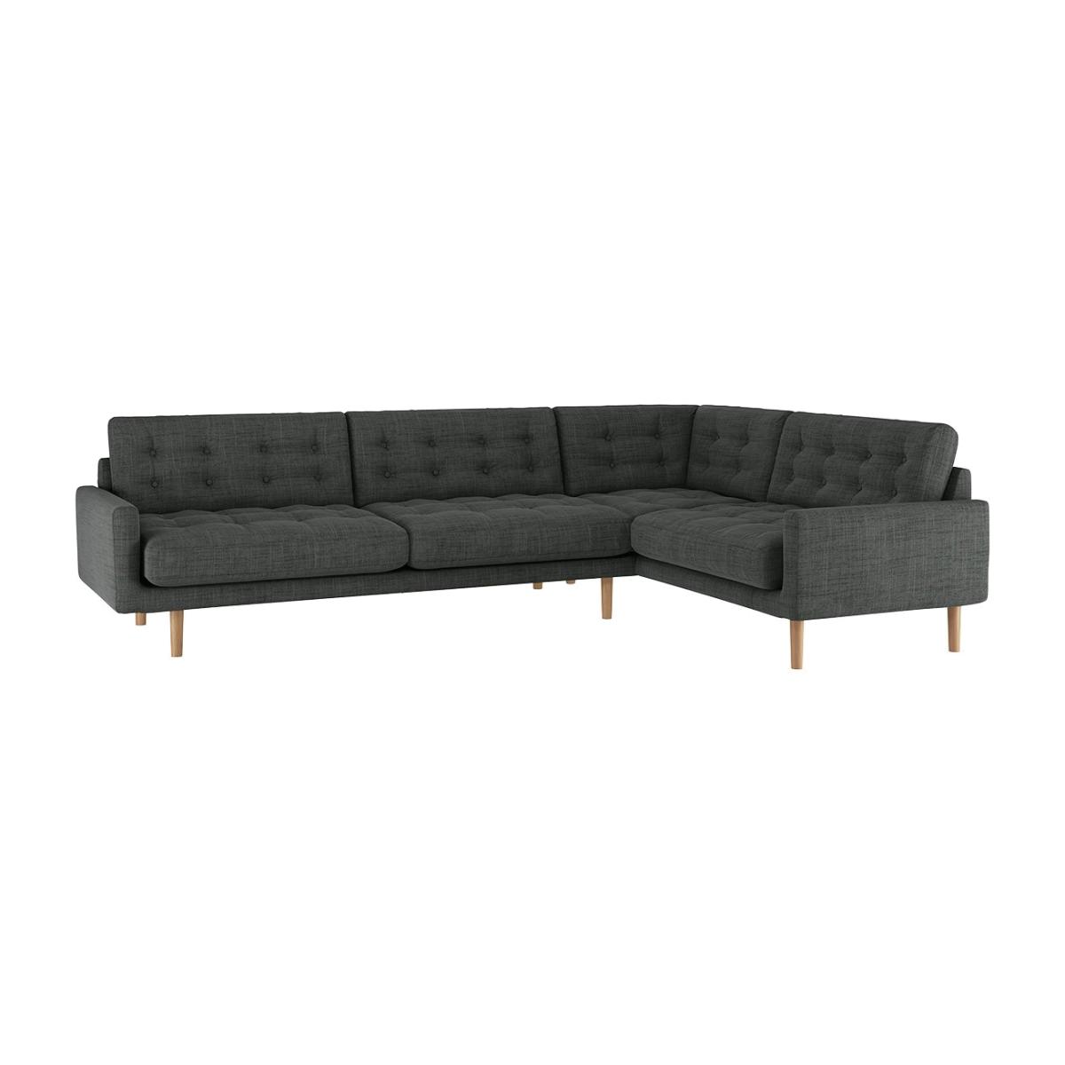Made in Italy, the Fenner charcoal Italian woven fabric left-hand 4 seater corner sofa has slender cushioned arms and soft, feather-wrapped fibre seat and back cushions. The sumptuous sofa combines a classic box frame with loose covers for a softer look and has button detailing on its cushions, which acquire a relaxed, comfortably lived-in look over time. Exclusive to Habitat, the sofa's deep seat and thin frame create a large seating area. Part of the Fenner collection. Left hand corner. Material:Made from 67% viscose and 16% cotton. Wooden feet. Fixed seats with feather and fibre topped foam filling. Fixed cushion(s) with feather and fibre filling. Dimensions:Size H79, longer width 298, shorter width 190, D190cm. Floor to seat height: 39cm. Depth of seat: 63cm. Height of seat back: 40cm. Packaged dimensions:Package size H55, W215, D95cm. Second package size H55, W195, D95cm. General information:Professional clean only. Self-assembly - just add feet. Maximum individual user weight: 120kg. Manufacturer's 1 year guarantee.