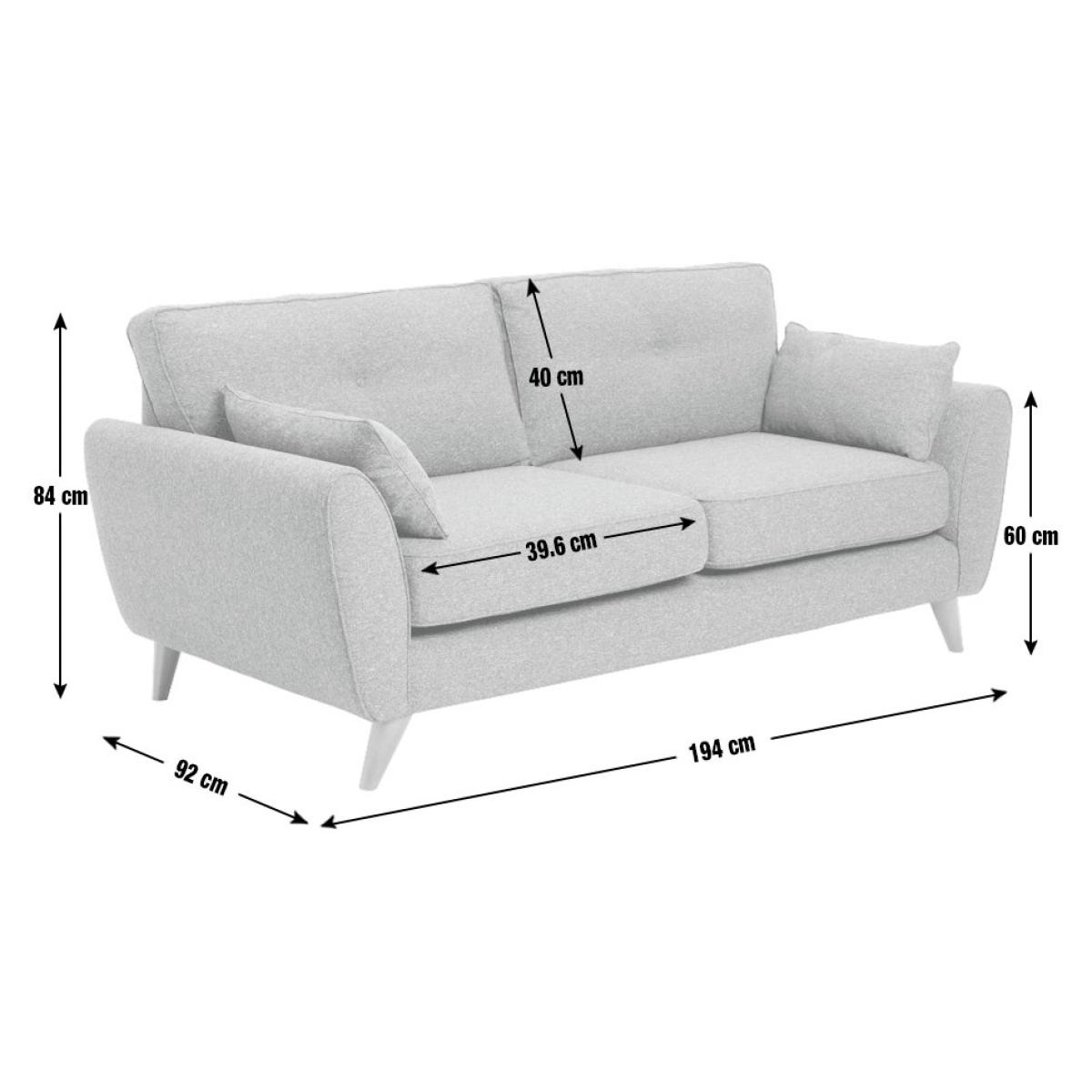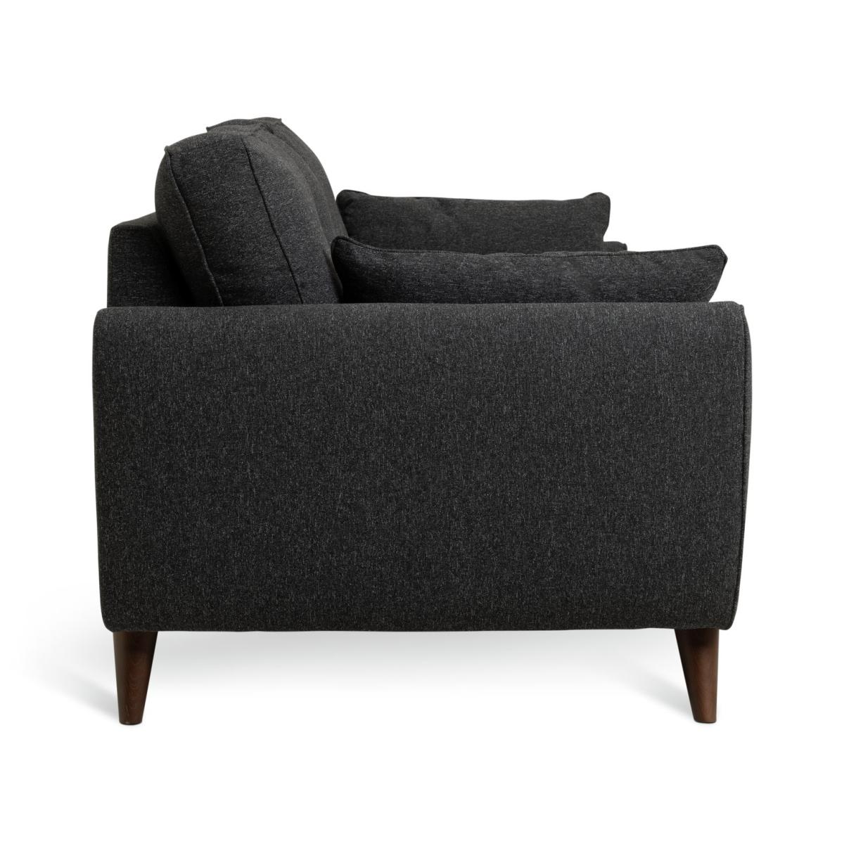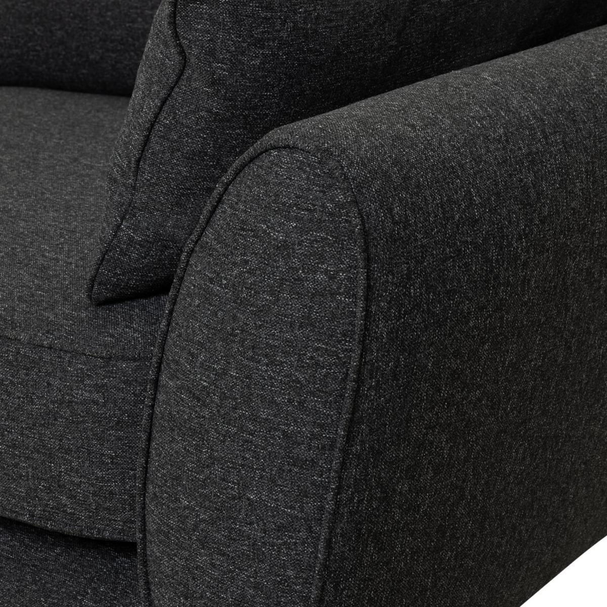 Retro chic. Upholstered in woven charcoal fabric, our 3-seater Iris sofa features mid-century modern touches. Check out the clean curves, button back removable cushions and splayed beech wood legs. Relax into the comfy removable seats, arrange the 2 scatter cushions and settle in. Part of the Iris collection. Material: Made from 1% polyester. Wooden feet. Medium firm seat cushions. Removable seats with foam filling. Removable cushion(s) with fibre topped foam filling. Dimensions: Size H84, W194, D92cm. Floor to seat height: 47cm. Depth of seat: 60cm. Height of seat back: 40cm. Width of seating area between arms: 154cm. Height of arm rest: 60cm. Weight 41.5kg. Professional clean only. Plump cushions regularly to maintain shape. Minimal assembly - just add feet. Maximum individual user weight 110kg. Packaged dimensions: Package size H60, W196, D94cm. FSC certified meaning the materials used for this product are responsibly sourced. General information: Manufacturer's 1 year guarantee.