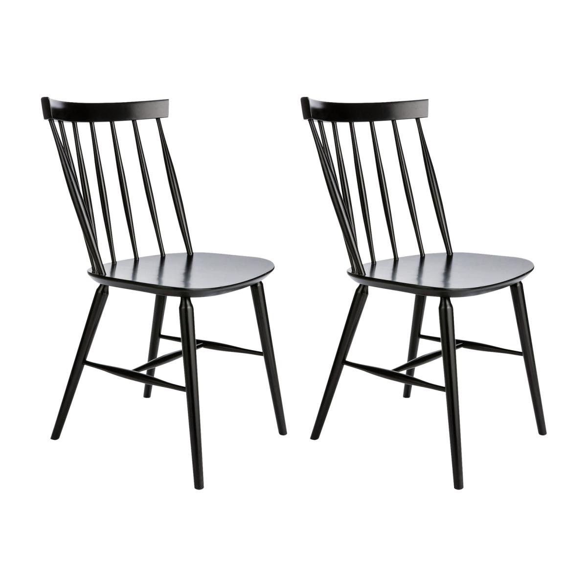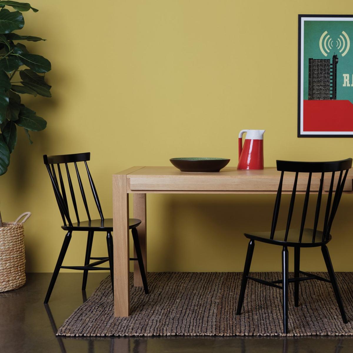 A contemporary update on a traditional design. This pair of striking spindle-back Talia dining chairs work well with a variety of table styles. In stark black, they can also provide a strong visual contrast. Made from hard-wearing, lacquered solid beech wood with turned rods and a classic H-shaped support structure. Characterful country kitchen chairs. Inviting extra guests over? Buy a few pairs of chairs. And we've different colours too, making it easy for you to mix it up.