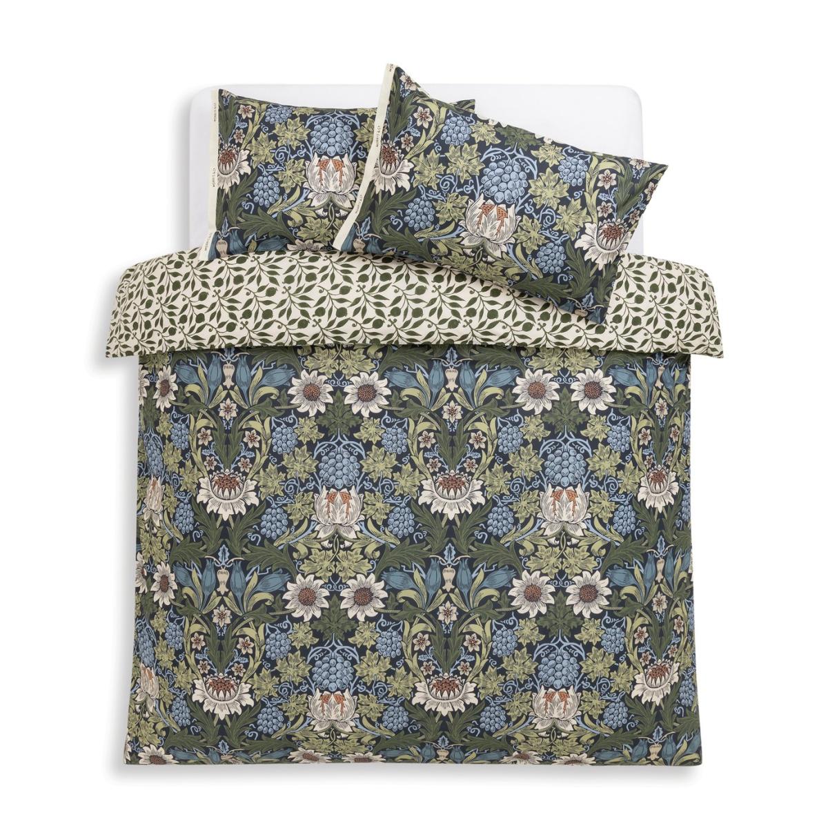 Sleep in beauty. This Sunflower and Rosehip bedding set blends naturalistic design with a symmetrical and layered pattern of sunflowers and vines by William Morris. Made from 100% cotton with a 180-thread count, it has a soft, smooth finish and a contrasting neutral underside for a harmonious turnback. While a charming double flange Oxford edge makes a decorative pillowcase detail. Habitat x Morris & Co. A celebration of British design heritage with a fresh take on the iconic prints of William Morris. Authentically timeless pieces designed for the future. Part of the Habitat x Morris & Co. Collection. 100% cotton. 180 thread count. Set includes 1 duvet cover and 2 pillowcases. Bed size: double. Length 200cm, Width 200cm. Reversible. Buttons for fastening. Standard pillowcase (s). Pillow case length 75cm, Width 50cm. Machine washable. Suitable for tumble drying.