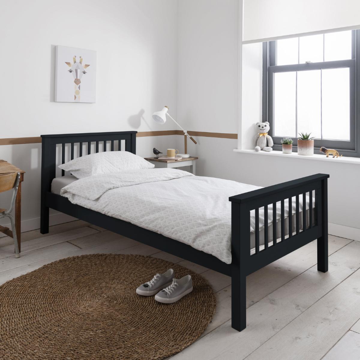 The beautiful Hampshire bed offers a clean and contemporary vibe to your children's bedroom. The simple neutral shades and minimalistic design are both chic and versatile, whilst the sturdy posts, shaker style head and footboards and solid pine construction offer a stable space for your little one to rest their head. Choose from a bright white or stylish grey shade. If you're looking to maximise space, why not add one of our under-bed trundles? These nifty pull-out drawers are brilliant for keeping bedding, toys and general kid's clutter neatly out of sight. Clearance to Underside of the Bed: Approximately 21.5cm