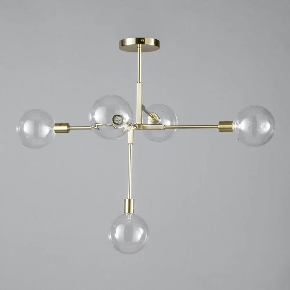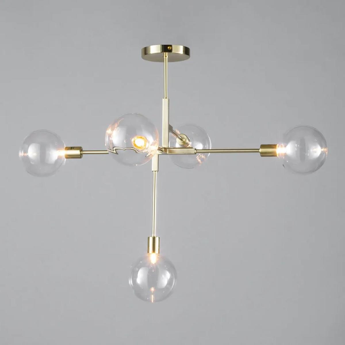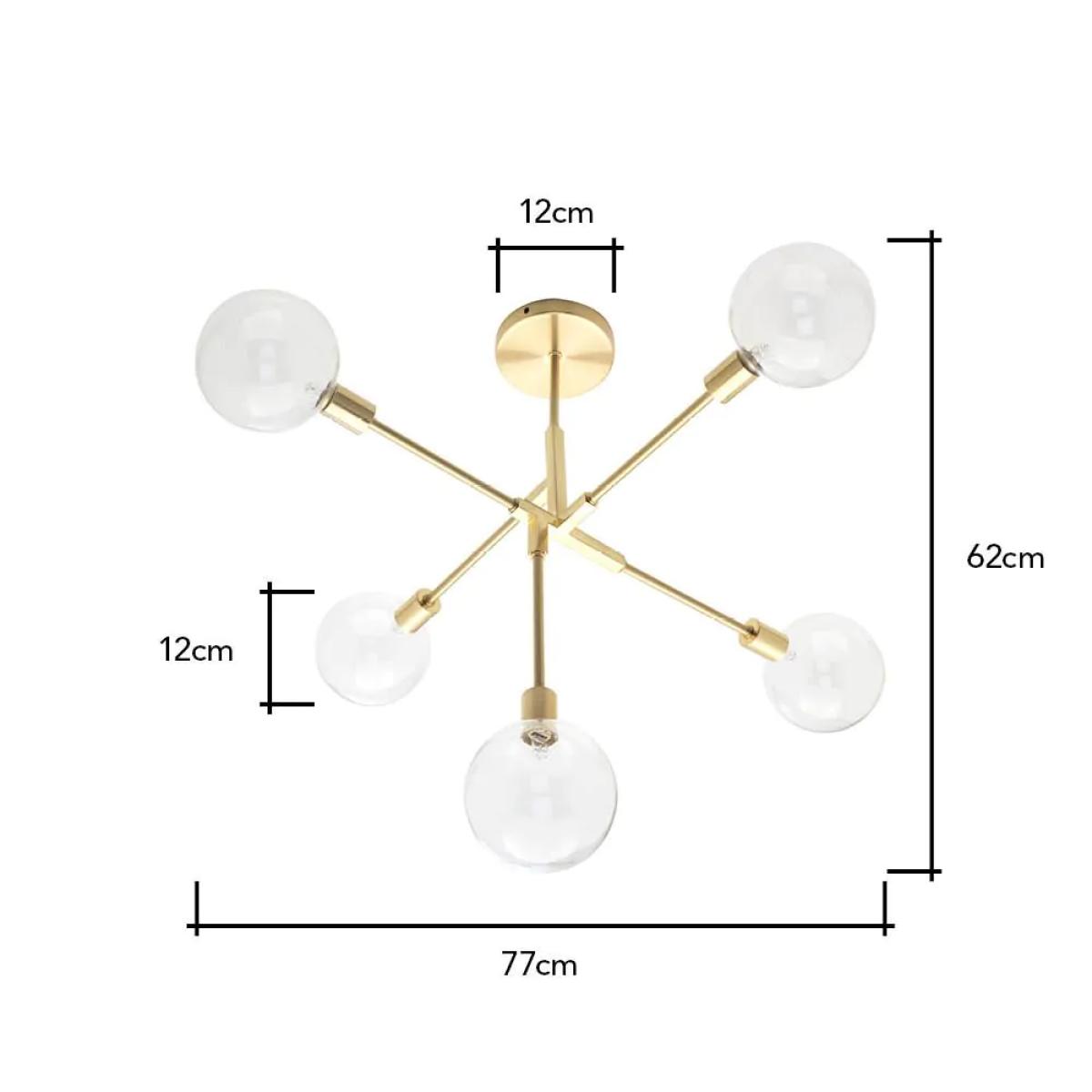 The Hennock ceiling light is a truly showstopping piece, giving a simple, sophisticated vibe to any interior. With a unique arrangement of arms revealing the 5 lights and glass globe shades, the unusual design looks great as a stylish centrepiece for a contemporary décor. The 5 light design ensures that you get fantastic illumination across the space, with a soft ambience that helps to create a relaxed atmosphere to unwind in at the end of the day. Finished in brass, this fitting gives an elegant metallic tone to your home.