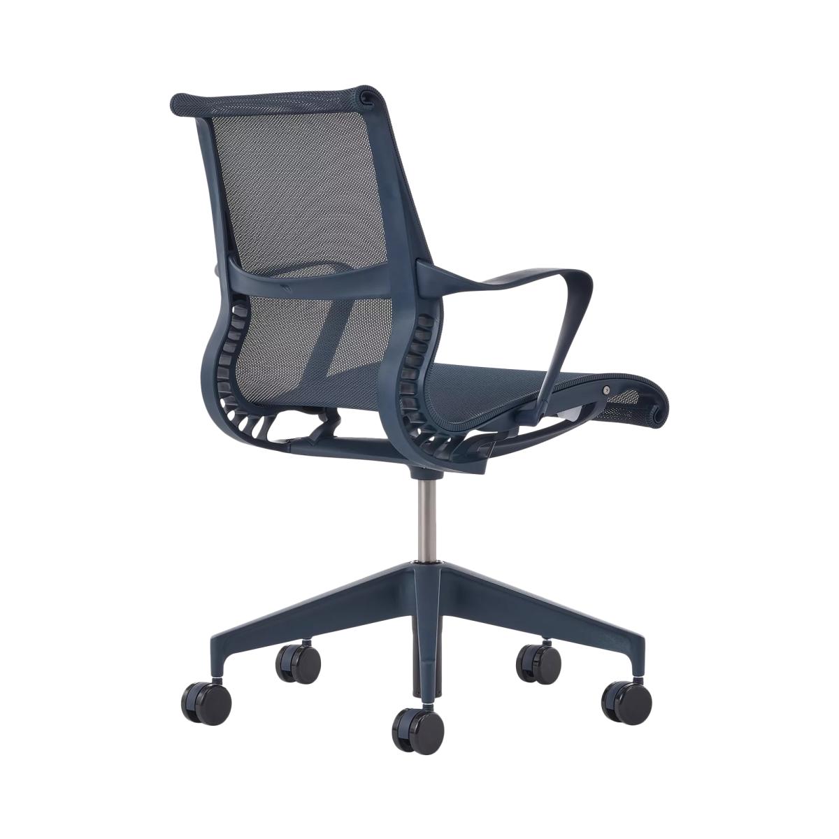 With a number of awards, including Best Sustainable Design Solution, the Setu chair provides comfort for any situation. The Kinematic Spine bends and flexes as you do, while the elastomeric fabric conforms to your contours to keep you comfortable and supported. Rather than having adjustment levers, Setu enjoys a buoyant design that allows it to move and conform to your body simply by responding to your weight as you sit. The minimalist outline is thanks to meticulous design: during creation Setu was shaped and reshaped to streamline the shape and ensure less material is used. From the tip of Setu's polypropylene Kinematic Spine down to the durable alloy base, this chair is finished without using toxic coatings. Fitted with C9 castors - double wheels with internal brake, black nylon wheels and yoke and soft polyurethane tread suitable for both hard floors or carpet. Protect your floor While this chair is suitable for the flooring specified, we suggest using floor pads or mats where possible, for added protection to your flooring and furniture. Want to see it first? You may want to see and get a feel for the furniture in one of our shops before ordering. We'll be able to tell you where the range you'd like to view is on display.