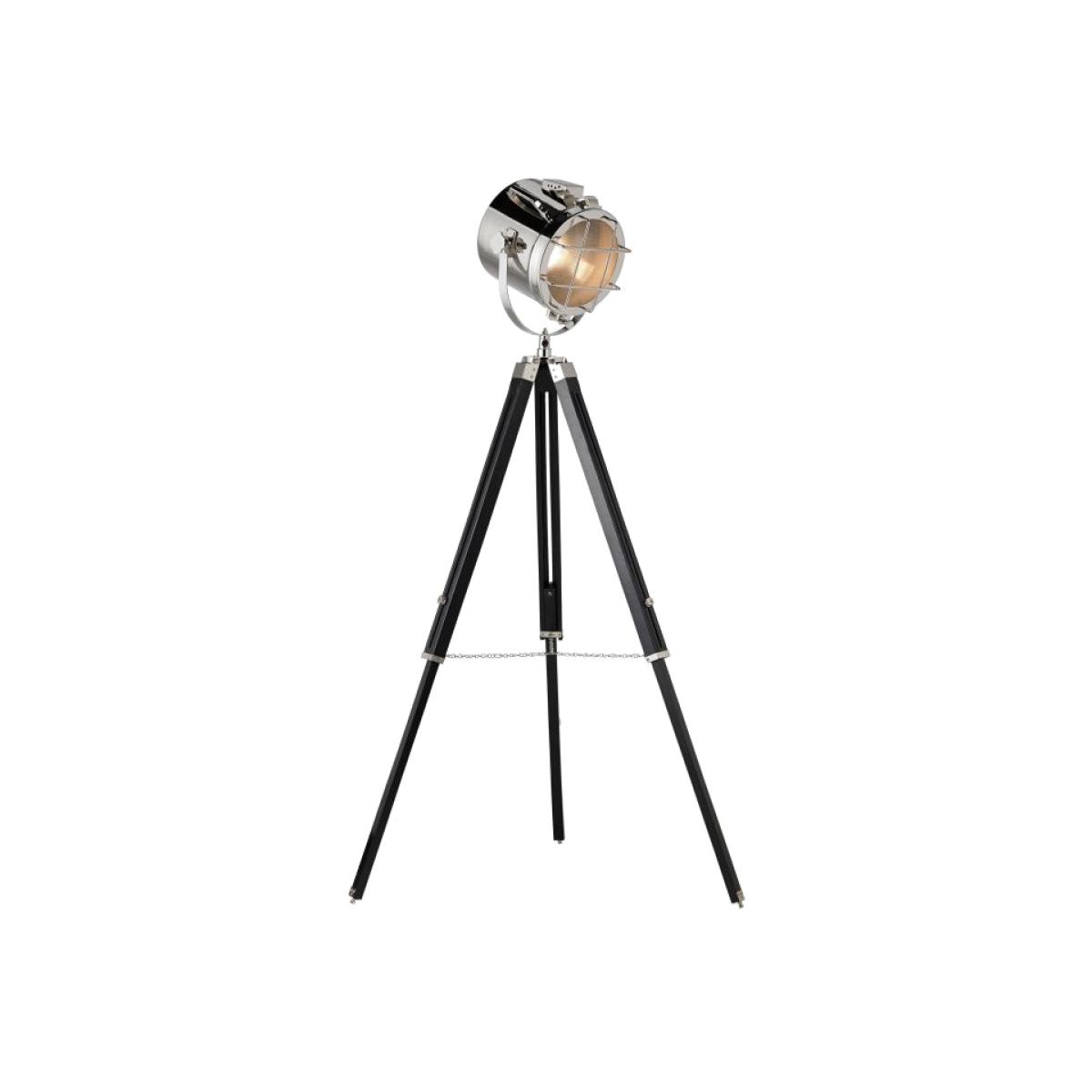The Hexham is a large floor lamp with a tripod design, constructed from wood and steel with a polished nickel and matt black finish. Suitable for use with LED lamps and supplied with inline foot switch. Colour: Black. Lamp Holder Type: E27. Bulb Type: GLS. Maximum Bulb Wattage: 40. Bulb Included: No. Number of Bulbs: 1.