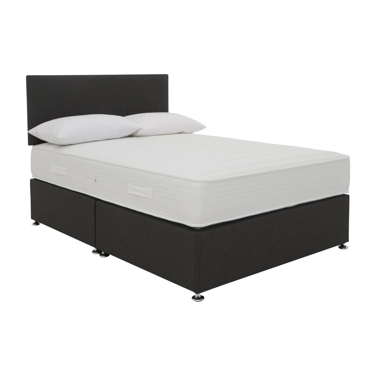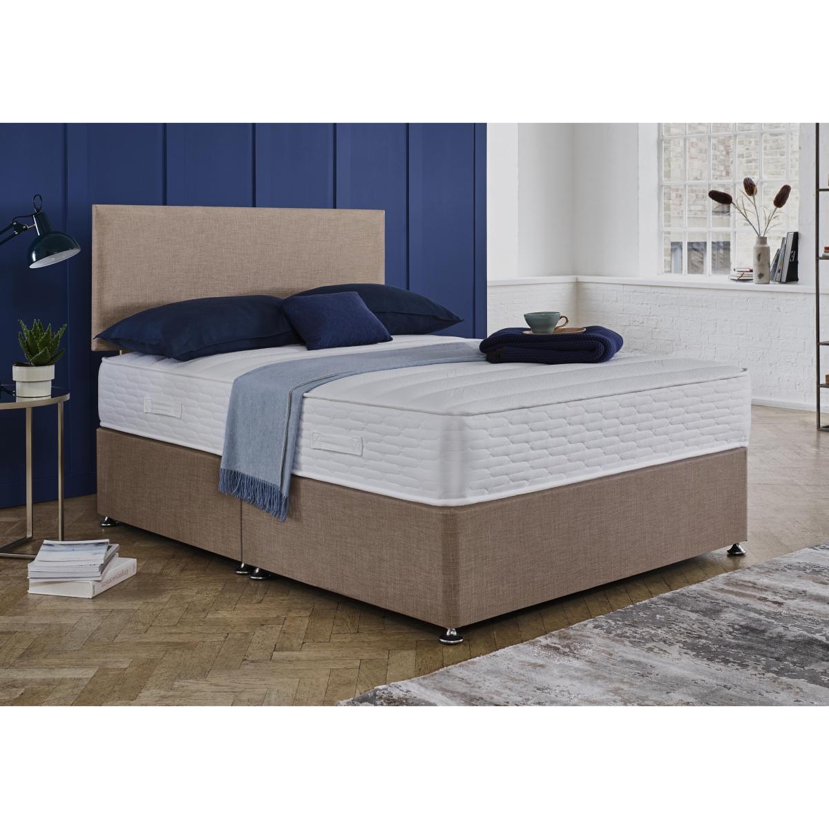 The Highgrove Essentials Dream collection makes it easy to find your dream bed, and at an amazing price. Simply choose the mattress feel you prefer – coil spring, pocket spring or memory foam – and then add a divan base with optional storage drawers and complete the look with one of three different styles of headboard. Already have a divan base and headboard? No problem. All Highgrove Essentials Dream mattresses can be purchased separately. Handcrafted in Britain, the Highgrove Essentials Dream collection has been created exclusively for Furniture Village and is only available online. A high-quality coil spring divan set at a fantastic price. Includes upholstered base with optional storage and stylish headboard. Exclusively available online at Furniture Village. Looking for a beautiful new bed? The Highgrove Essentials Dream Coil divan set with Illusion headboard takes the hard work out of putting together a mattress, divan base and headboard. It also promises a fantastic night’s sleep at a great value price. This divan set includes the extra firm 24 cm Highgrove Essentials Dream Coil mattress. It features a traditional coil spring construction for excellent support, hypoallergenic fillings and reinforced edges for a wider sleeping surface. It’s finished with a soft, microquilted Coolmax® stretch fabric cover that helps regulate body temperature, keeping you cool and comfortable as you sleep. It’s paired with a beautifully upholstered platform top divan base and headboard available in a choice of three sophisticated colours. The divan base is offered with optional storage drawers. The stylishly minimal and square-edged Illusion strutted headboard completes this contemporary bedroom look. The Highgrove Essentials Dream Coil divan set with Illusion headboard is part of the Highgrove Essentials collection, exclusively available online at Furniture Village. Handcrafted in Britain. Product images are representative. Find out more. Please note. This mattress should be aired for four hours after delivery to freshen and remove any aroma from storage. It may take time for your mattress to attain its full size once the springs have settled to the correct position. This is due to the mattress being upright during transit. Settlement of fillings and indentations caused by body weight compressing the fillings are natural and not considered defects. This can be minimised by regular rotating. We recommend the use of a mattress protector.