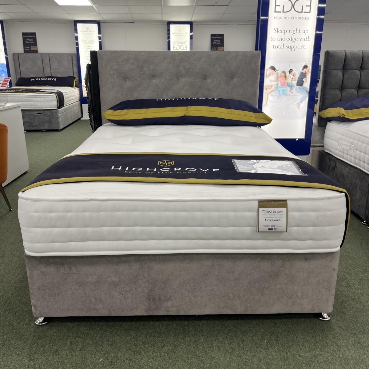 Note - The headboard pictured is not included but is available to purchase separately. The base or frame pictured in the image may not be representative of the specific base you require. Please contact us for more information, if needed. The Highgrove Greenwich Mattress & Divan Set has 1000 advanced pocket springs, and a luxurious Soft as Silk knitted stretch fabric cover which provides natural breathability and a unique surface comfort feel. Traditional Hand-Tufted mattress with pure woollen tufts to secure the sumptuous layers of upholstery. Sleep both sides to extend mattress life and performance - please turn regularly Features: Soft Tension Mattress – Good for side sleepers. The softest level of support Luxurious stretch fabric and a lavish mix of natural upholstery enhances surface comfort. The Highgrove pocket spring system provides total body support to ensure correct spinal alignment and further enhances sleep quality. Sleep both sides to extend mattress life and performance - please turn and rotate regularly Suitable for up to 14-20 stone per side of mattress (left or right) 5 Year guarantee Choice of storage options Choice of base fabrics Mattress Dimensions Mattress depth - 25cm Single - 90cm (w) x 190cm (l) Double - 135cm (w) x 190cm (l) King - 150cm (w) x 200cm (l) Superking - 180cm (w) x 200cm (l) All screens vary in colour reproduction and whilst every effort has been made to display the colour as accurately as possible it is for guidance only.