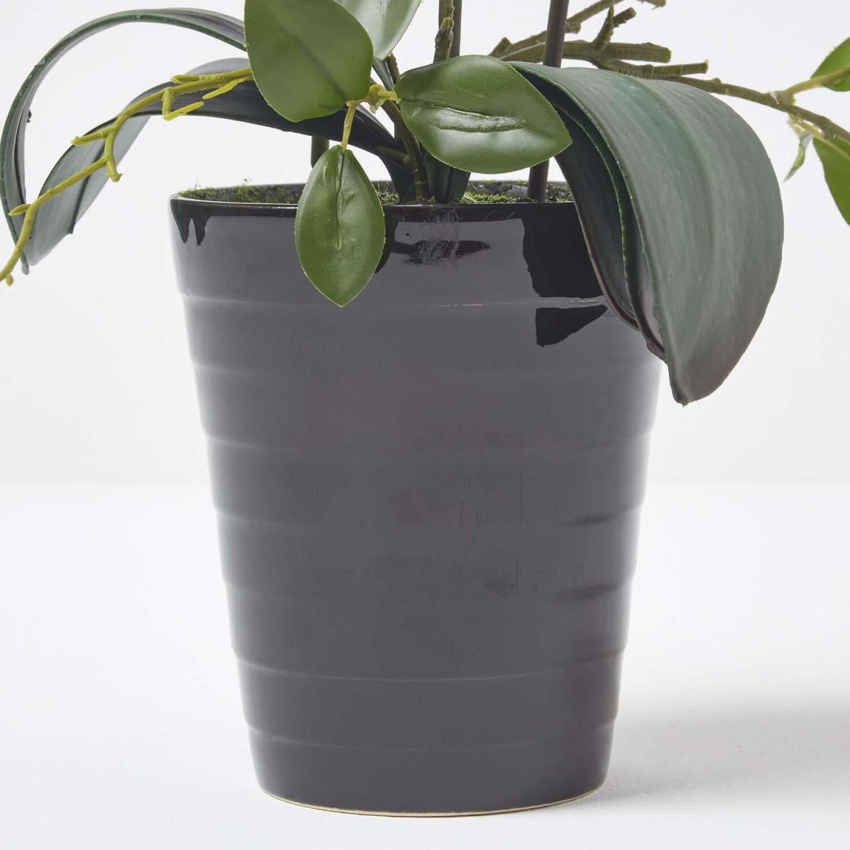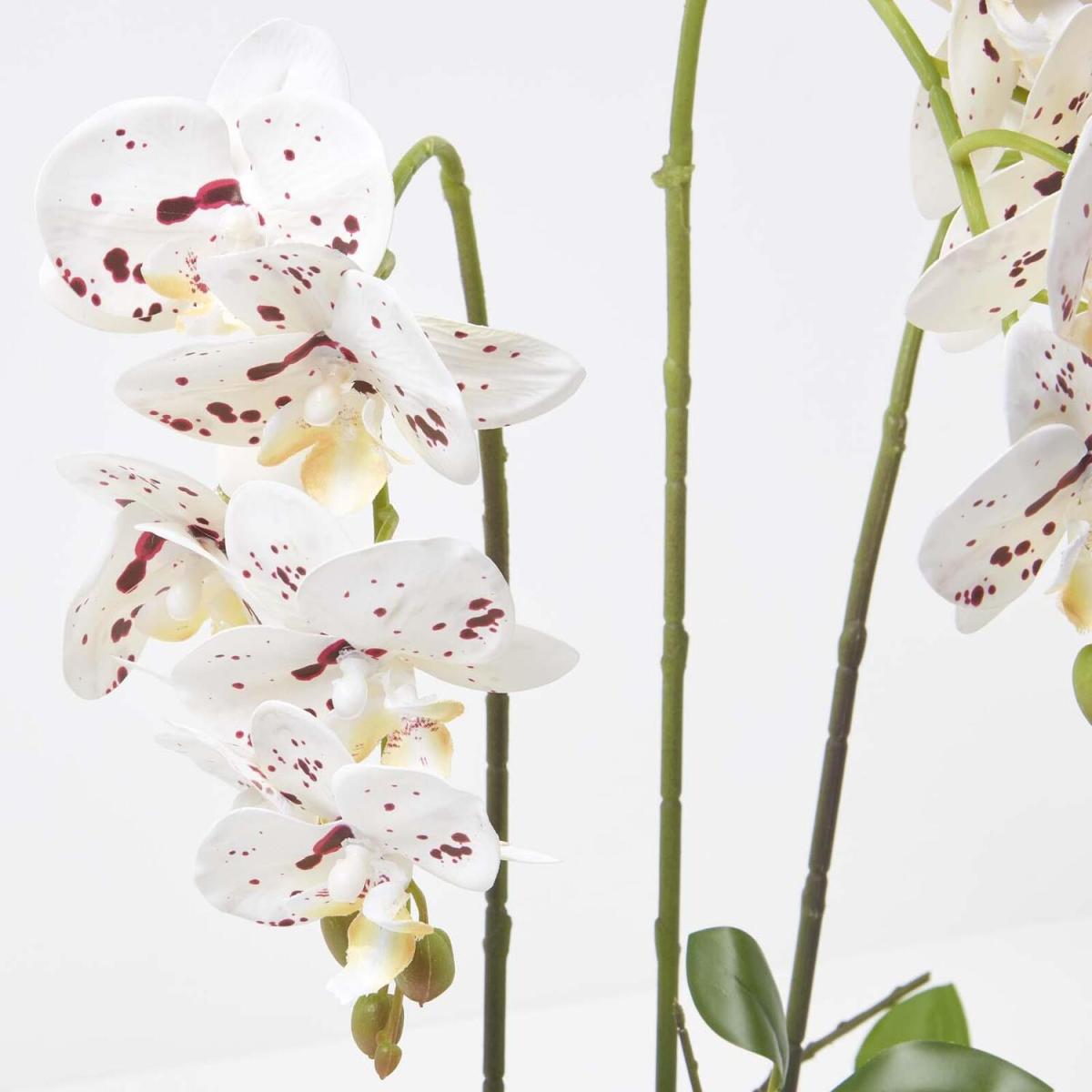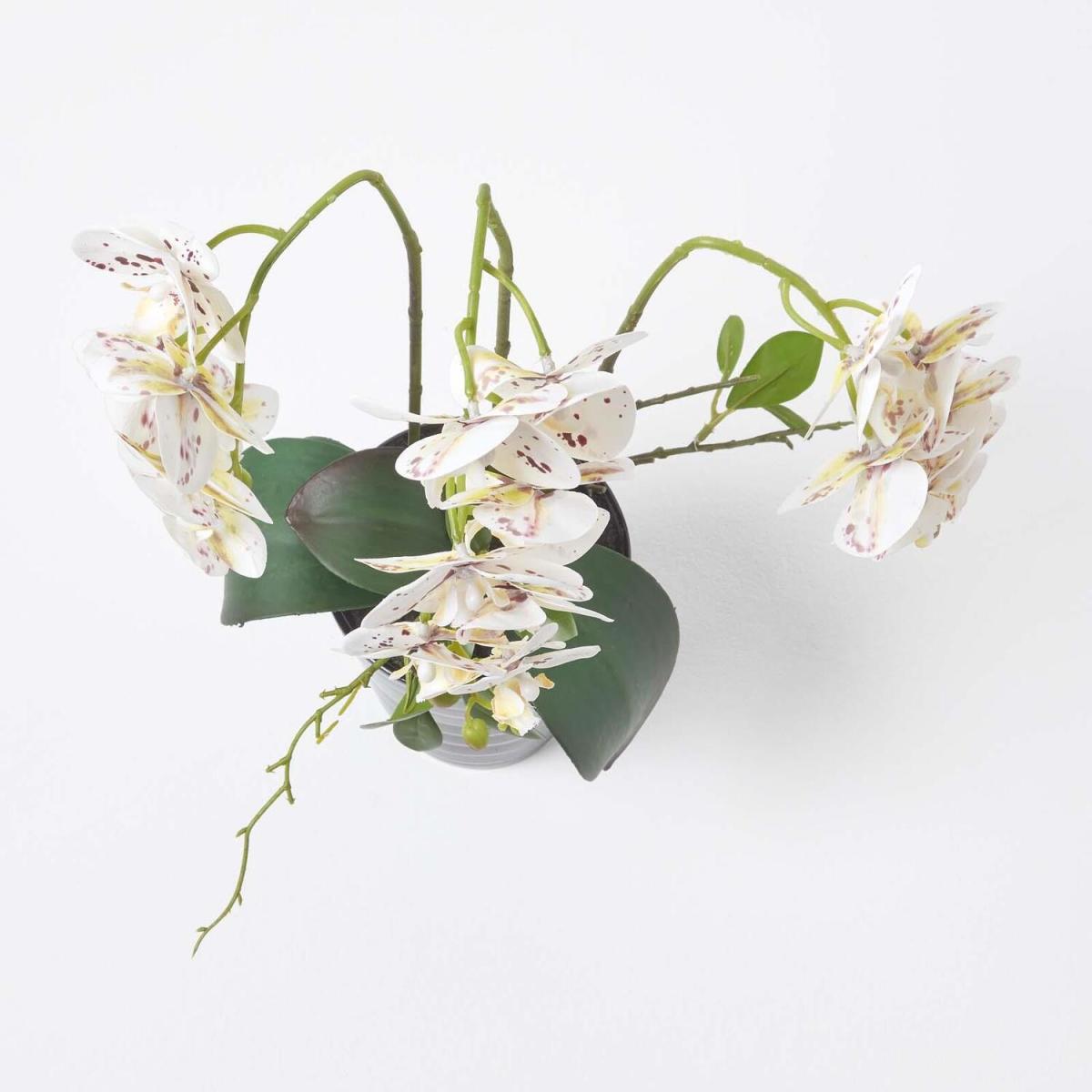 Exclusive range of lifelike artificial orchids from Homescapes artificial plants and trees collection. Expertly handcrafted from the finest quality materials, this stunning range of artificial orchid plants are carefully handcrafted to ensure true botanical accuracy and UV treated for lasting colour. Brighten up your home or office with this stunning artificial orchid, ideal for windowsills bathrooms and side tables. Similar to artificial white dendrobium orchids, this plant features a bunch of delicate silk like polyester artificial orchid flowers, leaves and stems for a realistic feel, this orchid really will have guests thinking its the real deal. Perfect for those who lead busy lives and don't have time for watering plants, this artificial white orchid plant requires little to no maintenance, simply wipe over with a damp cloth and keep out of direct sunlight. Sat in a sleek traditional ceramic pot, this orchid is ideal for sitting on side tables to make a statement in dull living spaces. Mix and match from our extensive range of plants and flowers available in a range of colours, styles and sizes to add decoration in your home.