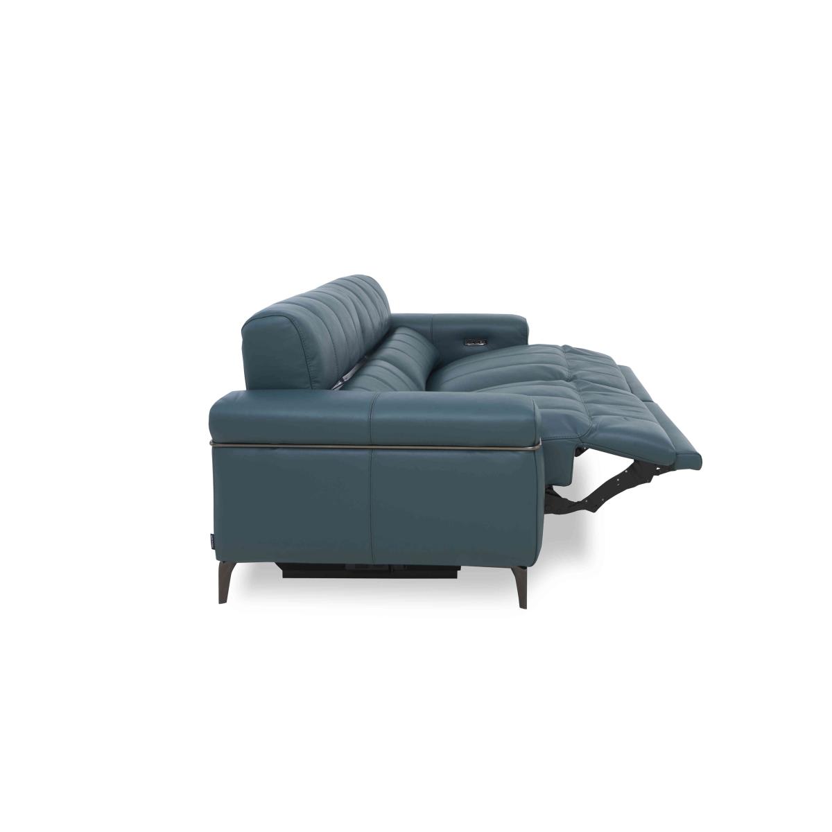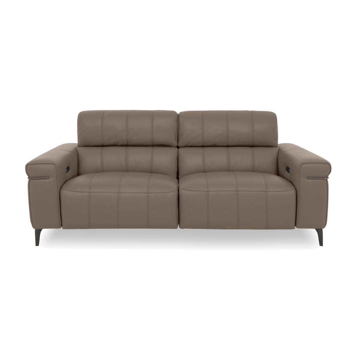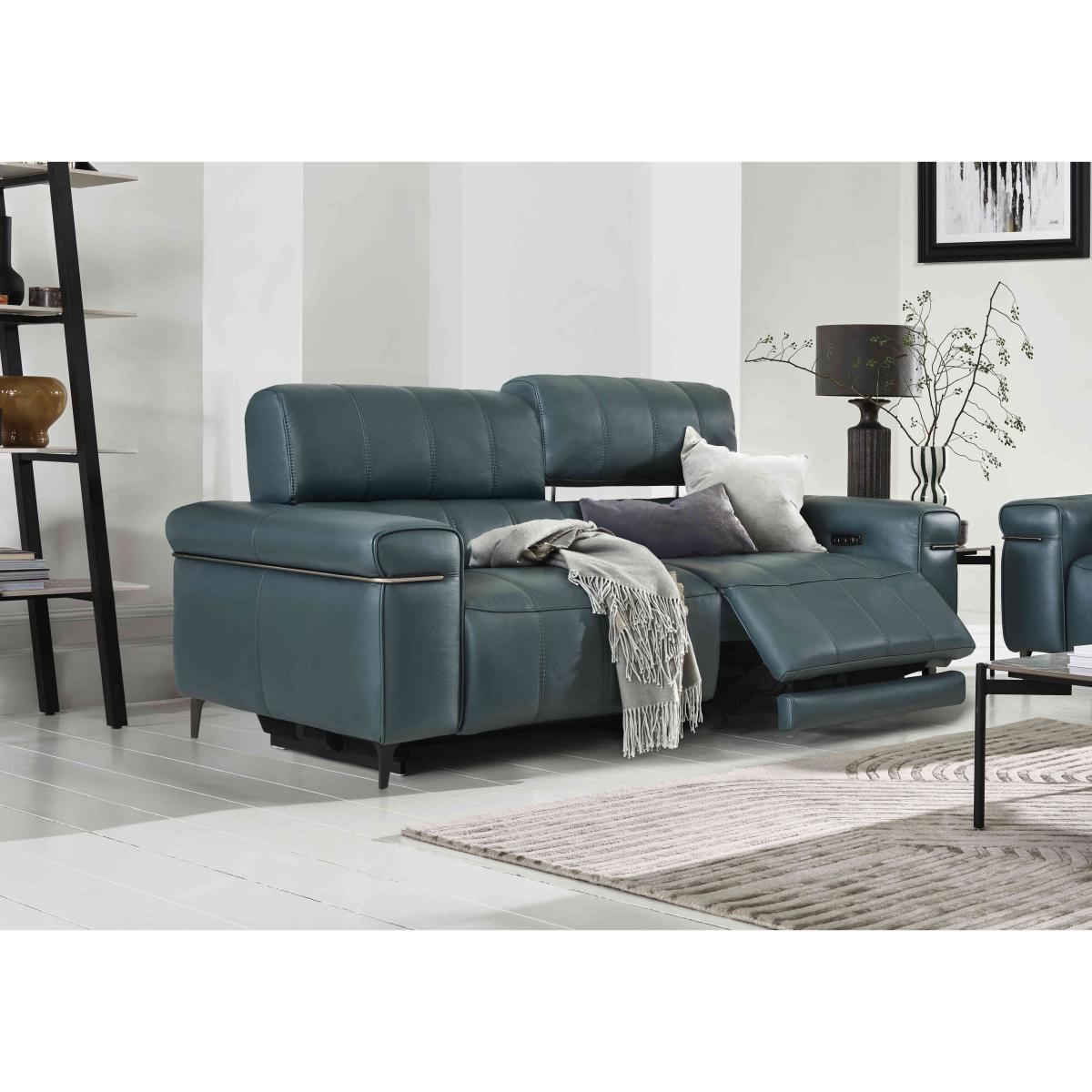 Turn your living room into the most stylish of in-home cinemas with sofas, chairs and footstools from our Homestage range. The collection includes stunning media sofas and armchairs that connect via Bluetooth to your TV or phone and have surround sound speakers hidden in the incredibly comfortable cushioning for the next level in 4. D entertainment. And with power recliners with independently-moving backrests and footrests, perfect-position power headrests, built-in massage units and sprung seats and backs, the comfort is every bit as enthralling. Made in Italy and available in a wide choice of soft fabric and 100% leather upholstery options, the Homestage range is a Furniture Village exclusive. Bold modern style meets incredible comfort in this exclusive Italian-made sofa with power recliners, perfect-position power headrests and so much more. Why you’ll love it Contemporary Italian design ensures you’ll be relaxing in style. Power recliners with independent backrest and footrest motion. Perfect-position headrests mean perfect comfort, every time. Sprung seats and back for superbly balanced support wherever you sit. 100% leather upholstery with linear stitching in a huge choice of on-trend colours. Stiletto-style metal legs with a high-shine nickel-plated finish in black. Matching metal arm trim. Handmade in Italy. A Furniture Village exclusive. This 3-seater leather power recliner sofa is part of our Homestage range. What you need to know Medium comfort level. Seat suspension: no-sag springs. Seat cushioning: foam and inner coil spring. Cushioning is fixed. Back suspension: rubber webbing. Back cushioning: foam and loose fibre. Cushioning is fixed. Arm cushioning: foam and fibre. Please allow time for new recliners to ease. Minor gaps are necessary to ensure ease of recliner motion and may be exaggerated depending on floor type. Leather has unique marks and characteristics with variation in colour and texture. Leather softens with use. Smoothing the tops of leather cushions prevents signs of visual comfort. Please read our upholstery care guide for more advice.