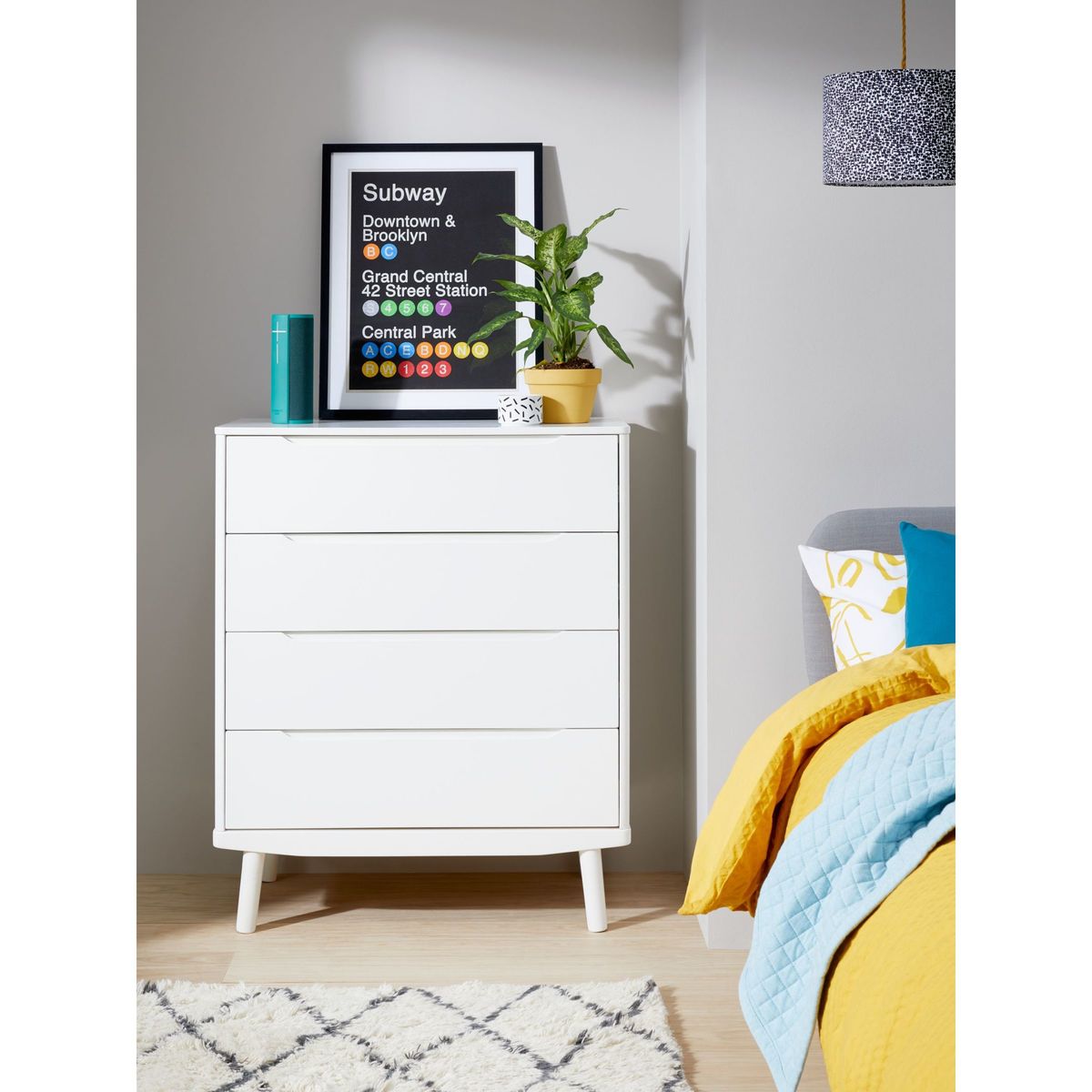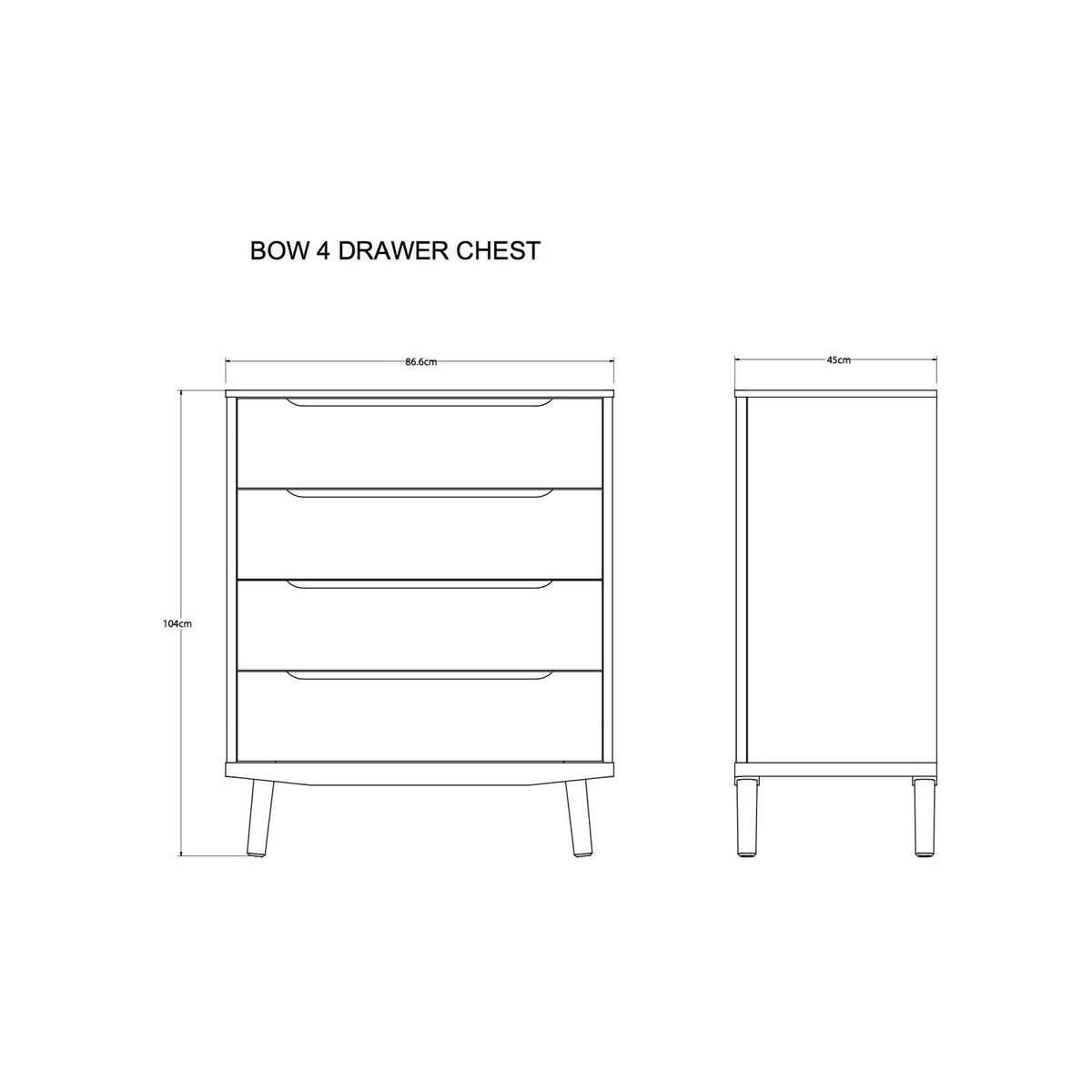 With a clean, modern aesthetic our Bow bedroom furniture range is made from predominantly solid oak and oak veneers for a durable and visually striking finish. You'll enjoy the beautiful natural grain of the wood, as well as enduring style and an elegant profile that will stand the test of time. The Bow chest of drawers offers plenty of storage for clothing and linens, with four spacious drawers opening on smooth metal runners for ease of use. Please note: Not all of our ranges are on display in our furniture departments. Please call your nearest John Lewis to check before you visit.