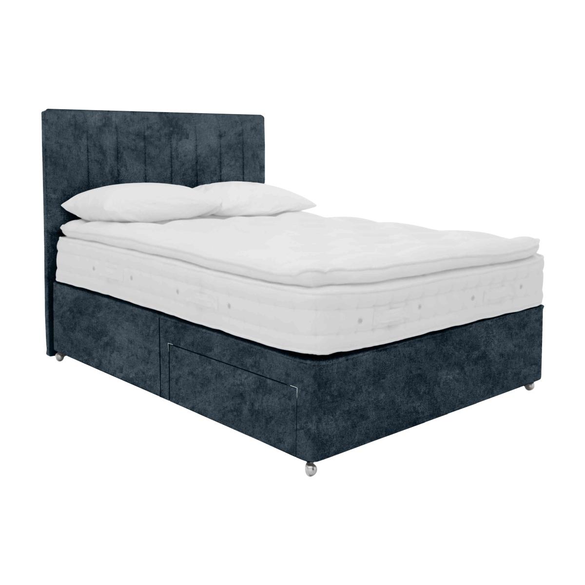 Enjoy luxurious pocket sprung comfort, and a healthier, cooler, fresher night’s sleep with the Hypnos Bespoke Finesse range. The medium comfort, rotatable, pillow top mattresses contain ingenious, innovative 37.5® temperature regulating technology – with a wool-rich comfort layer containing billions of active mineral particles which remove moisture and act as a natural thermostat. Expertly engineered pocket springs and layers of sumptuous fillings including British wool and sustainable cotton add to the all-embracing comfort. The beautifully upholstered divan bases have spacious end-ottoman storage. Exquisitely handcrafted in Britain by the skilled artisans at Hypnos, the Hypnos Bespoke Finesse range comes with a 20 year guarantee.. Stay fresh and cool with 37.5® temperature regulating technology. Medium feel mattress with 1200 ReActivePro™ 7-turn pocket springs. A luxurious pillow top mattress you don’t need to turn, just rotate regularly. Stylish divan base with optional storage drawersBring home the divan set that’s both luxuriously comfortable and wonderfully practical. The 31 cm deep medium-feel mattress in the Hypnos Bespoke Finesse divan set offers sumptuous layers of fillings, including sustainably sourced cotton and British wool, and also incorporates a 37.5® wool rich comfort layer. This innovative layer has billions of active mineral particles that remove moisture and act as a thermostat for a fresh and cooling sleep environment. This mattress also features 1200 ReActivePro™ pocket springs. These expertly engineered pocket springs each have 7 active turns for superb responsiveness. Triple Edge Protection™ promises complete support to the very edge of the bed. And the naturally fire-resistant mattress cover is made of tactile, soft unbleached cotton. Crafted from sturdy FSC®-certified Scandinavian pine, the platform top divan base is upholstered in a choice of plush, fine fabrics and is offered with optional storage drawers. The Hypnos Bespoke collection allows you to pair any mattress with any divan base. Product images are representative. Find out moreDid you know? The Finesse mattress is a pillow top mattress you don’t need to turn it, just rotate it regularly. Please air the mattress for four hours after delivery to freshen and remove any aroma from storage. It may take time for your mattress to attain its full size once the springs have settled to the correct position. This is due to the mattress being upright during transit. Settlement of fillings and indentations caused by body weight compressing the fillings are natural and not considered defects. This can be minimised by regular rotating..