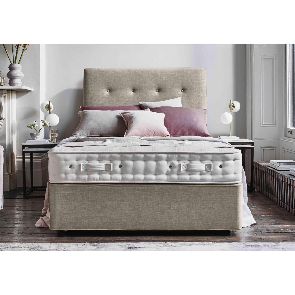 Luxury comfort and firm support come together beautifully in the Hypnos Luxury Firm collection. Alongside superior craftsmanship and exceptional quality, this collection gives firm-mattress seekers something else – outstanding choice. The collection comprises four ranges – Hypnos Luxury Firm 1, Hypnos Luxury Firm 2, Hypnos Luxury Firm 3 and Hypnos Luxury Firm 4 – each of which offers a different combination of firm or extra-firm support and sumptuous comfort with layers of ReActive™ 6-turn pocket springs, cooling British-certified wool, and all-natural fillings. Shop the complete Luxury Firm collection for mattresses and divan sets with ottoman storage, hideaway storage and optional drawers. Handcrafted in the UK exclusively for Furniture Village. Enjoy firm-feel mattress comfort, a cooler night’s sleep and a more stylish bedroom with this Hypnos divan set. Only at Furniture Village. Why you'll love it This beautiful storage divan set includes a wonderfully firm mattress. A unique combination of luxurious comfort and firm support. 1,000 ReActive™ 6-turn pocket springs in king size respond to your shape and weight. Layers of temperature-regulating wool and comfort fibres. Chemical-free linen and cotton sleep surface. Traditionally crafted with tufting and finished by hand. Set on a supportive platform top base with optional storage drawers. Wide choice of upholstery fabrics. Handmade in the UK by Hypnos exclusively for Furniture Village. This divan set is part of the Hypnos Luxury Firm 1 range. What you need to know Mattress type: Pocket spring. Depth: 25 cm. Firmness: Firm. Springs: 1,000 ReActive™ 6-turn pocket springs in king size. Pillow top: No. Fillings: British certified wool, e. Olus™ recycled comfort fibres. Cover: Cotton, flax. Requires turning: No. Base type: Platform top with optional storage drawers. Not all drawer options are available in all sizes. Sizes: Single, small double, double, king, super king. Mattress care:Air for 4 hours before using to remove any odour. Allow at least 4 hours for springs to settle and for mattress to attain its full size. Indentations caused by settlement of fillings or body weight are normal and are not considered defects. If used on a slatted bed frame, the space between slats must be no wider than 7.5 cm. Spaces wider than this may cause excess dipping of the mattress and invalidate the guarantee. Always use a mattress protector. Rotate regularly. Divan base care: Clean upholstery weekly using a soft brush or vacuum with the curtain attachment. Professional cleaning advised for oil- and grease-based stains. Some fabrics can show wear on areas of more use or in direct sunlight.