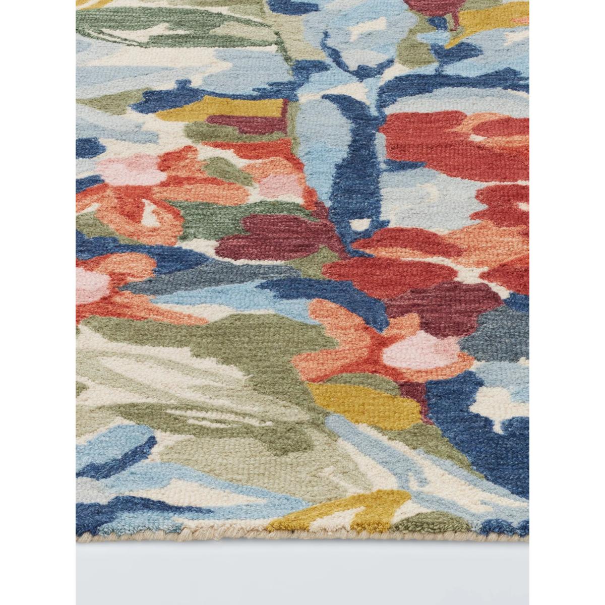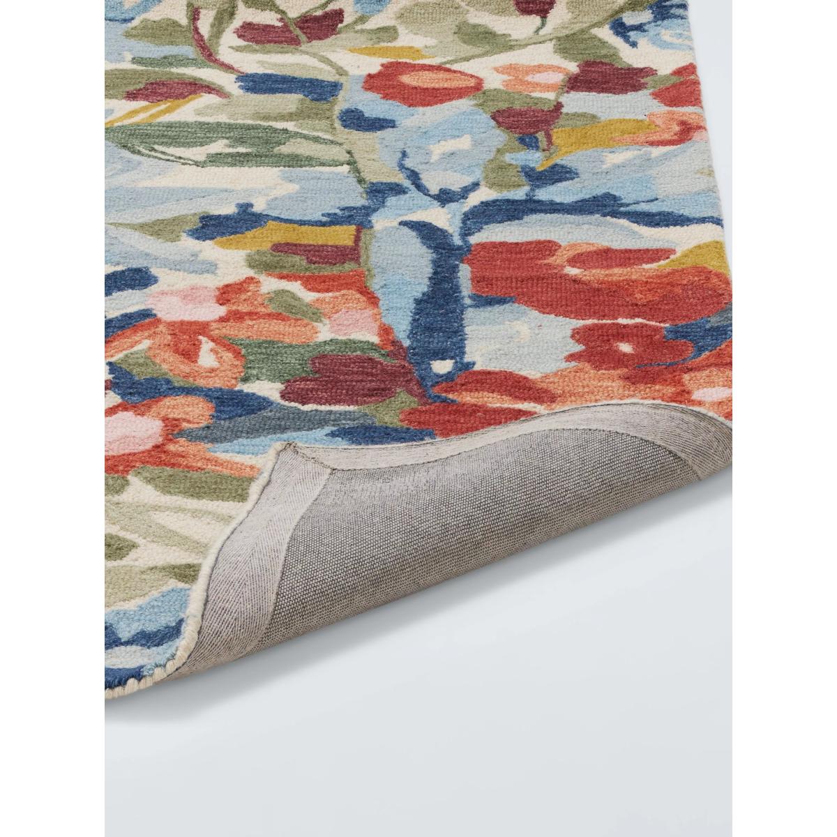 Captivating with an intricate and colourful floral design, this rug is made from a wool-rich blend for a beautifully soft feel underfoot. This rug is tufted by hand, meaning that material is injected into the back of the rug with a tufting gun, holding the material firmly in place. The benefits of a wool rug Warm and durable, wool feels beautifully soft underfoot and is long-lasting Naturally flame-retardant and odour resistant Water repellent so easier to clean Naturally biodegradable, wool is part of the circular economy and contains no micro plastics About your new rug We recommend John Lewis & Partners Rug Hold Underlay. It prevents your rug from moving underfoot and protects against colour transfer to the floor As this rug is made using natural fibres, shedding is to be expected. This will reduce over time, and should not have an impact on the lifespan or performance of your rug. When you first get your rug, please use the brush attachment on your vacuum cleaner whilst the shedding dies down. After that, when vacuuming your rug, use suction only. Rotating brushes may damage the fibres. When vacuuming your rug, use suction only. Rotating brushes may damage the fibres Blot any spills with a clean, dry cloth. Do not rub or use harsh detergents. Attend to spillages immediately and blot with a clean, dry cloth to prevent staining. Dilute a small amount of appropriate carpet shampoo in water. Dampen a colourfast cloth in the diluted shampoo solution and dab the rug, lightly agitating, moving in the direction of the pile. Treat the whole rug and not just the affected area. To restore the appearance of the affected area, use a soft bristled brush to gently comb in the direction of the pile. Allow the rug to thoroughly dry.