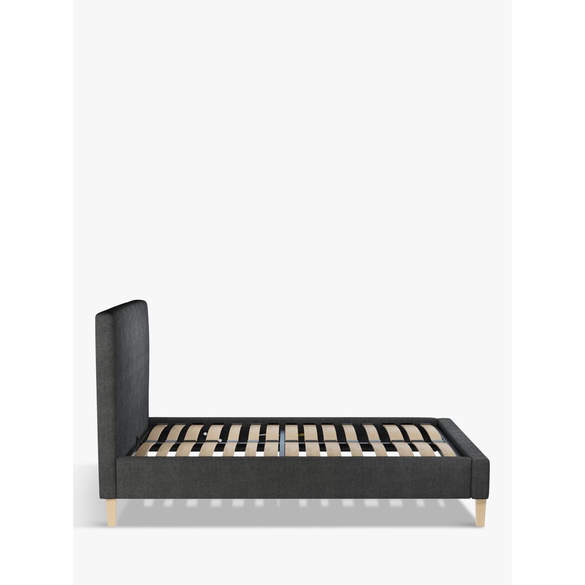We've kept the design of our Emily bed frame simple and clean-lined so it's a practical choice for modern bedrooms. Easy to assemble and made from high-quality timbers, its versatile shape incorporates a large and well-padded headboard and we've added sprung slats in the base to provide a more supportive foundation for your mattress. Built with Smart Slats This bed frame is designed with wider slats at the shoulders, lumbar and feet. They provide maximum support for you and your mattress so that you experience perfect spinal alignment while you sleep. The standard slat caps are black so we have added grey slat caps to ensure that you know where to place the wider slats. Choose from one of our fabrics: Our Band A fabric, Topaz is woven to create a linen-effect feel, and is available in a versatile palette of colours Our Band A fabric, Saga is woven with man-made fibres, making it exceptionally durable and versatile Our Band B fabric, Erin has a velvet-style, chenille feel. It's woven with man-made fibres to create a beautifully soft yarn and can appear two-tone in different lights Our Band B fabric, Opulence is soft and luxurious like velvet and available in a rich colour palette Our Band B fabric, Mole is a soft and cosy woven wool-blend. Piling and bobbling may occur naturally over time Our Band B fabric, Relaxed Linen is durable, resilient and versatile, woven from man-made and natural fibres Our Band C fabric, Marylamb is woven from both man-made and natural fibres, creating a tactile and soft-touch feel. Our Band C fabric, Aquaclean Harriet is made from a short, dense pile of velvet that has a soft, brushed finish. An Aquaclean treatment has been applied to this resilient fabric which means you can banish the majority of household stains with water. The treatment covers every fibre with an invisible coating that doesn't need to be retreated or re-coated. It will naturally develop lines, scuffs and shading over time. Want to see it first? You may want to see and get a feel for the furniture before ordering. Pop into one of our shops to see the full range of colours and fabrics on offer. We'll be able to tell you where the range you'd like to view is on display.