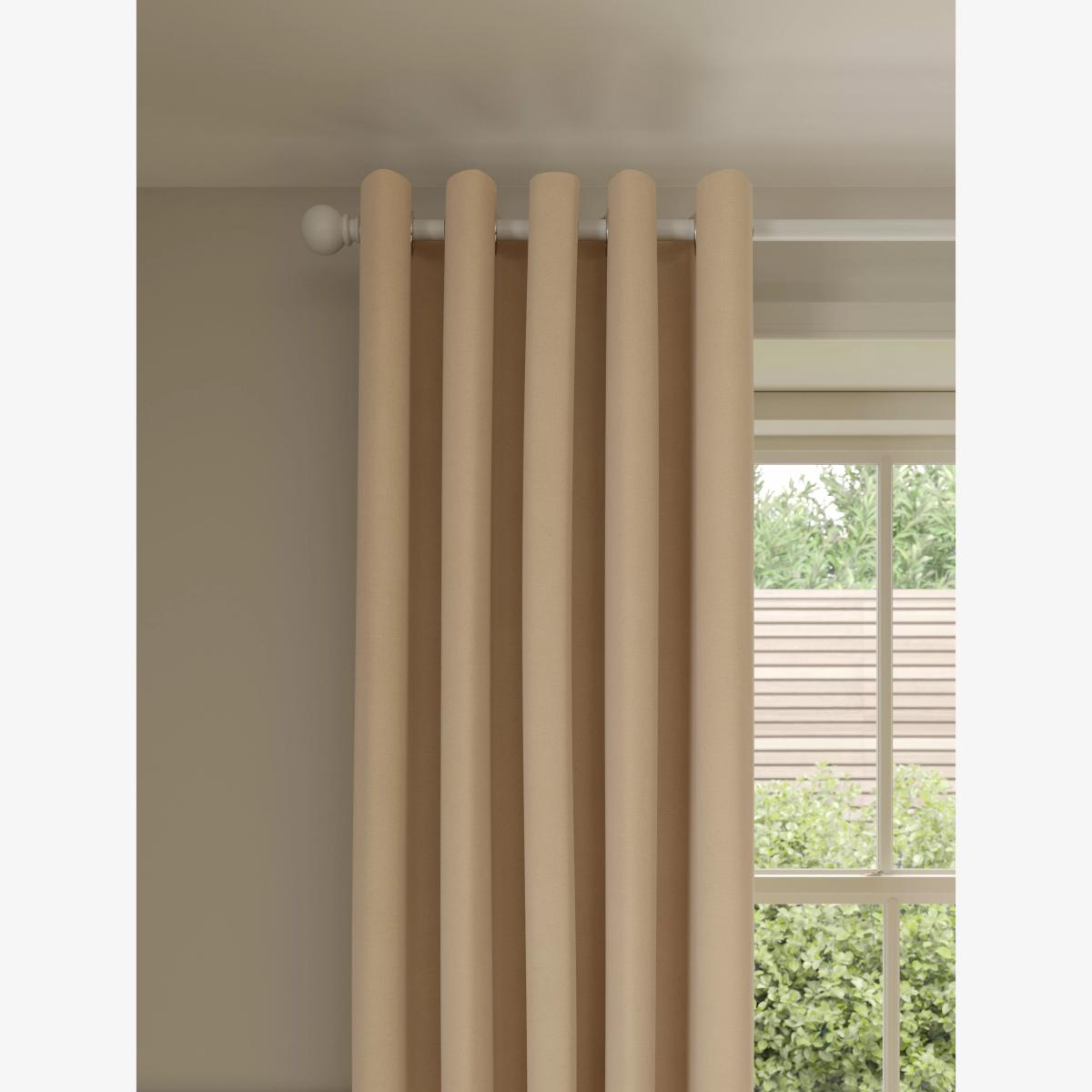 These curtains are fuss-free and plain, making them the ideal starting point for layering up with other patterns and textures in your home. They're made from pure cotton and are available in a variety of colours. The eyelet heading gives them a more contemporary look with large, even folds and the lining adds the perfect finish, improving the drape of the curtains. The width stated indicates the size of one curtain panel when laid completely flat. This pack contains two panels and the track/pole length we've recommended allows for the two panels to be gathered when the curtains are drawn. For a fuller look, increase the curtain width. One pair of 117cm width curtains will fit a curtain track/pole size 117-167cm One pair of 167cm width curtains will fit a curtain track/pole size 133-167cm One pair of 228cm width curtains will fit a curtain track/pole size 182-228cm Worth knowing... We package our curtains in recycled materials to keep them protected whilst they make their way to you. When they arrive they may be creased. We recommend you follow the ironing instructions on the back of the packaging prior to hanging your curtains. Be aware that each style of curtain has different ironing instructions, including heat limitations according to the fabric, so do make sure you follow the guidance provided to get the best results. Do you need a curtain pole and accessories? Shop them here.