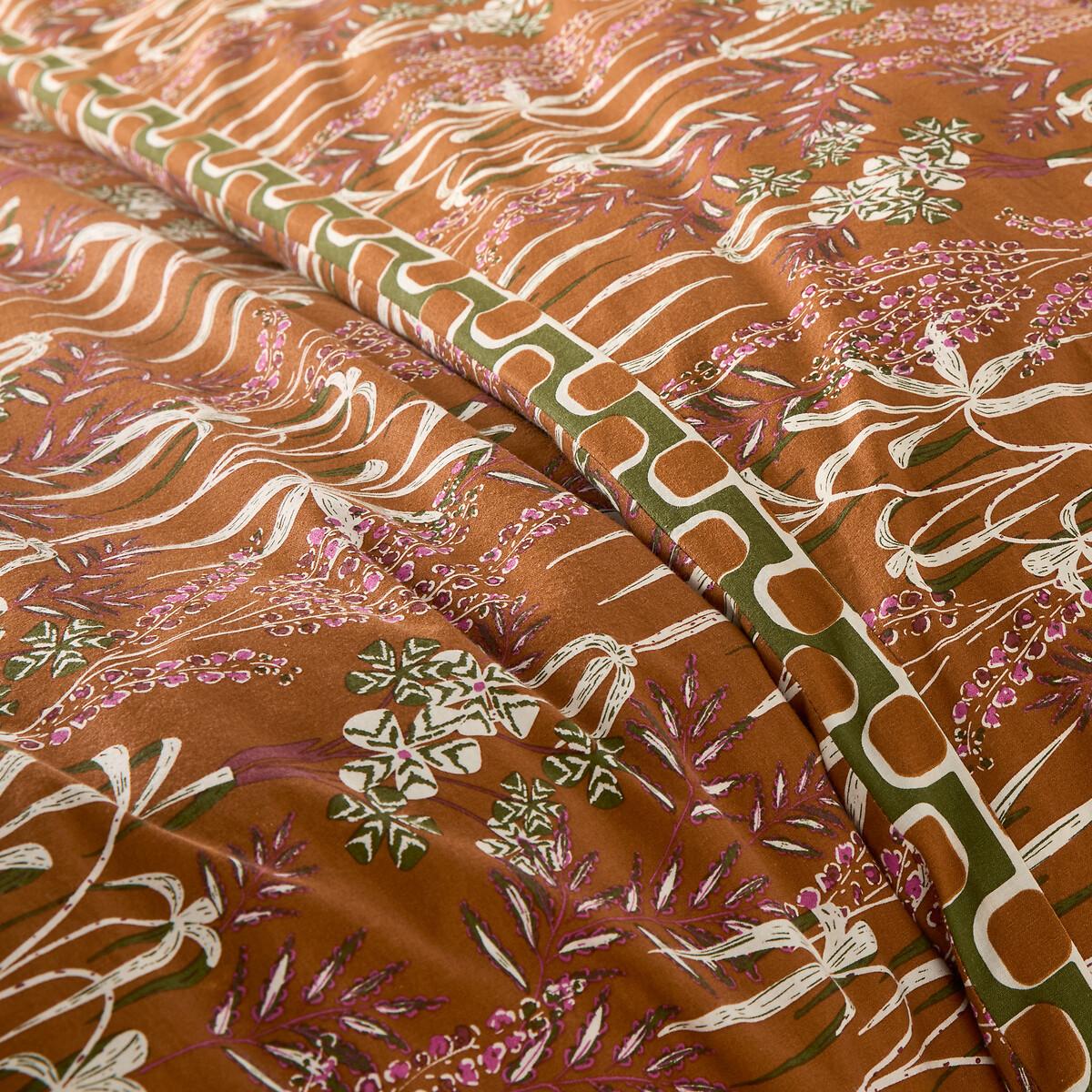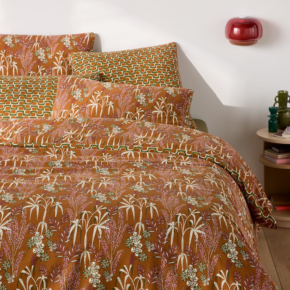 The Juliette duvet cover features 70s-inspired botanical and graphic prints in a lightly crinkled, washed cotton, with a pretty contrasting ribbon finish. An exclusive design by La Redoute Interiors. The washed cotton has been delicately bleached during its manufacture. Soft, supple and comfortable, it softens over time. Its slightly wrinkled appearance is incredibly on-trend, and it does not require ironing. Product Details • 100% cotton • Washed cotton • 144 thread count • Botanical print front and back • Contrasting ribbon finish with retro print • Straight buttoned hem. As the seasons change, add your own personal touch by mixing the Juliette range with our range of Scenario plain bed linen. Care Advice • Machine washable at 60°C • By washing your laundry at 40°C instead of 60°C, you limit energy consumption. Dimensions • 140 x 200cm: Single • 200 x 200cm: Double • 240 x 220cm: King • 260 x 240cm: King • OEKO-TEX® Standard 100. Standard 100 certification by OEKO-TEX® tests textile products for harmful substances via an independent, international label.