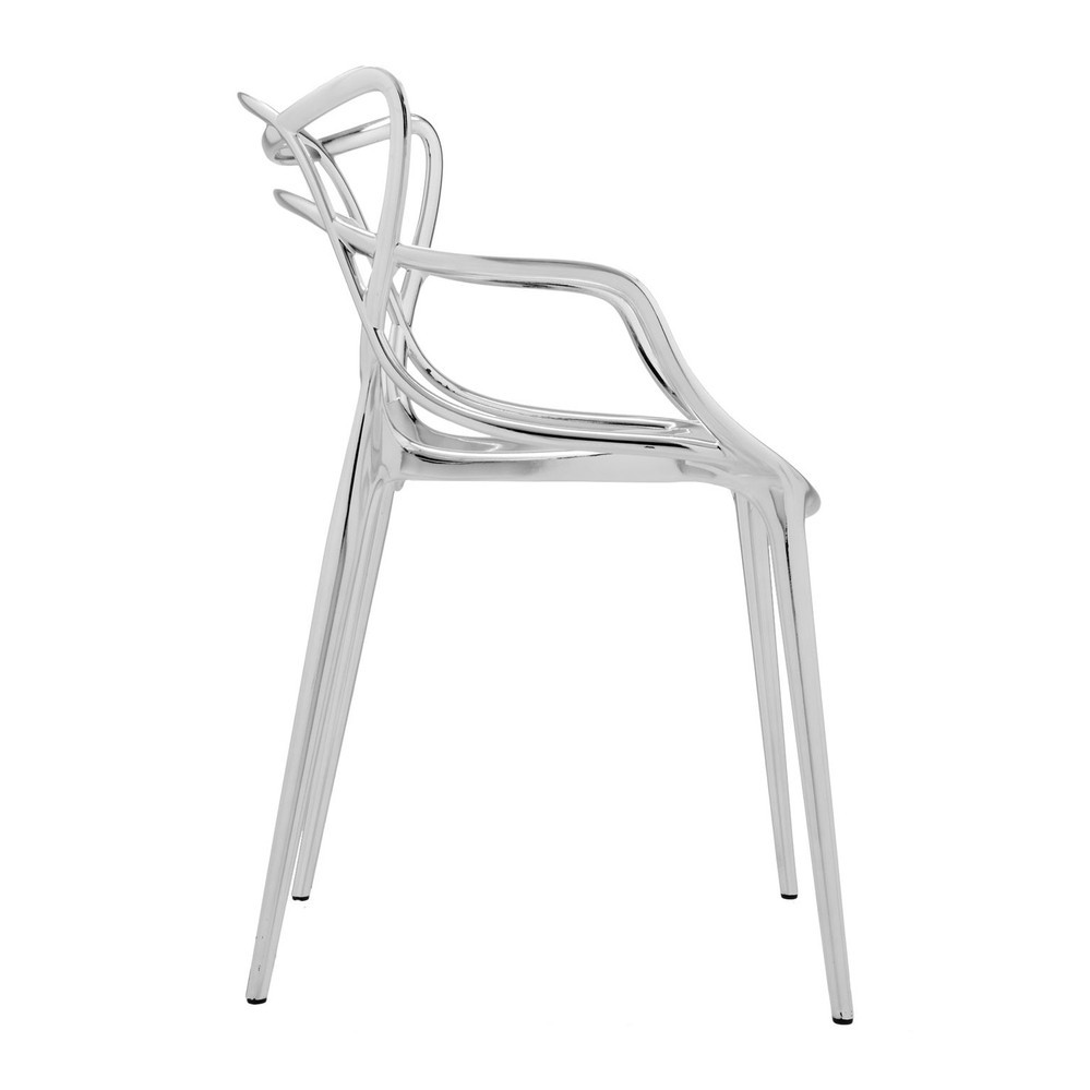 Add award winning design to your home with the Masters Chair from Kartell. Designed by Philippe Starck with Eugeni Quitllet this chair is a striking tribute to three iconic chairs, the 'Series 7' by Arne Jacobsen, the 'Tulip Armchair' by Eero Saarinen and the 'Eiffel Chair' by Charles Eames. Each one is evident in the cleverly reinvented design, now with a more contemporary feel it is both roomy and comfortable with a special finishing which gives it a velvet like touch. Suitable for outdoor use and available in several colours, this practical yet stylish chair design is also stackable ideal for simple storage.