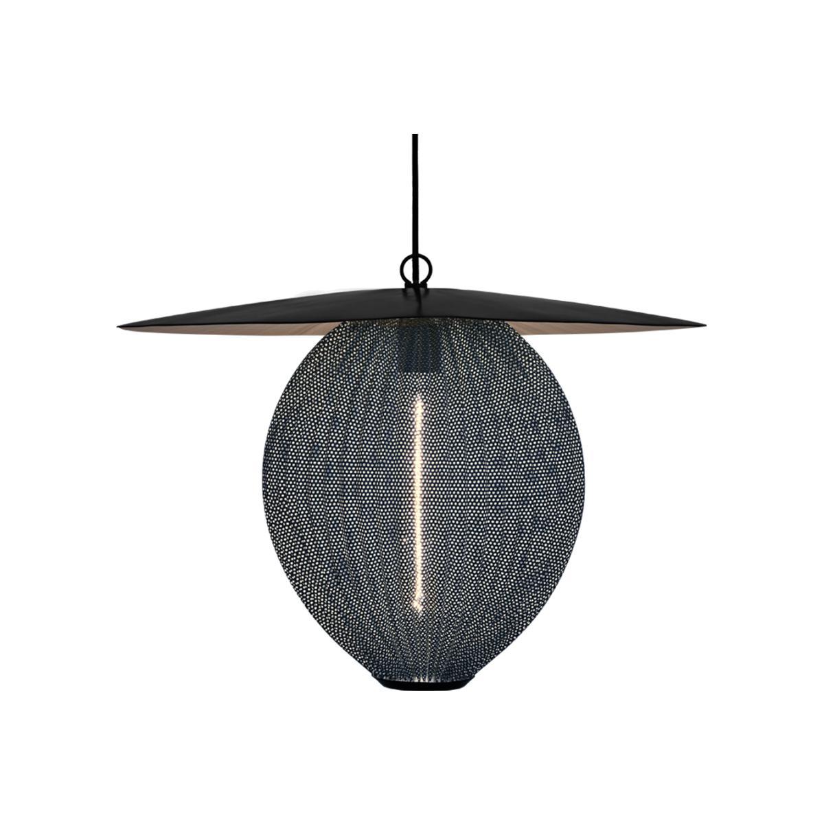 A sublime lighting statement, Mathieu Matégot's aptly named Satellite Pendant Light is as captivating as it was at its premiere, 70 years ago. Fashioned from a perforated metal sheet, the material is intricately bent like a globe and elegantly topped with a metal 'hat. 'Mathieu Matégot was the first known person to combine metal tubing with perforated sheet metal; a pairing that particularly characterises his work. The organic and light forms in his work create a sense of enduring modernity. Requires: 1x max. 10W E27 LED bulb (included).