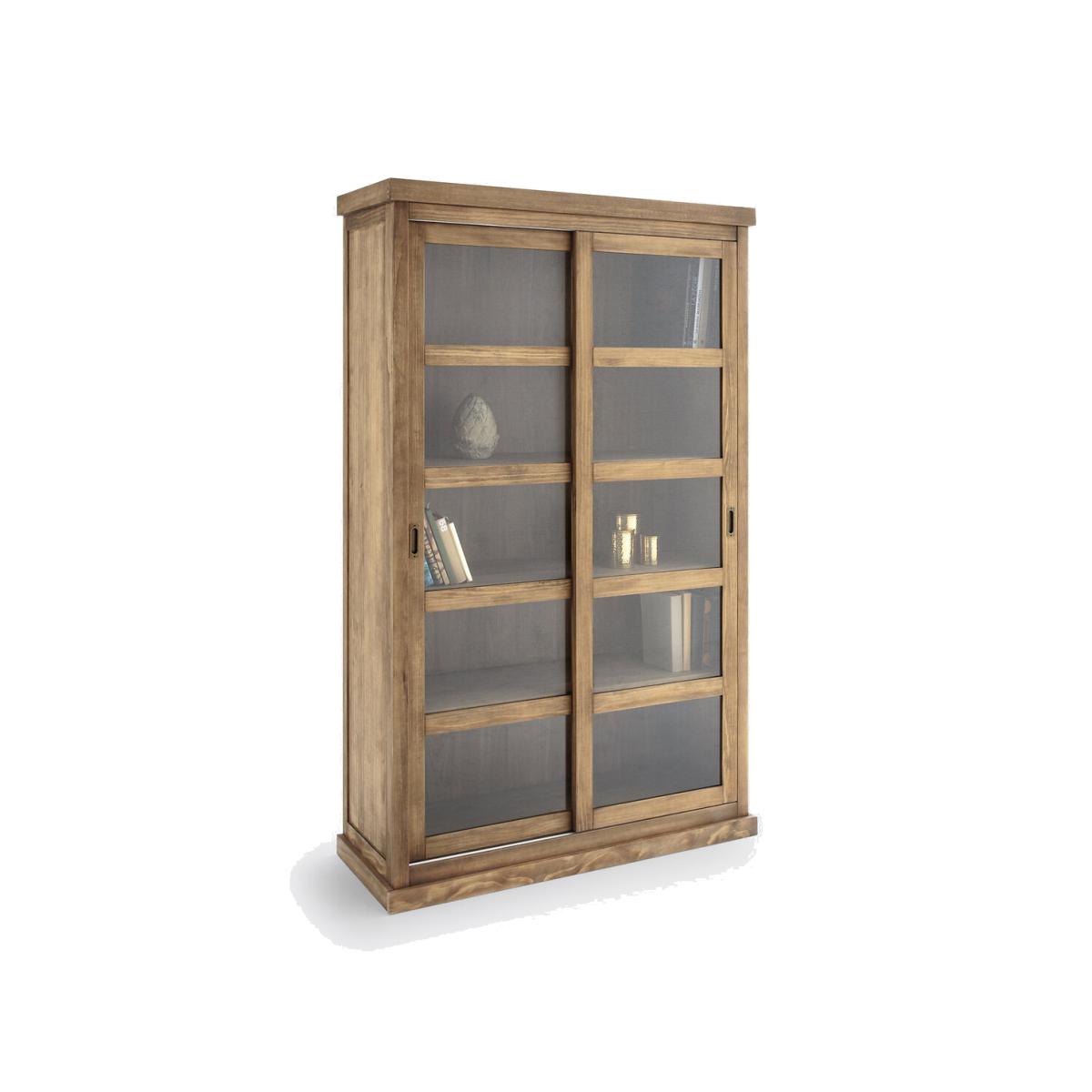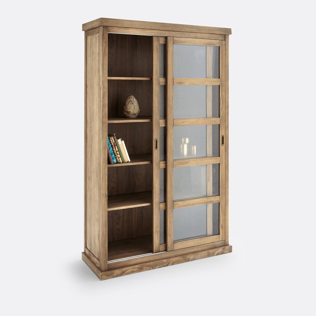 Inspired by the furniture of yesteryear, the Lunja range offers furniture with perfect proportions. Their elegant and authentic design will bring character to each of your rooms. This display bookcase with sliding doors is ideal for storing and displaying books, objects or crockery. Product Details • 2 versions : teak-stained solid pine, with a waxed finish or MDF with oatmeal-coloured epoxy painted finish • Tempered glass doors • Aged iron handles • MDF wood decor back • 2 sliding doors to save space • 4 fixed shelves, 5 compartments • Simple cornice 6 cm high • People required for assembly: 2Dimensions. Overall • Width: 120cm • Height: 190cm • Depth: 45cm • Weight: 76kg. Usable space • Compartments : L107.3 x H32.5/30.5/36.5 x D37cm • This product requires assembly. • WOOD FROM SUSTAINABLY MANAGED FORESTS. FSC® certified wood comes from forests that are environmentally, socially and economically well managed. Dimensions and weight of parcel2 parcels • L130 x H19 x D53cm. 35kg • L194 x H19 x D53cm. 41kg