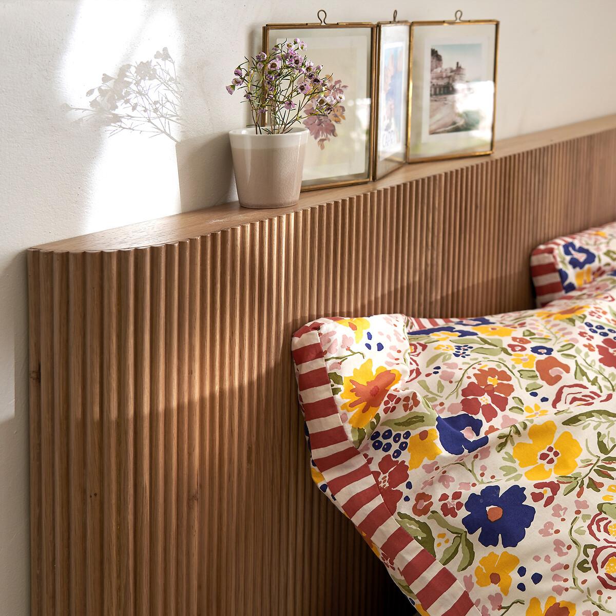 Juxtaposed half-round slats in solid oak create graphic lines and bohemian spirit: inspired by artisanal cabinetmaking, the Mattan headboard personalises your decor and gives character to your bedroom. Thanks to its depth, the top can also be used as a shelf to display frames, small plants. A La Redoute Interiors creation. Product Details • Half-round solid oak slats • Oak veneer MDF back • FSC® certified wood • Nitrocellulose varnish finish • Wall fixing recommended (screws and dowels not supplied)Dimensions. Bed size 160cm (King) • Width: 171cm • Height: 100cm • Depth: 8.7cm • Weight: 30.1kg. Bed size 180cm (Super King) • Width: 191cm • Height: 100cm • Depth: 8.7cm • Weight: 34kgDelivery:. Sold pre-assembled. Available for home delivery. • WOOD FROM SUSTAINABLY MANAGED FORESTS. FSC® certified wood comes from forests that are environmentally, socially and economically well managed. Dimensions and weight of parcel1 parcel King Size • L179 x H15 x D108cm. 36kg Super King Size • L199 x H15 x D108.5cm. 39kg