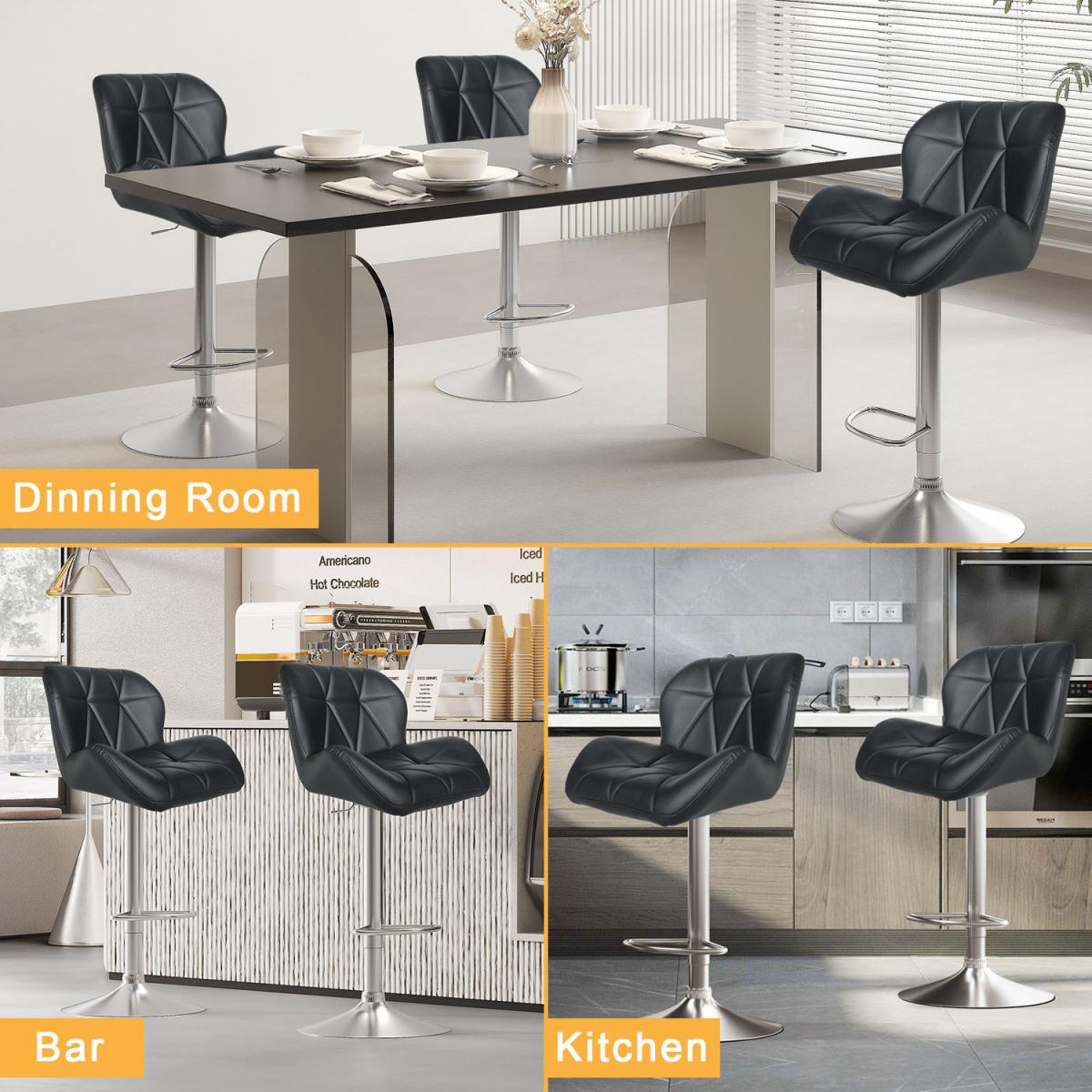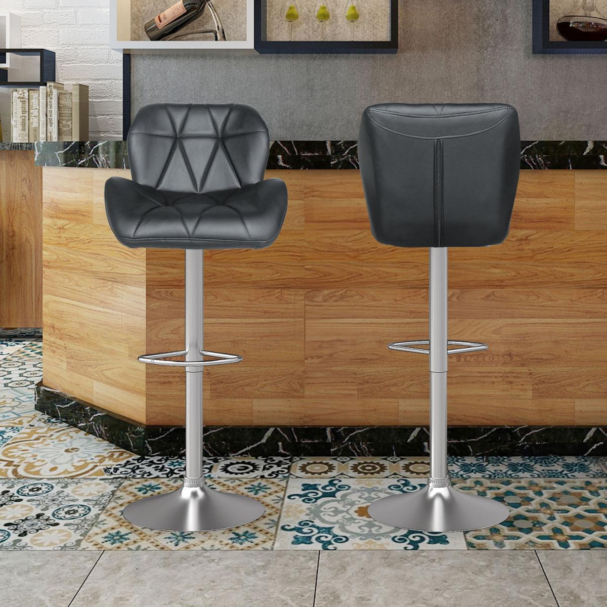 The bar stools are made of a metal frame,padded with foam, and covered with PU leather, The barstools are ergonomically designed, so you can adjust your sitting position at will. The metal frame of our kitchen bar stools is very robust and durable, it is capable of handling 330 pounds. The bar stool is equipped with a sturdy circular chrome steel base, which has a rubber ring to prevent your floor from scratching, and rubber ring of our kitchen bar stools also prevents the harsh sound when moving the bar chairs. The bar stool is suitable for many occasions,whether sidled up to the kitchen island or grouped around the home bar, these bar stools always make the perfect perch.