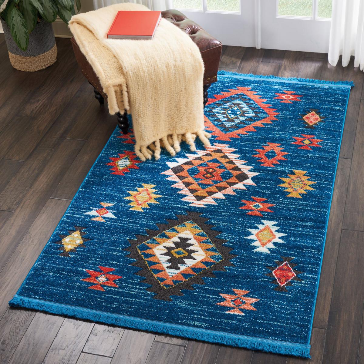 Inspired by Native American textiles, bring home a lively tribal theme with the exciting Navajo collection of rugs. Its traditional fringed trim and bright transitional hues are imbued with the powerful centered medallions in a field of smaller geometric motifs sat on a pale white base. On receiving your rug, please unroll and leave in a warm room for 24 hours before using to reduce wrinkles and curling from packaging. Can be carefully vacuumed using a floor or brush attachment. Occasionally rotate the rug to equalise wear. Clean spills immediately by blotting with a clean, dry white cloth and do not rub. Do not pull any loose threads, please cut carefully with scissors to remove. Avoid prolonged exposure to direct sunlight. Please note, unfortunately we cannot deliver this item to the Channel Islands.