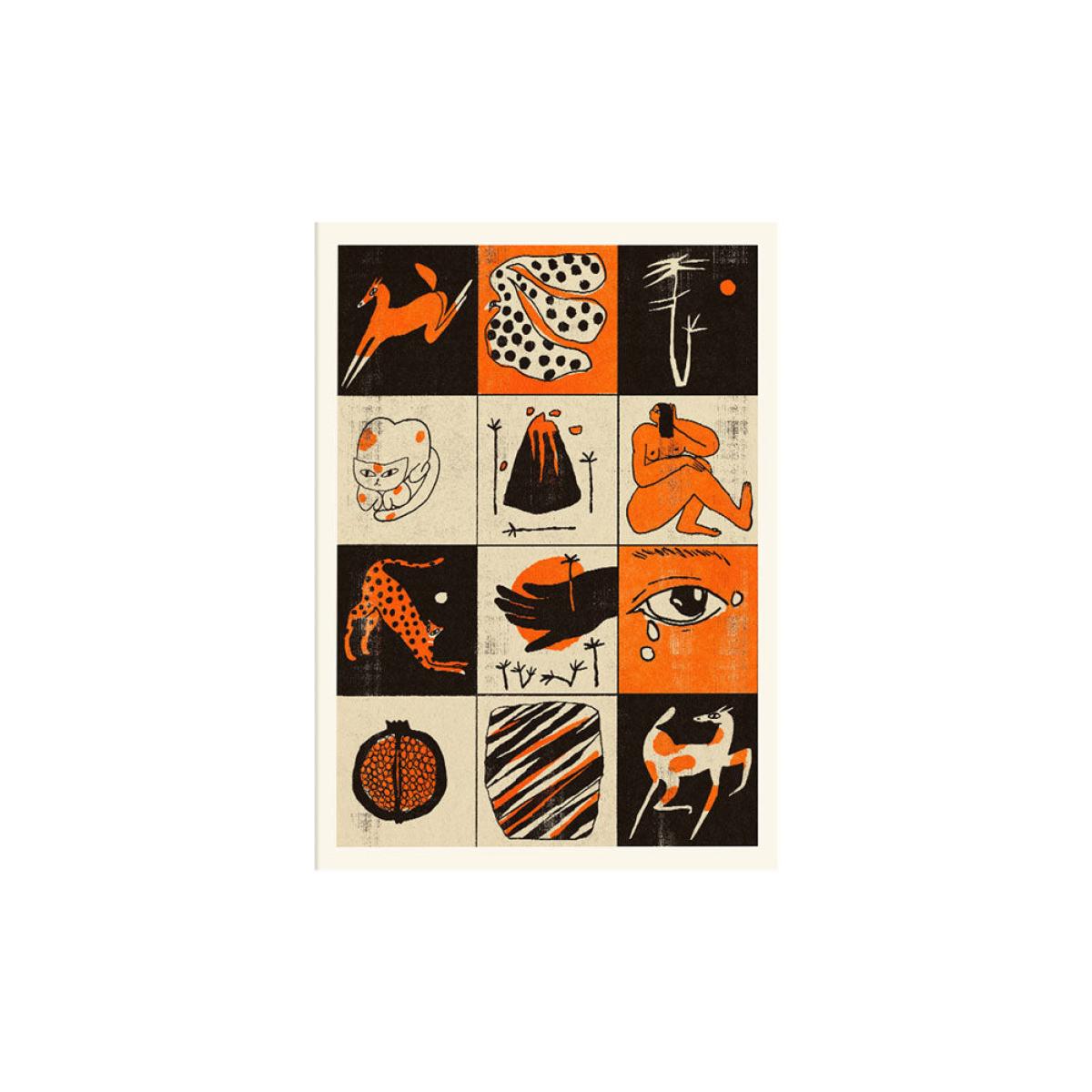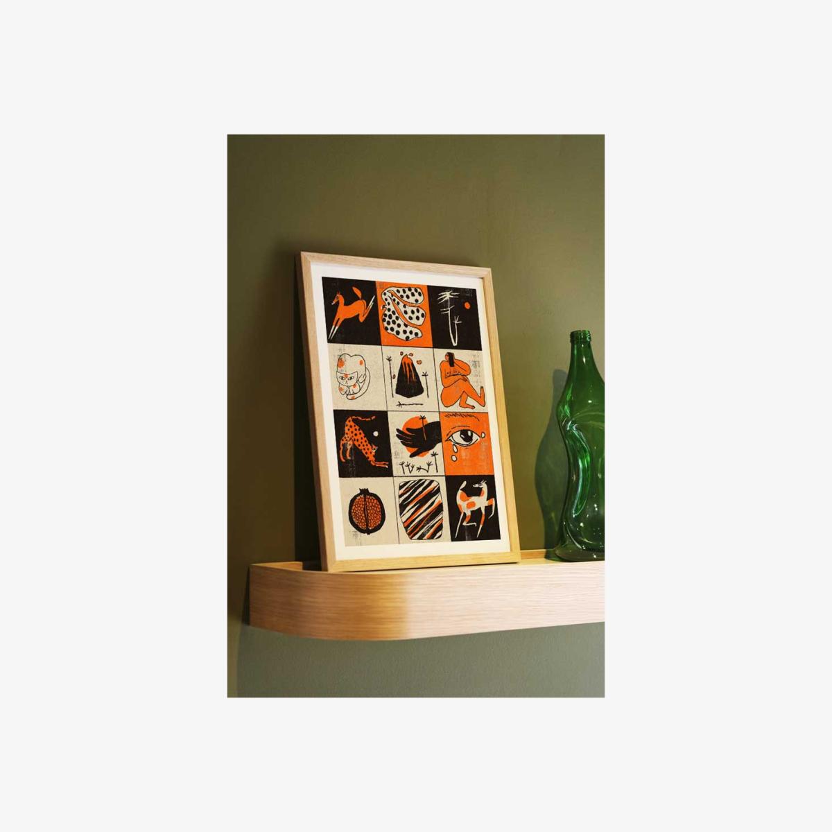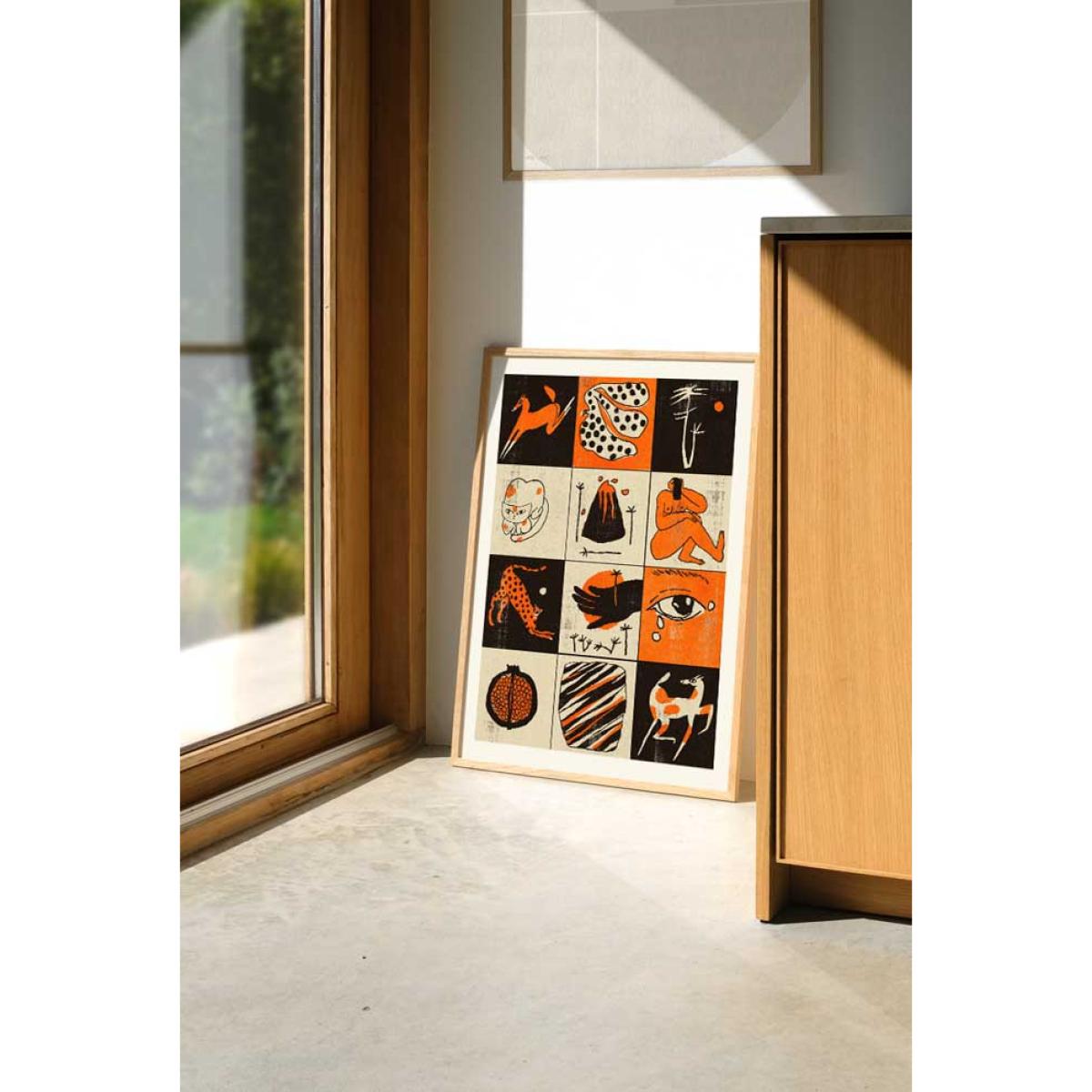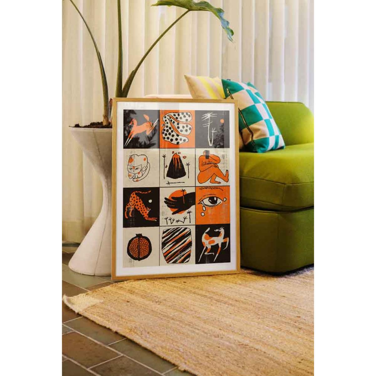 <!--td --> The Orange Graphic Moods Art Print is a fabulous new addition to our art print shop, adding a pop of colour to any wall in your home. A bold grid of 16 graphics, the abstract illustrations range from a horse to a cat, a woman, a pomegranate and an eye, all in a vibrant colour palette of orange, natural and black. We're always looking to add new, eclectic and affordable art to our collection of wall art prints, and this larger design is the perfect piece to make a statement, whether styled solo or introduced to a monochrome gallery wall.- Large monochrome art print in a black, orange and natural palette - Measures: W50cm x H70cm - Digitally printed on 250gr luxurious museum-quality paper- Frame not included