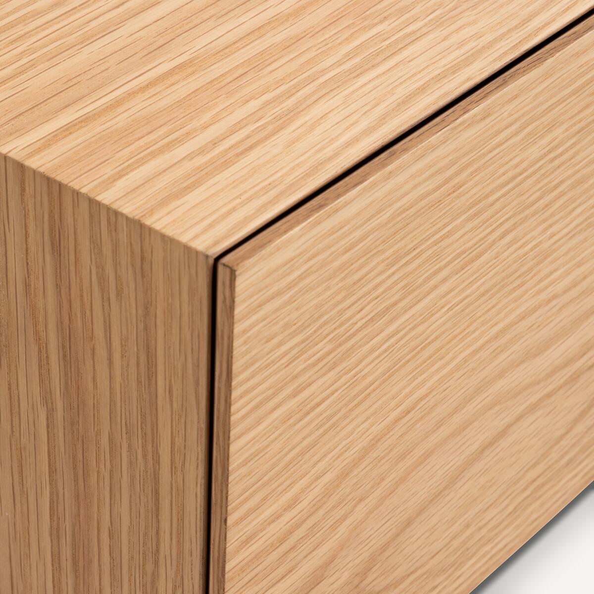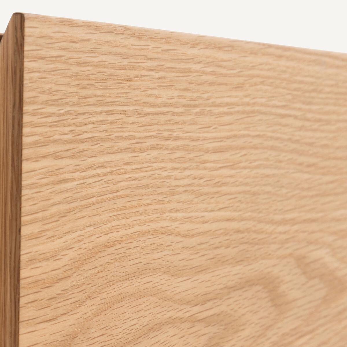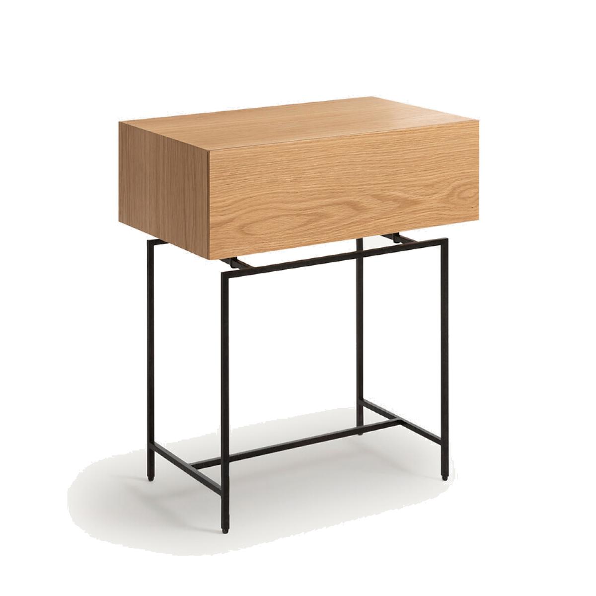 Sleek and functional, this bedside table features a practical box top with a lightweight metal base. Product Details • Unit and drawer in oak veneered MDF, FSC® certified, with polyurethane finish • Steel base with used effect epoxy finishDimensions. Overall • Width: 50cm • Height: 61cm • Depth: 32cm. Usable space • Drawer height: 16cm • Base height: 43cmDelivery:. Assembly required. Available for home delivery. Note! Please check that all access points are large enough to accommodate your delivery (doors, stairs, lifts). • WOOD FROM MORE SUSTAINABLY MANAGED FORESTS AND CONTROLLED SOURCES. FSC® Mix wood contains at least 70% FSC® certified and/or recycled wood, the remainder being FSC® controlled wood. Dimensions and weight of parcel • L58 x H52 x D35cm • 13.5kg