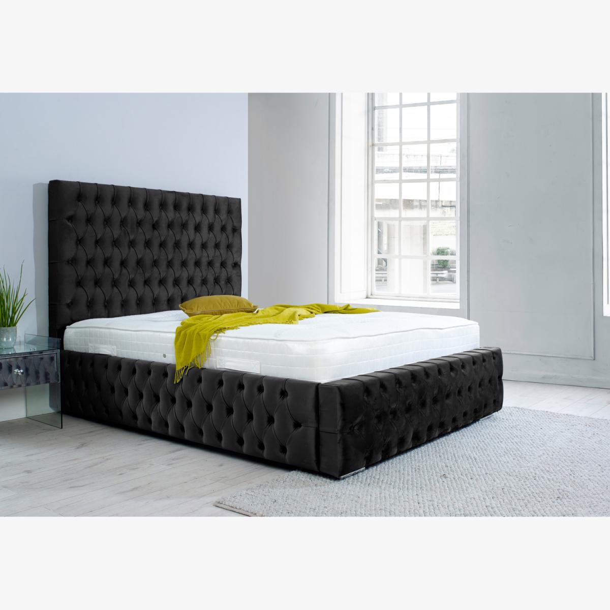 Expertly crafted from the best of timber and exquisitely constructed to make a strong statement in your bedroom. The Orella bed is classy and stylish in all its glory. Featuring a stylish design and an elegant look, this piece will be a perfect addition to your bedroom. Do you want to transform your bedroom into a sophisticated space and make it your secret haven Choose the Orella Bed and turn your plain-looking bedroom into a magnificent chamber. The detailing and finishing of the Orella bed are handcrafted with tufting looking perfect and crystal clear. Depending on your preference, you can choose crystal or button for the tufting and you also have the freedom to customize your bed with the perfect fabric color. The plush velvet fabric comes in different colors. The Orella bed does not come with a mattress and accessories as shown in the image.