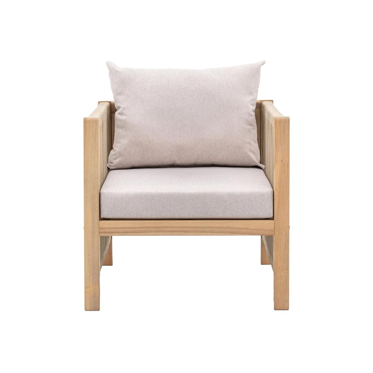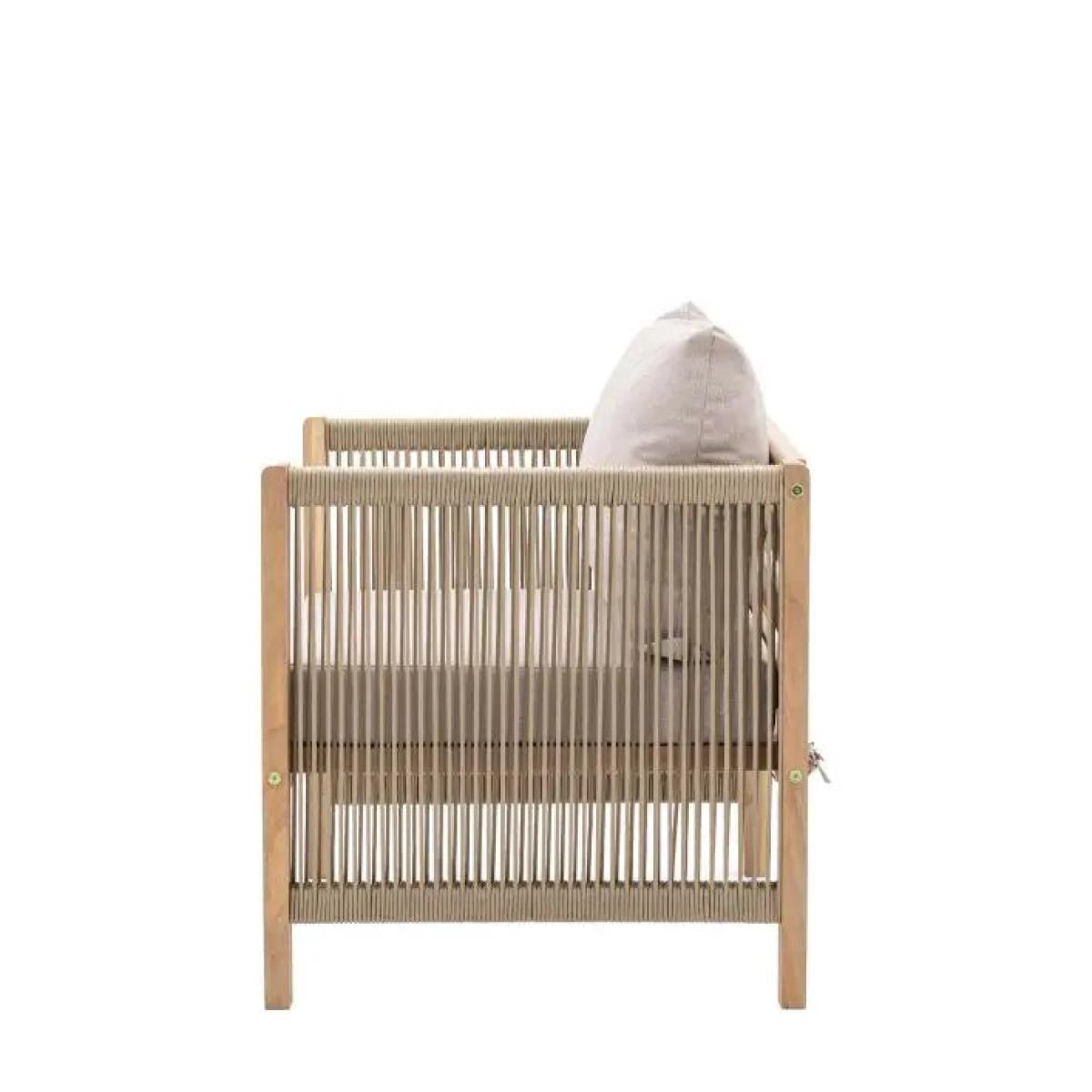 This elegant outdoor armchair, available in a convenient 2-pack, is crafted from durable Acacia wood and features a stunning rope-woven detail along the arms for added texture and style. This elegant outdoor armchair, available in a convenient 2-pack, is crafted from durable Acacia wood and features a stunning rope-woven detail along the arms for added texture and style.