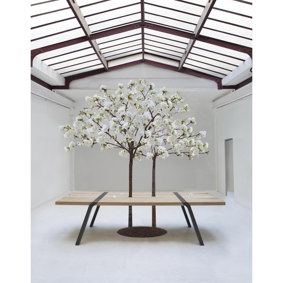 The components of Pi collection furniture include metal legs and a wooden surface. These pieces get assembled easily without the usage of screws. The angled legs allow for the tables or benches top to slide easily through them. Pi is a French design, constructed and manufactured table. The final step is to secure the angle of the legs by their rotation, this last step secures the pressure on the connection of thewood top making Pi furniture incredibly secure and stable. The best thing of all about Pi is that its table top is totally eco-friendly as it can be recycled at any given point in time! Thus allowing for a flexible interior design suggestion as with the change of your furniture top you are open to a wide variety of designs for your dinning area! You can use natural wood, an old antique door, floor even or boards. The possibilities for a creative table top are endless. The design of this collection has made it easily transferable and can be disassembled easily if you need to move to a new house.