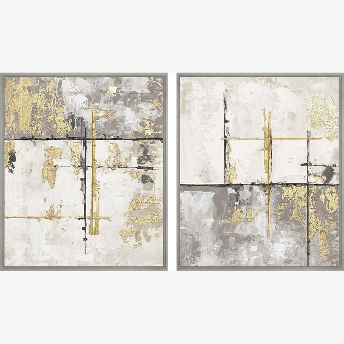 Elevate your interior decor with the Quintessa Art Set of 2 Colleir Hand Painting, a stunning duo of hand-painted artworks that exude sophistication and artistic flair. These meticulously crafted pieces capture the artist's vision with exquisite attention to detail, offering a harmonious blend of colors and textures that will captivate your senses. Beyond mere decoration, the Colleir Hand Paintings serve as thought-provoking additions to your living space, encouraging you to delve into the world of abstract beauty. They spark engaging conversations and infuse your surroundings with an air of undeniable sophistication. These hand-painted artworks are a testament to the power of visual storytelling, making them essential choices for art enthusiasts and anyone looking to add a touch of creativity and elegance to their surroundings.