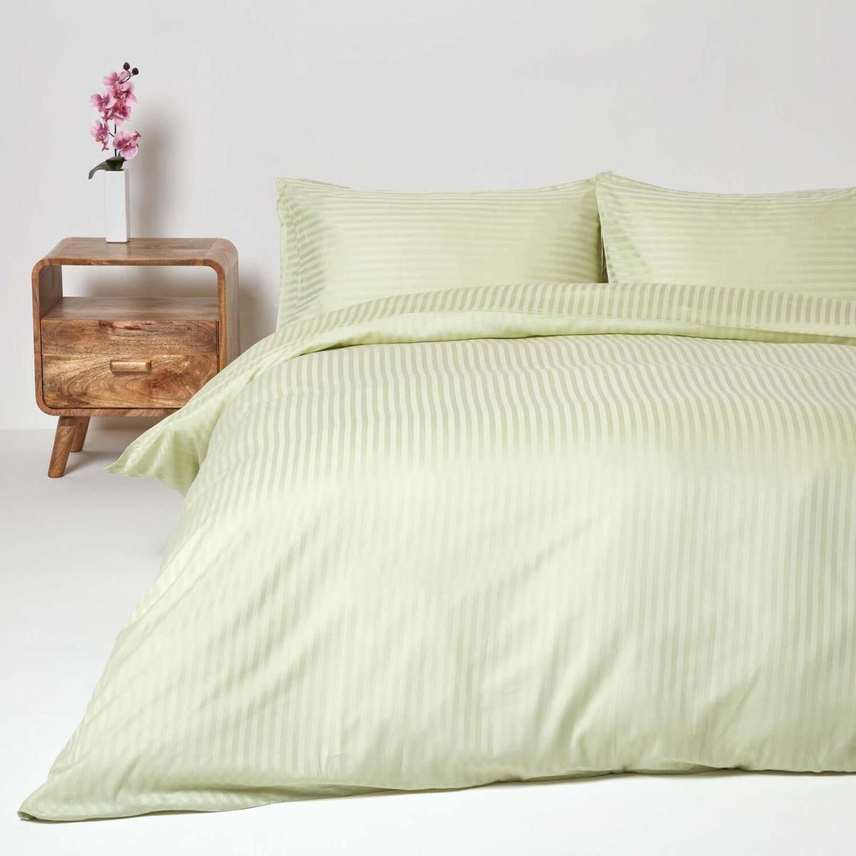 This Homescapes bedding has been manufactured with long staple cotton fibre spun after finely combing the superior Egyptian cotton fibres in one of the most advanced spinning mills in the world. The fabric is then carefully woven and inspected to make it suitable for the exacting standards of luxury hotels worldwide. This is a true 330 thread count fabric as the yarns and single count are not twisted. This matters to you as a consumer as you are getting a heavier quality of fabric, which will last for a long long time and will improve with each wash. It's anti-dust mite due to a high-density weave and is also washable at 40 degrees, in your domestic washing machine, killing most allergens and mites. This bedding range has been manufactured in an environment, where quality is paramount. Pillowcases have deep overlaps, making it very easy for you to change and the covers will not come off whilst being used. This is exactly the same as you would see in a 5-star hotel bedding.